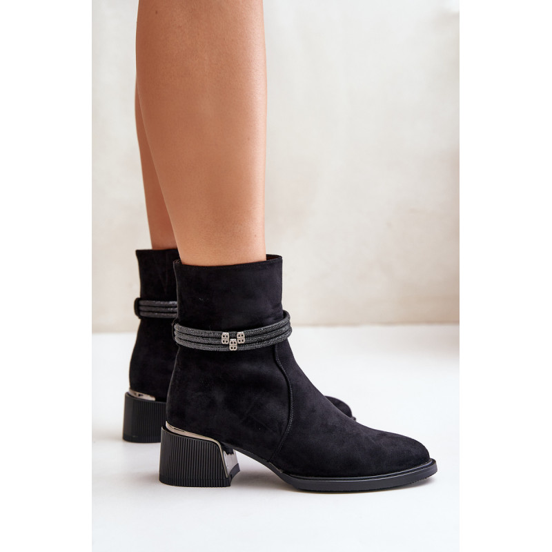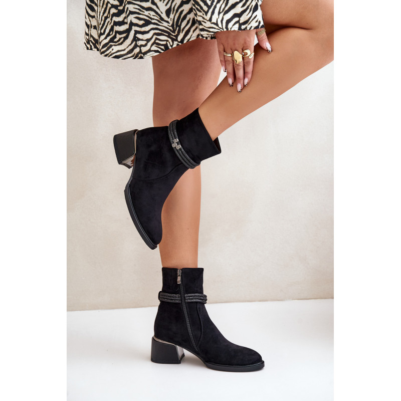 Moteriški batai iš aukštos kokybės ekologiškos zomšos. Nustatykite ant žemo kulno. Migdolo formos pirštai. Izoliuota batų vilna. Užsegimas užtrauktuku. Pagrindinis šio modelio privalumas – blizgantys dirželiai ant veleno. Rinkdamiesi dydį, žiūrėkite dydžių lentelę.