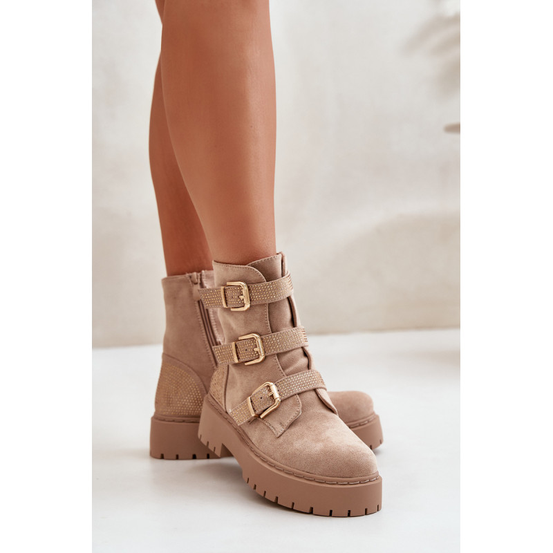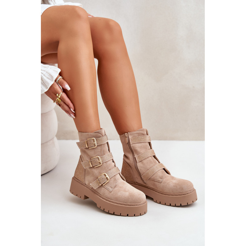 Stilingi moteriški kulkšnies batai yra esminis rudens-žiemos garderobo elementas. Šis modelis išsiskiria dirželiais su auksinėmis sagtimis ir papuošimais. Jie užsisega užtrauktuku, todėl patogu užsidėti ir nusiimti. Vidus apšiltintas batų vilna. Jie puikiai tiks prie įvairių aprangų! Rinkdamiesi dydį, žiūrėkite dydžių lentelę.