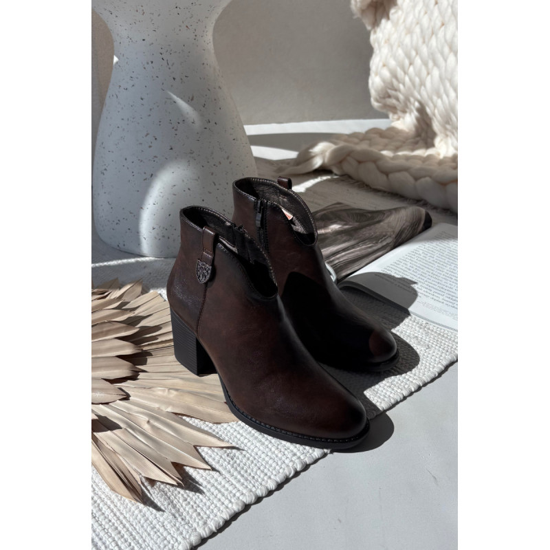 Moteriški auliniai batai iš Jezzi prekės ženklo. Pagaminti iš ekologiškos odos. Viduje yra įdėtas avalynės apsaugas užvalkalas, kuris užtikrina komfortą ir šilumą, o žemas modelis su užtrauktuku užtikrina patogų įsidedimą ir kasdienį dėvėjimą. Subtilus akcentas yra trumpa juosta su dekoratyviniu detalės, įrengta viršuje, kuri suteikia visumai elegancijos ir šiuolaikiškumo. Puikiai tinka tiek prie kelnių, tiek prie suknelių. Renkantis dydį, prašome vadovautis dydžių lentele. Renkantis dydį, vadovaukitės dydžių lentele.