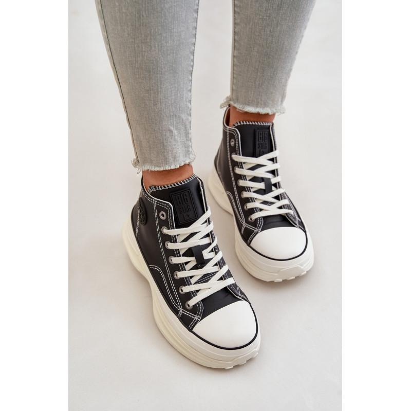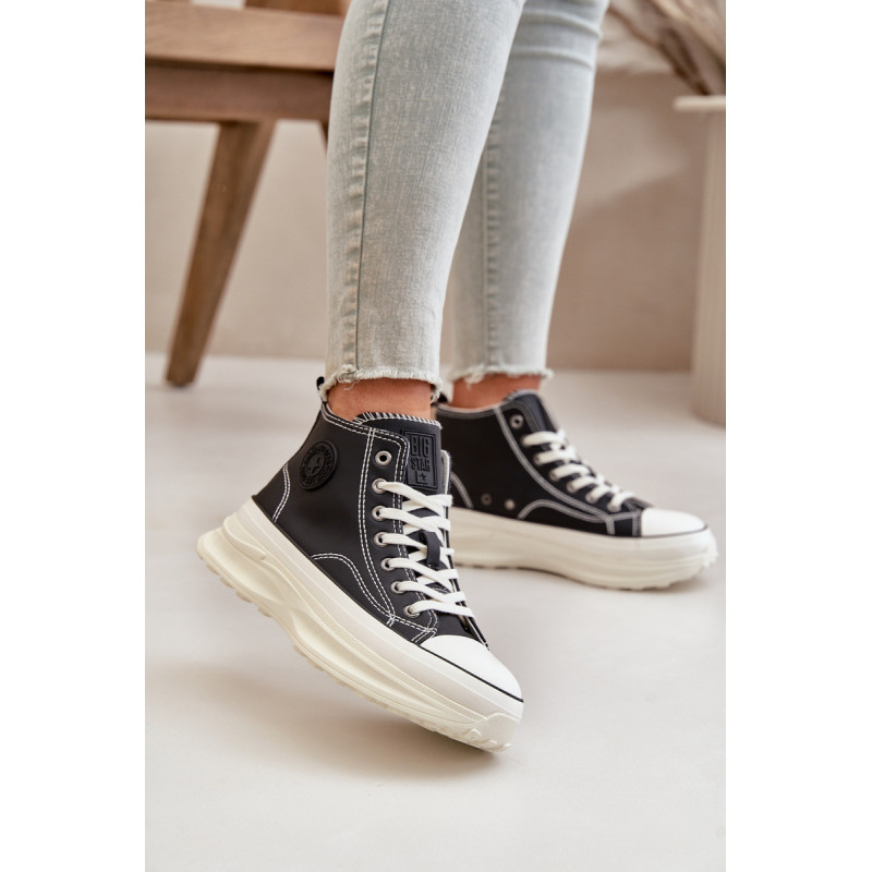Big Star prekės ženklo moteriški sportbačiai. Pagaminta iš aukštos kokybės PU medžiagos, kuri primena natūralią odą. Įrengtas ant masyvios platformos, kuri ne tik keliais centimetrais padidina aukštį, bet ir suteikia išskirtinį komfortą nešiojant visą dieną. Klasikiniai raišteliai ir suapvalintas pirštas suteikia nesenstančią išvaizdą. Prekės ženklo logotipas viršutinės dalies šone. Rinkdamiesi dydį žiūrėkite dydžių lentelę.