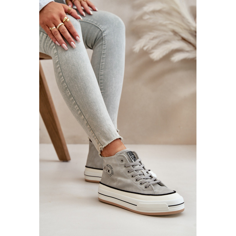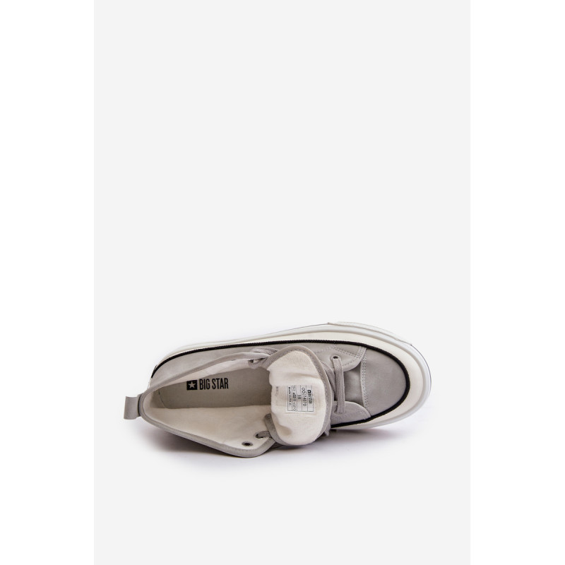 Big Star prekės ženklo moteriški sportbačiai. Pagaminti iš aukštos kokybės medžiagų, užtikrina komfortą ir lengvą dėvėjimą visą dieną. Jų spalva leidžia lengvai priderinti prie įvairių stilių, tinka tiek kasdienai, tiek iškilmingesnėms progoms. Sportbačiai turi patogų vidpadį, kuris suteikia papildomo komforto einant. Tvirtas guminis padas garantuoja gerą sukibimą su įvairiais paviršiais. Modelis yra izoliuotas minkštu batų pamušalu. Puikiai tinka rudens-žiemos sezonui! Rinkdamiesi dydį žiūrėkite dydžių lentelę.