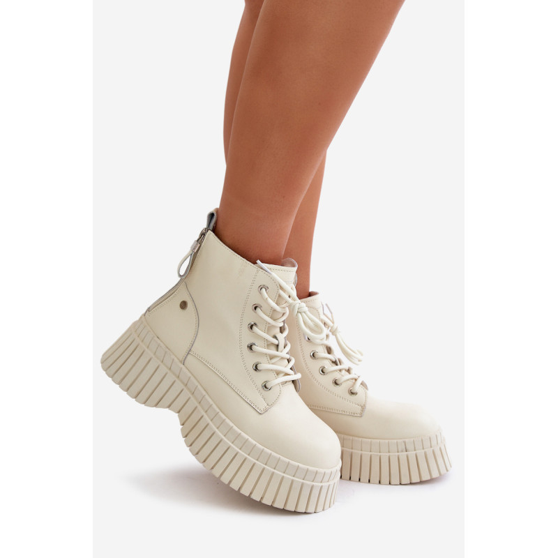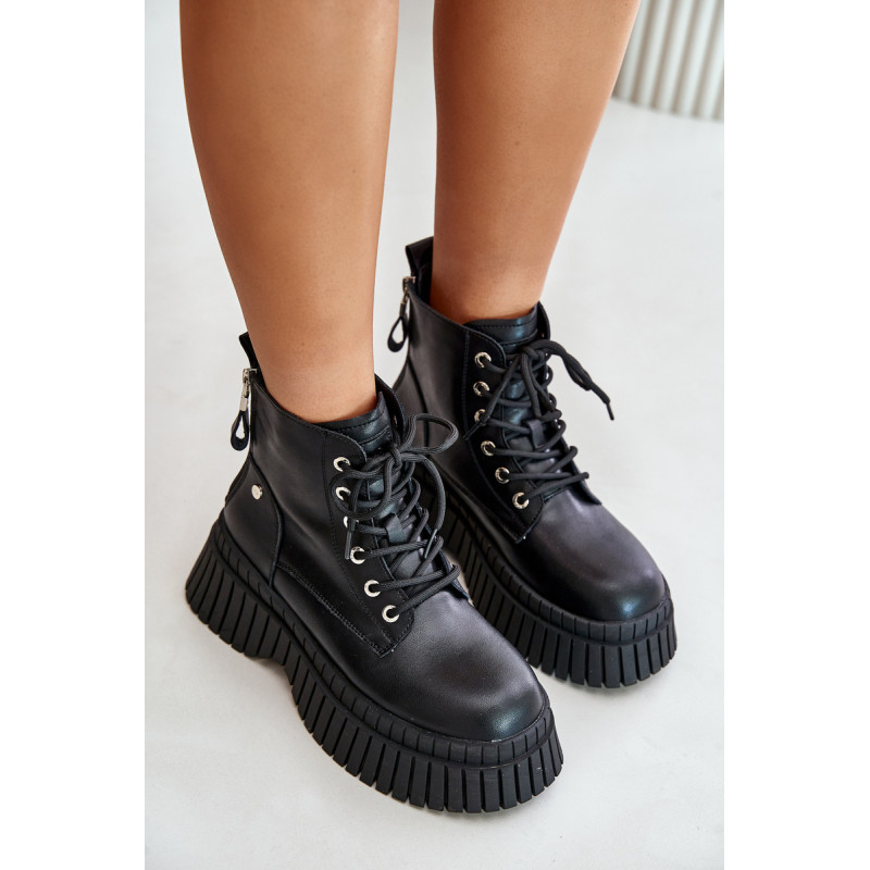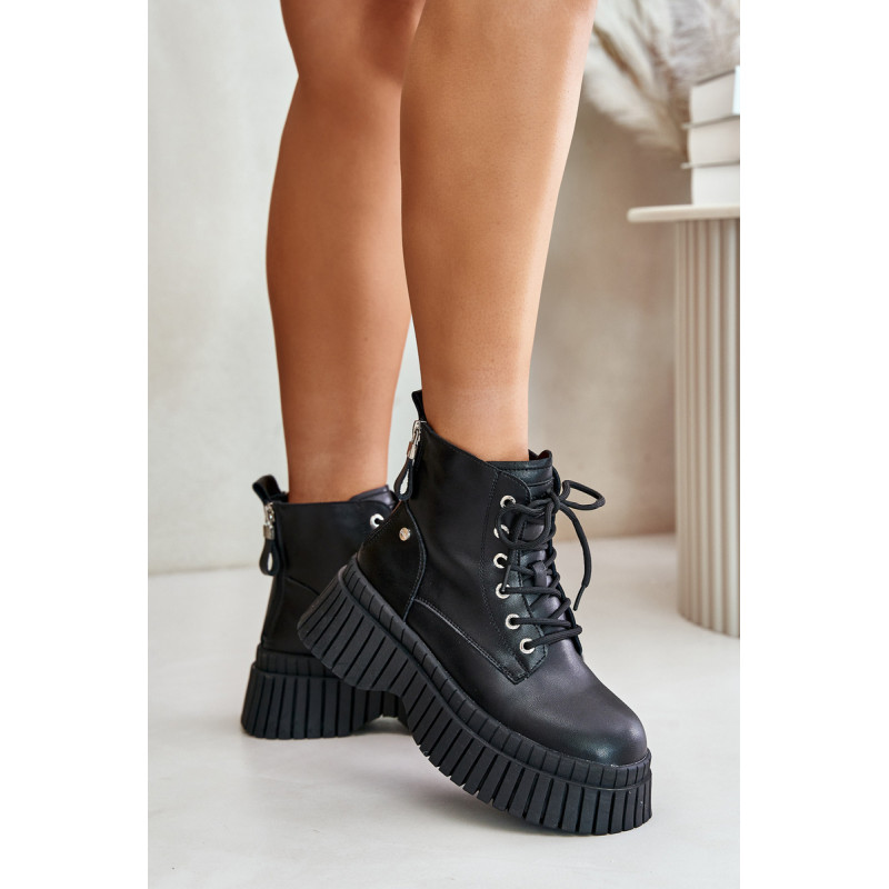 Moteriškuose prekės ženklo „Goe“ batuose dera stilius ir funkcionalumas. Pagaminti iš aukštos kokybės natūralios odos, garantuoja ilgaamžiškumą ir patogumą naudoti. Ant stambaus pado jie puikiai sukimba su įvairiais paviršiais, todėl yra idealus pasirinkimas vėsesnėmis dienomis. Batų vidus apšiltintas batų vilna, todėl kojos šildo. Batai užsegami užtrauktuku, o papildomi raišteliai leidžia puikiai priglusti, padidina dėvėjimo patogumą ir suteikia jiems madingą, kasdienišką išvaizdą. Puikiai tinka kasdieniams pasivaikščiojimams ar savaitgalio išvykoms. Rinkdamiesi dydį, žiūrėkite dydžių lentelę.