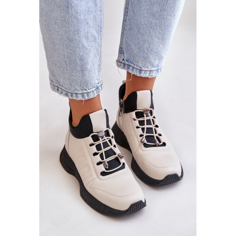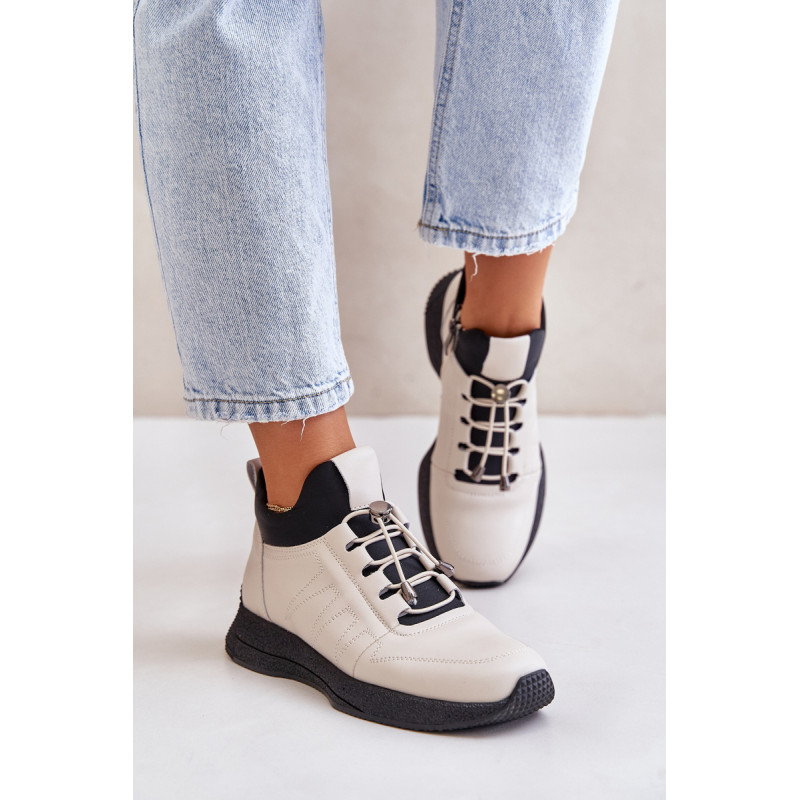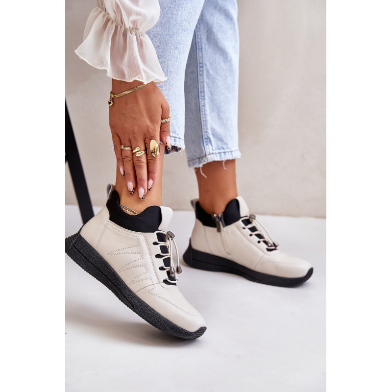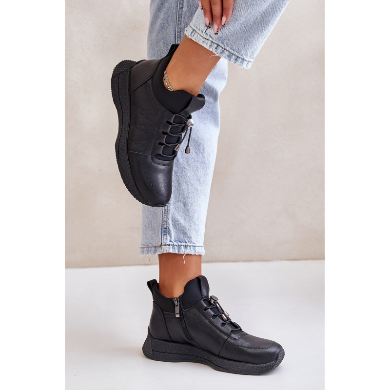 Sportiniai batai iš natūralios odos. Pastatykite ant guminio pado. Viduje izoliuoti batų vilna, todėl jie yra idealus pasirinkimas vėsesnėms dienoms. Užsegamas užtrauktuku ir papildomai turi raištelius. Pirštai suapvalinti. Jūs tikrai turėtumėte juos turėti! Rinkdamiesi dydį žiūrėkite dydžių lentelę.
