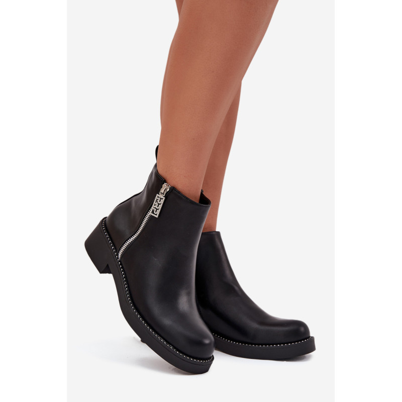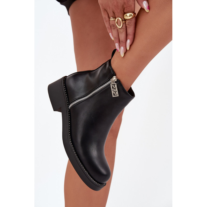 Moteriški eko odiniai batai yra elegantiška ir patogi pasirinkimo galimybė vėsesnėms dienoms. Užsegama užtrauktuku. Šiltas vidus užtikrina šilumą, o apvalūs pirštai ir švelnus kulnas suteikia jiems moterišką charakterį, užtikrinant patogumą ir stilių kasdieniam nešiojimui. Dekoracija su cirkoniais ant pado. Sidabrinis užtrauktukas yra dekoratyvus, neatsidaro. Puikiai tinka kasdieniam stiliui. Pasirinkdami dydį, prašome atsižvelgti į dydžių lentelę. Renkantis dydį, vadovaukitės dydžių lentele.