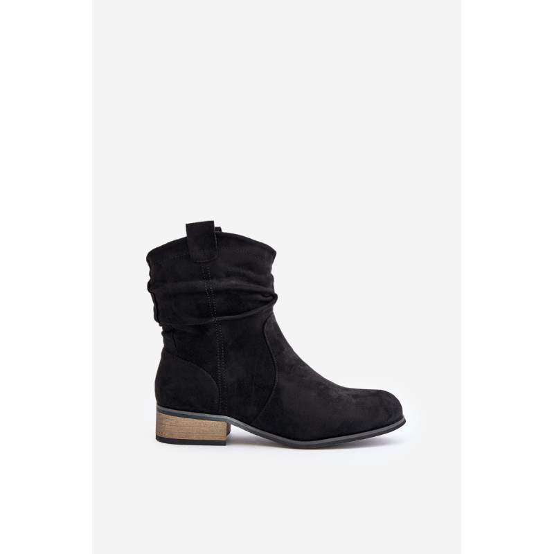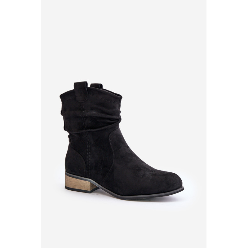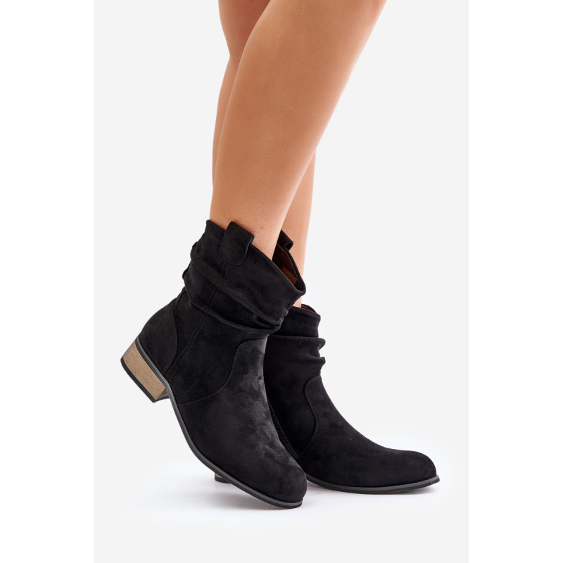 Ženske škornje, narejene iz ekološkega semiša. Postavljene so na nizkem blok peti. Imajo zaobljene prste. Zapirajo se z zadrgo. Notranjost je izolirana z obutevnim flisom. To je klasičen model, ki ga je enostavno uskladiti z različnimi jesenskimi slogi. Pri izbiri velikosti si oglejte tabelo velikosti.