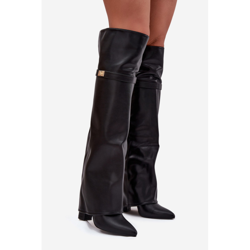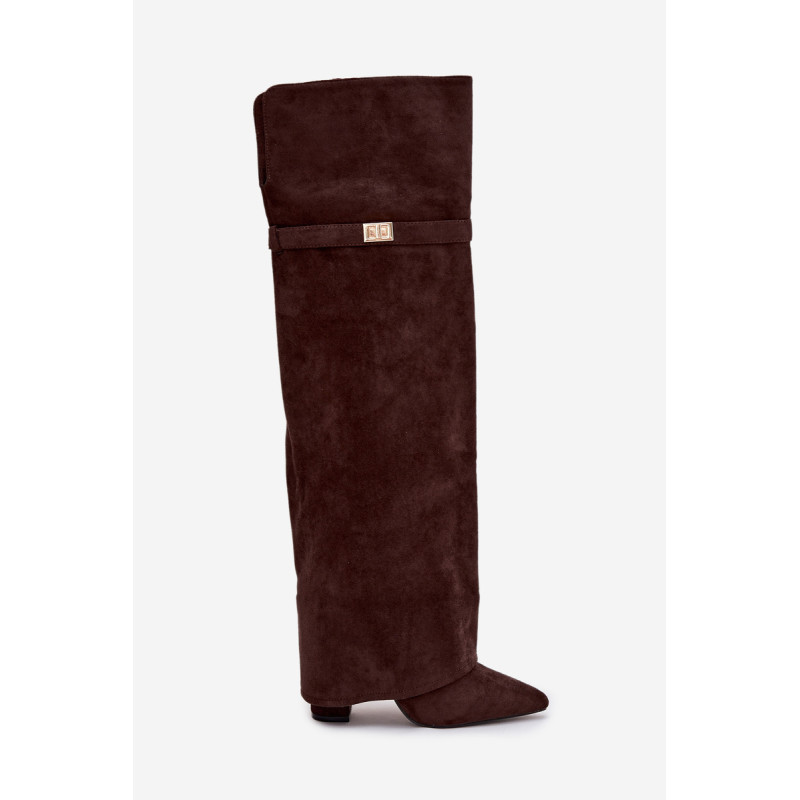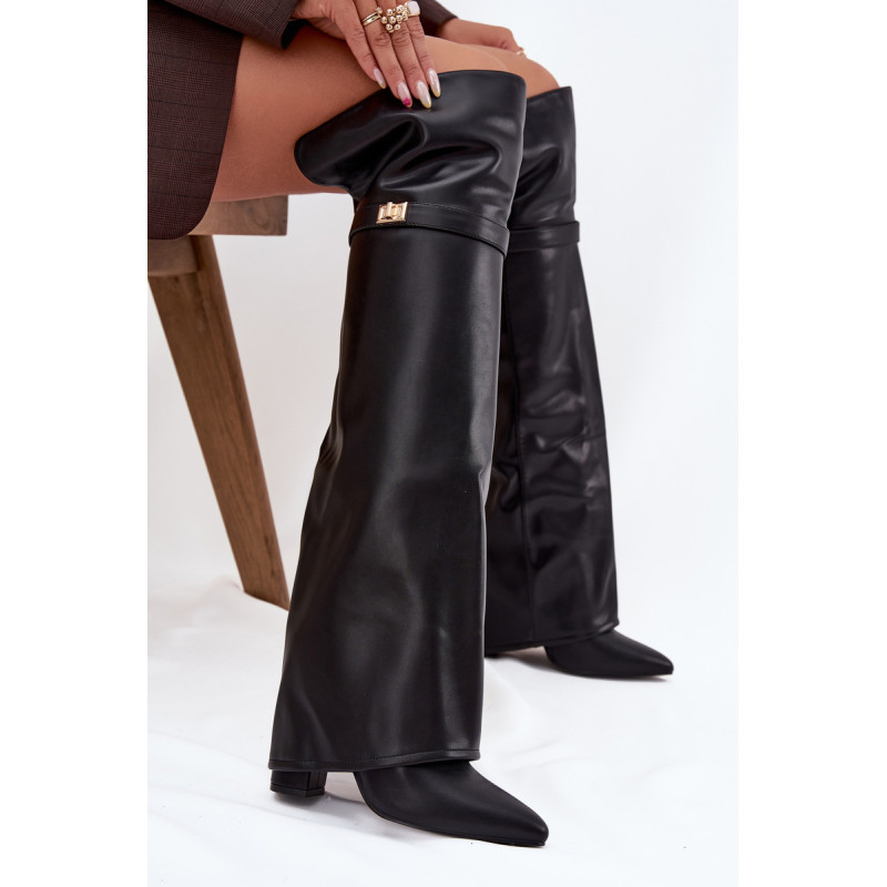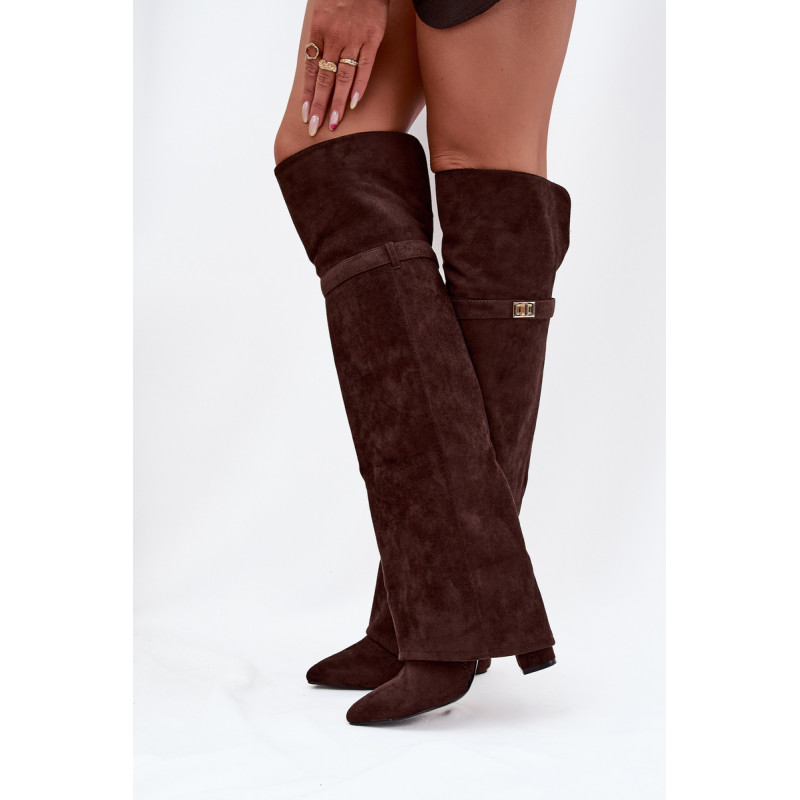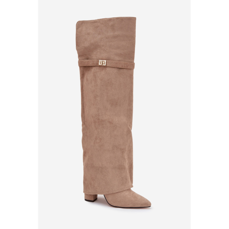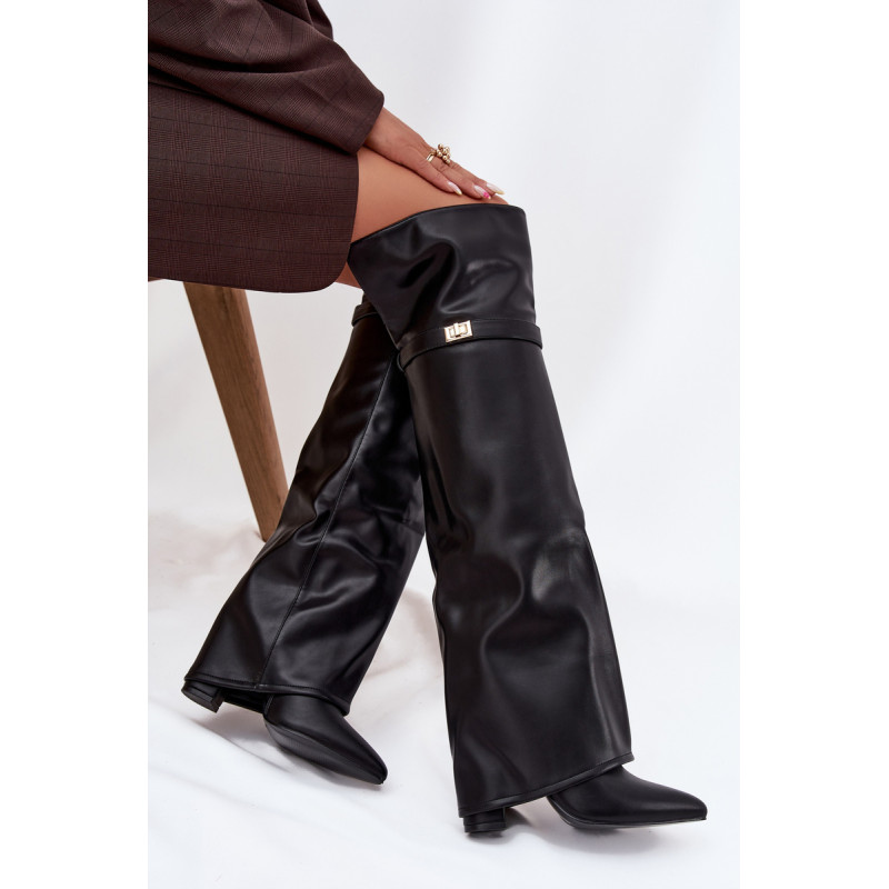 Moteriški auliniai batai su apverčiu yra tikras hitas artėjančiame rudenį-žiemos sezonui! Aukštis siekia virš kelio ir peržengia kulną, suteikdami jiems unikalų charakterį. Sumontuoti ant stabilaus kubo kulno, jie suteikia komforto ir elegancijos, o apmušalas garantuoja šilumą šaltesnėmis dienomis. Lengvai užsisega ir su smailiais pirštais, jie sujungia patogumą su madingu moterišku stiliumi – puikiai tinka išraiškingoms žieminėms išvaizdoms. Renkantis dydį, prašome vadovautis dydžių lentele. Renkantis dydį, vadovaukitės dydžių lentele.