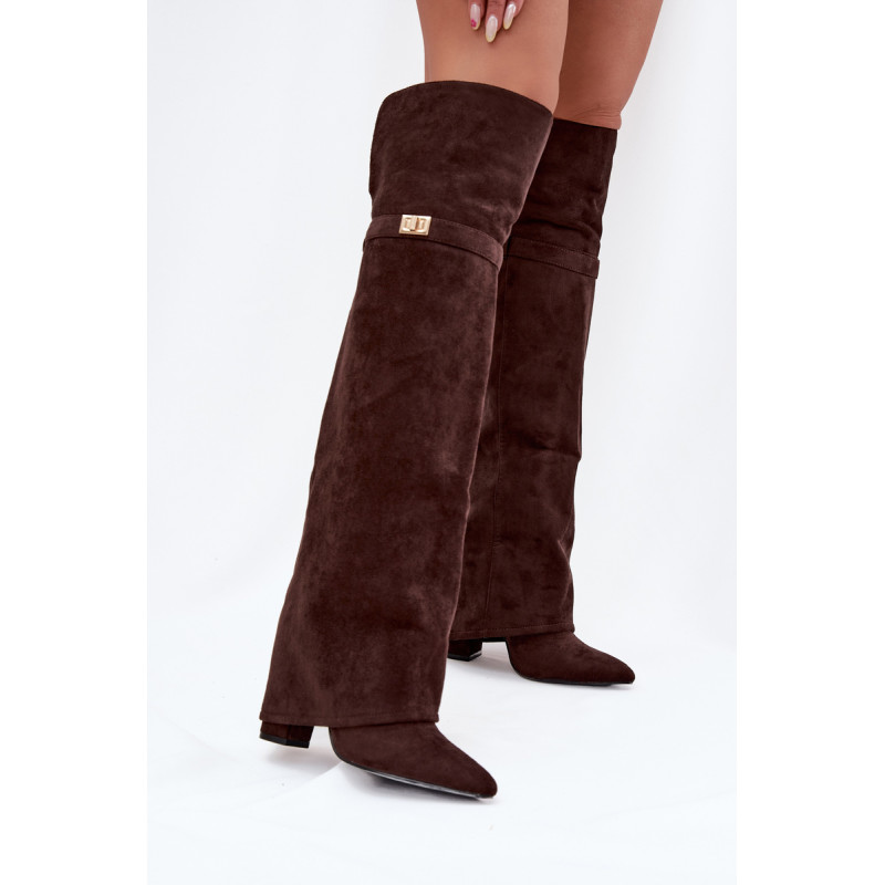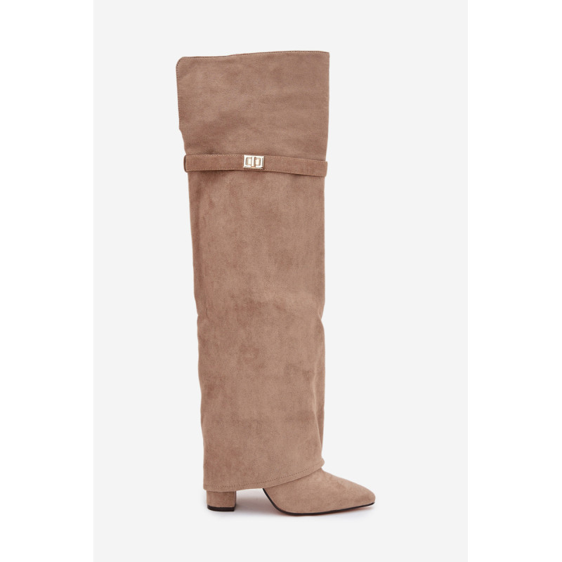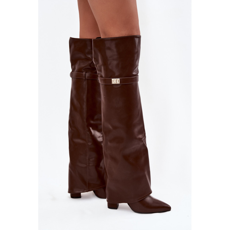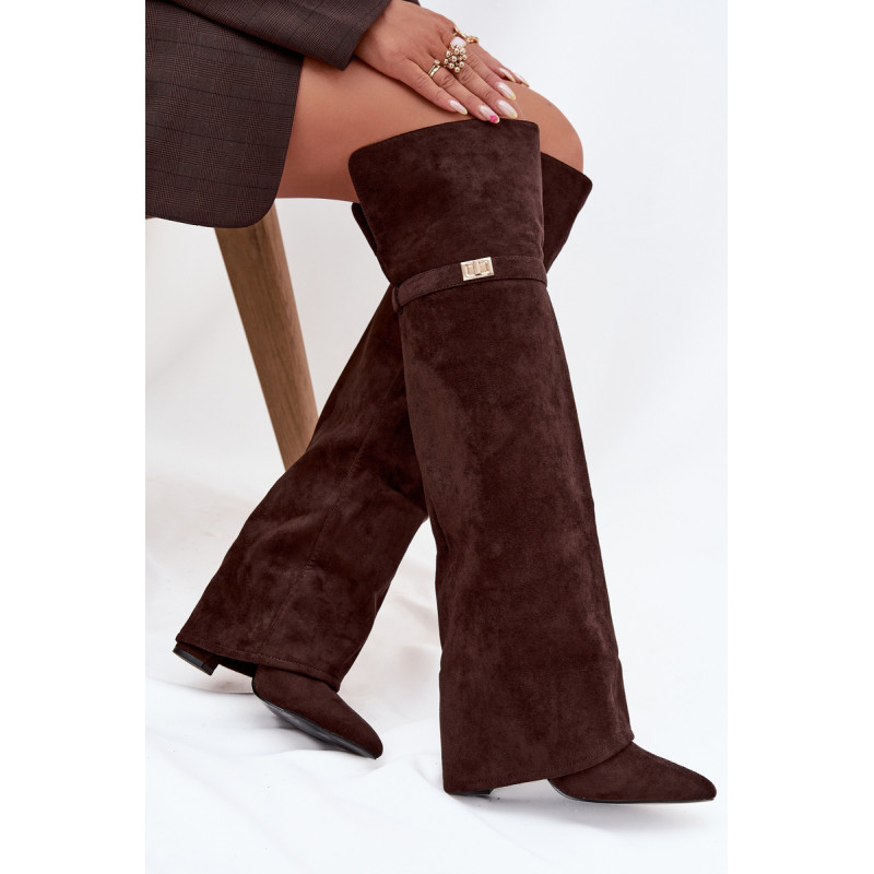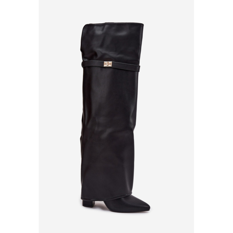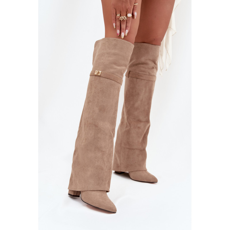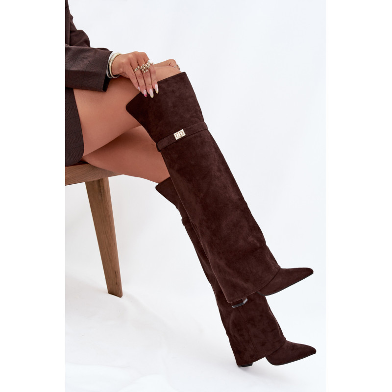 Moteriški auliniai batai su apverčiu yra tikras hitas artėjančiame rudenį-žiemos sezonui! Aukštis siekia virš kelio ir peržengia kulną, suteikdami jiems unikalų charakterį. Sumontuoti ant stabilaus kubo kulno, jie suteikia komforto ir elegancijos, o apmušalas garantuoja šilumą šaltesnėmis dienomis. Lengvai užsisega ir su smailiais pirštais, jie sujungia patogumą su madingu moterišku stiliumi – puikiai tinka išraiškingoms žieminėms išvaizdoms. Renkantis dydį, prašome vadovautis dydžių lentele. Renkantis dydį, vadovaukitės dydžių lentele.