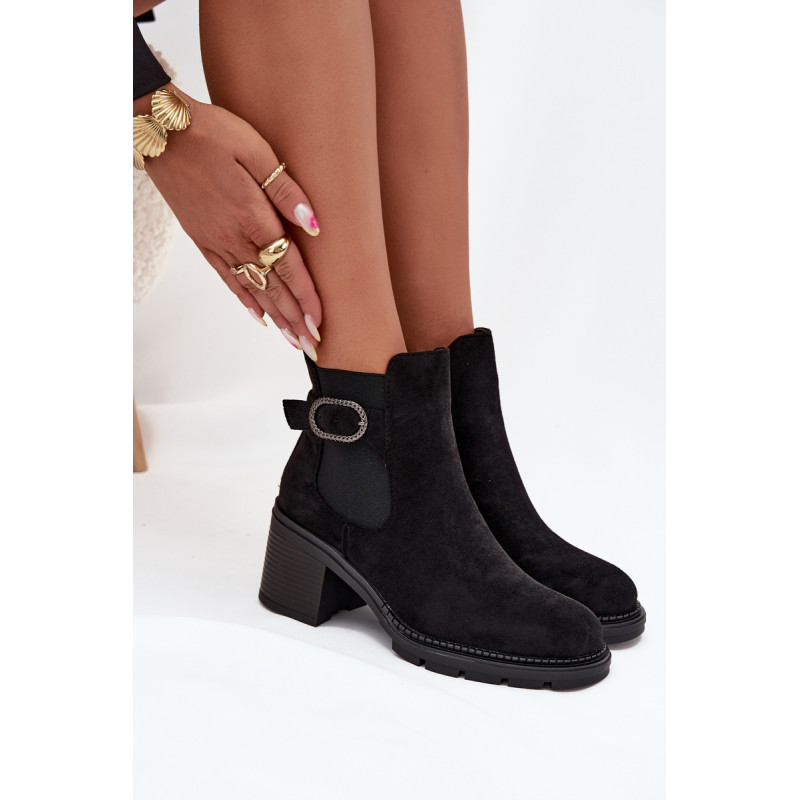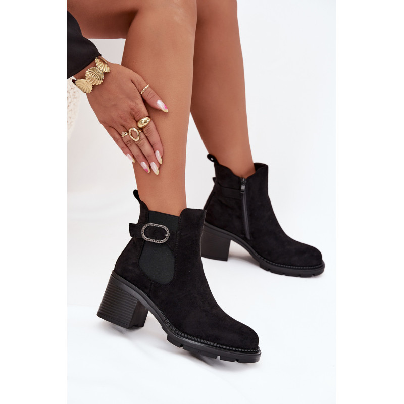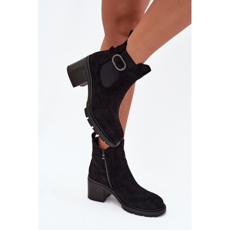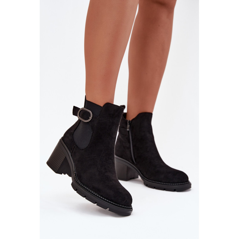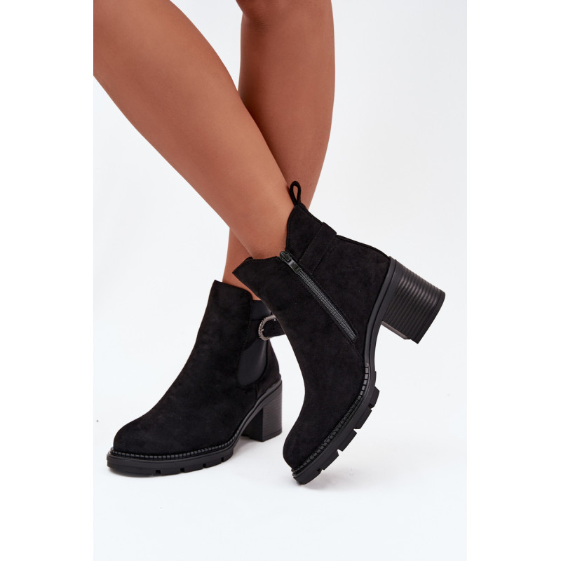 Moteriški auliniai batai iš ekosuede yra elegantiškas pasiūlymas vėsesnėms dienoms. Ant bloko kulno, jie užtikrina komfortą ir stabilumą. Dekoratyvinė sagtis prideda charakterio, o apvalūs pirštai užtikrina komfortą visą dieną. Vidus, šildomas avalynės vilna, garantuoja šilumą, o užtrauktukas palengvina užsidėjimą. Idealiai tinka tiek suknelėms, tiek sijonams ir kelniams. Pasirinkdami dydį, prašome vadovautis dydžių lentelę. Renkantis dydį, vadovaukitės dydžių lentele.