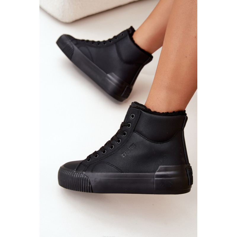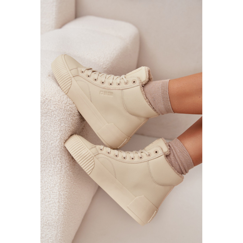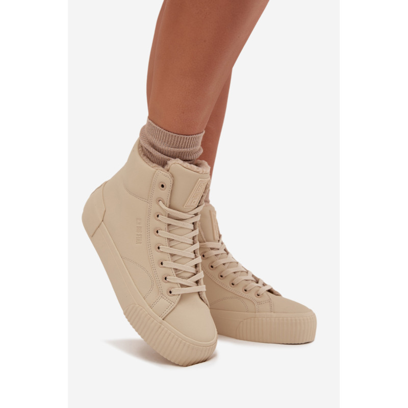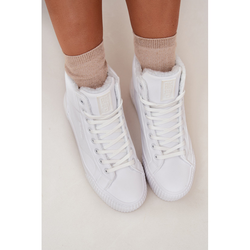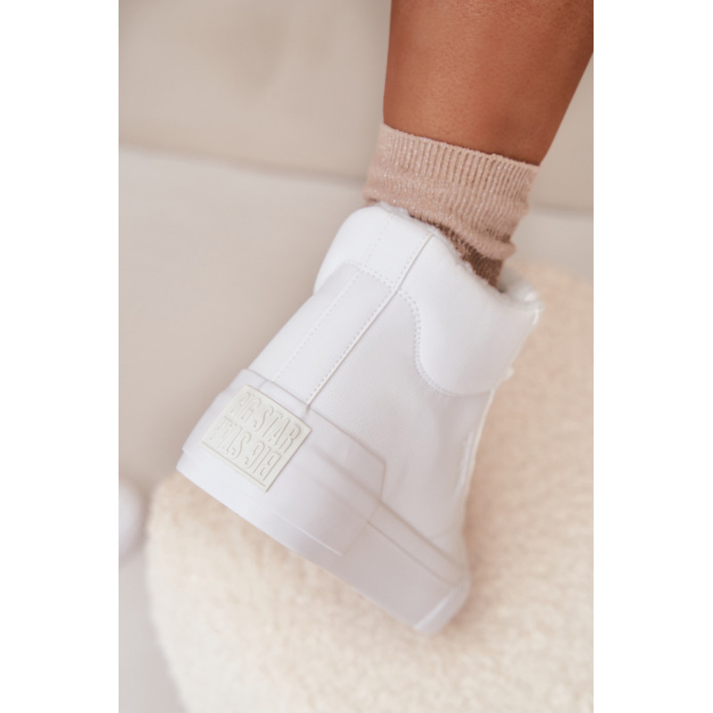 BIG STAR prekės ženklo moteriški sportbačiai, pastatyti ant platformos, pagamintos iš guminės medžiagos. Pagaminta iš eko odos. Užsegamas užtrauktuku ir papildomai turi raištelius. Vidus apšiltintas kailiu. Kojos pirštas sustingęs. Viršutinė dalis siekia kulkšnį. Būtinai peržiūrėkite visą mūsų BIG STAR batų kolekciją. Rinkdamiesi dydį, žr. dydžių lentelę.
