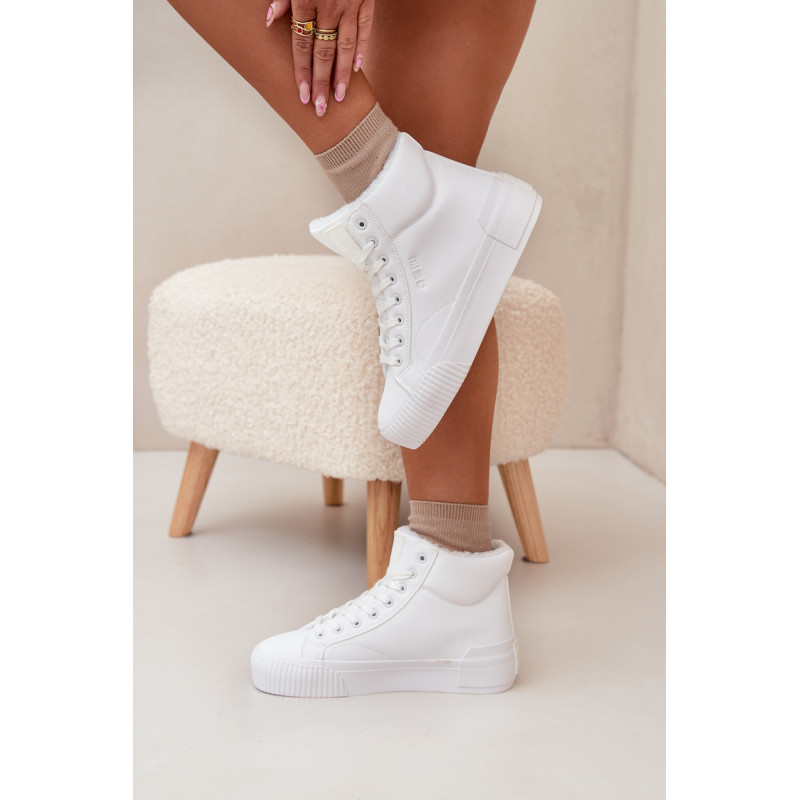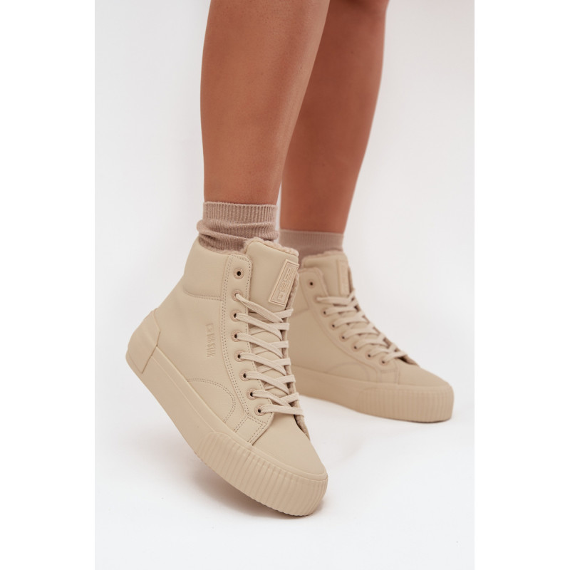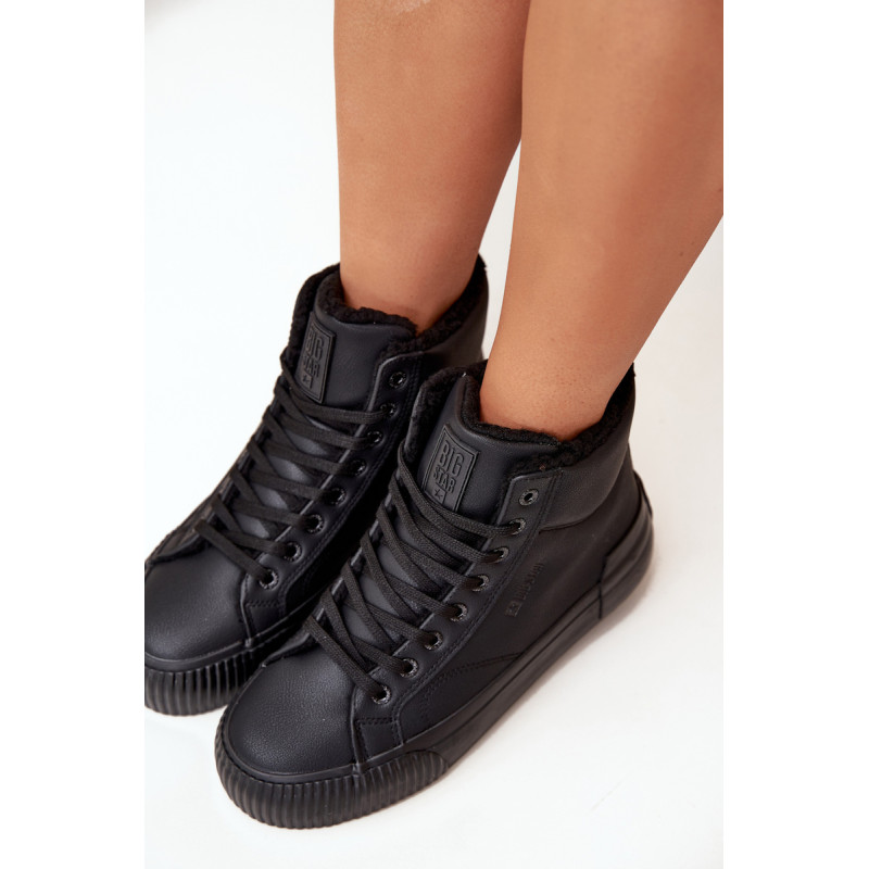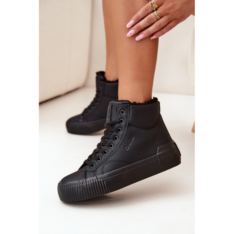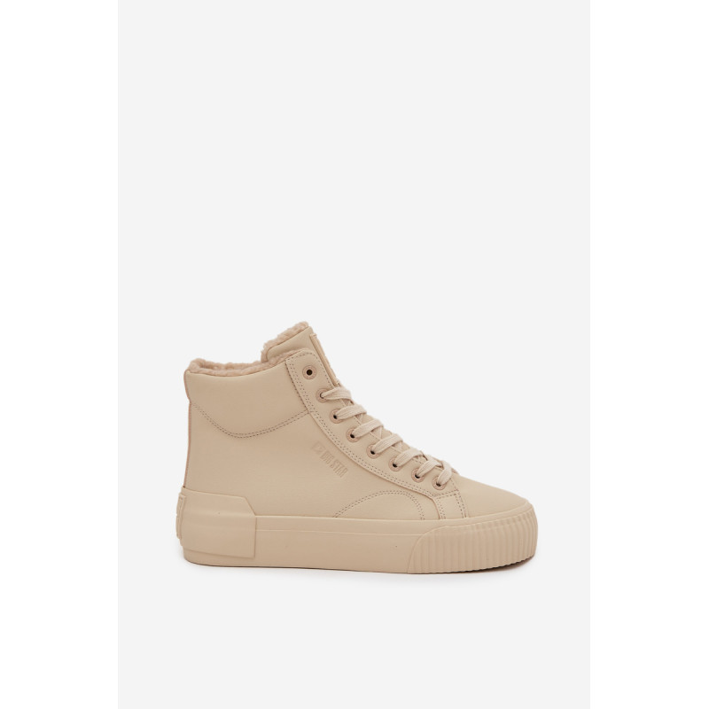 BIG STAR prekės ženklo moteriški sportbačiai, pastatyti ant platformos, pagamintos iš guminės medžiagos. Pagaminta iš eko odos. Užsegamas užtrauktuku ir papildomai turi raištelius. Vidus apšiltintas kailiu. Kojos pirštas sustingęs. Viršutinė dalis siekia kulkšnį. Būtinai peržiūrėkite visą mūsų BIG STAR batų kolekciją. Rinkdamiesi dydį, žr. dydžių lentelę.