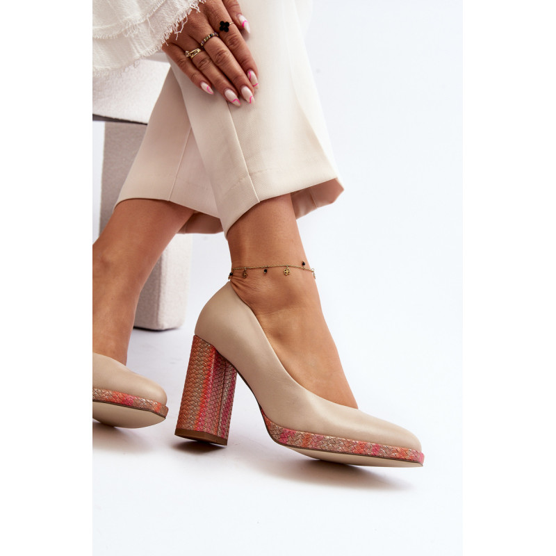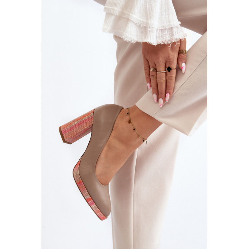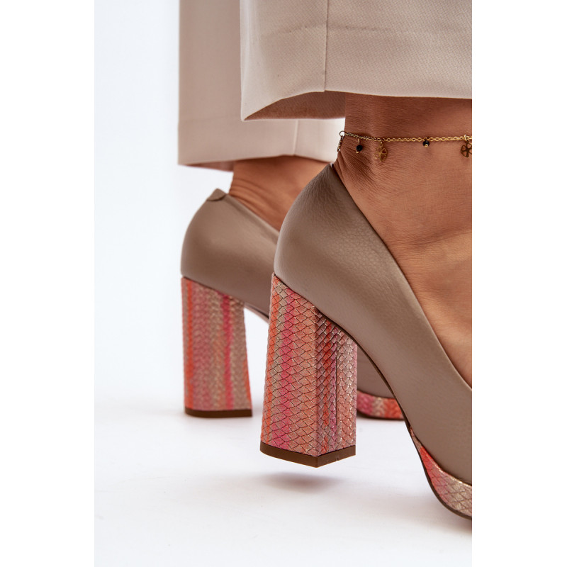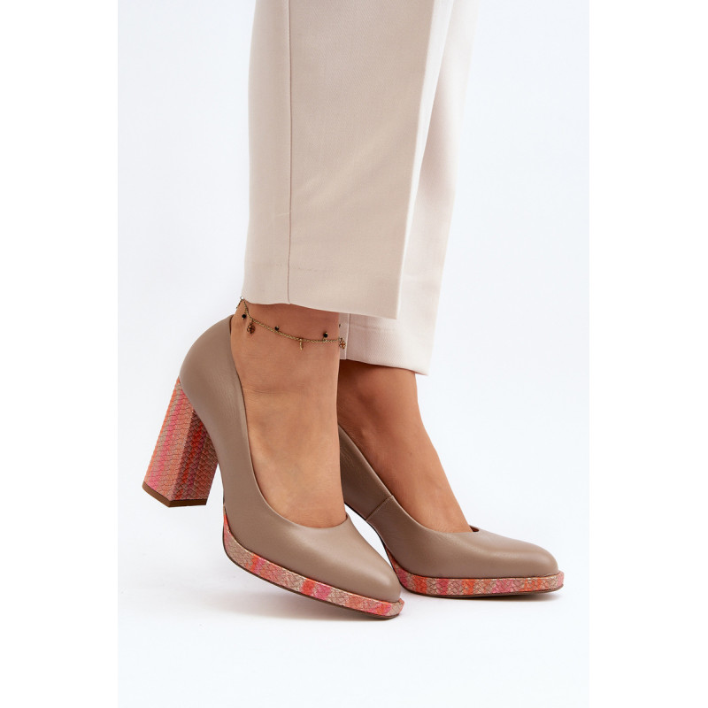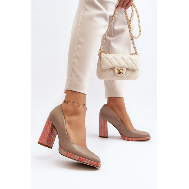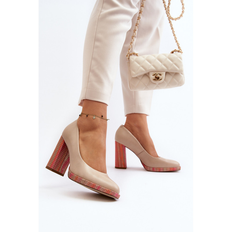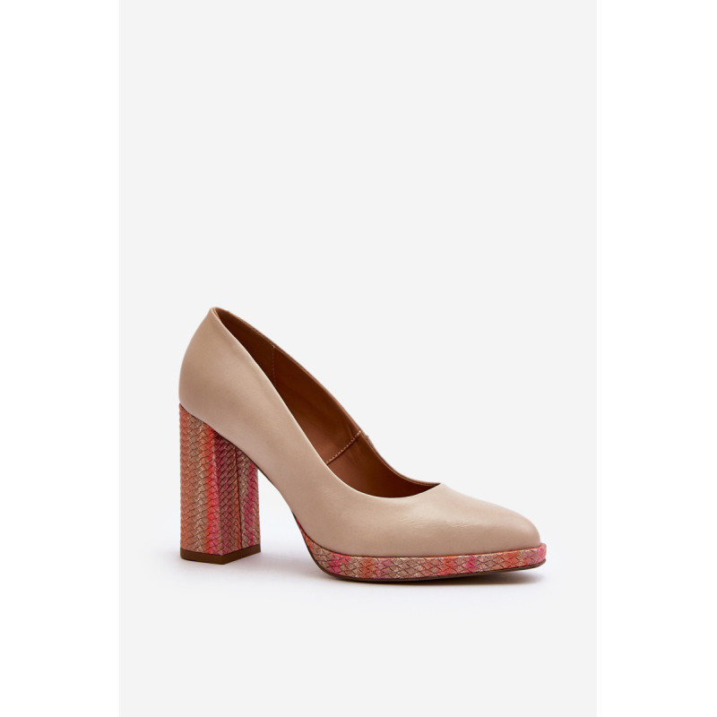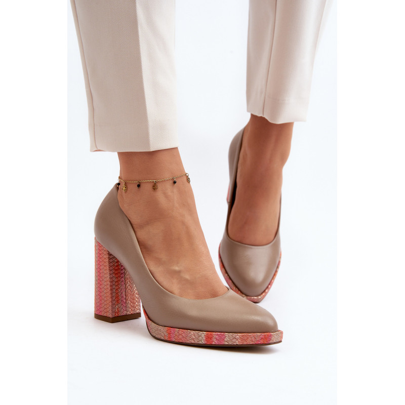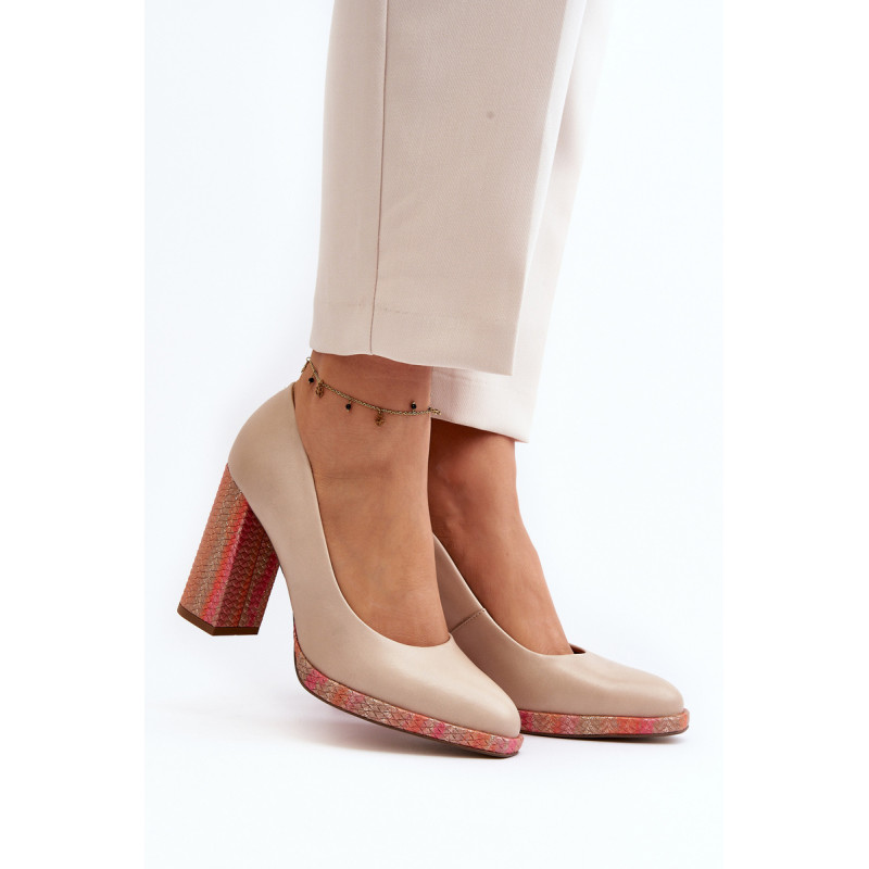 Stilingi siurbliai pagaminti iš aukštos kokybės natūralios odos. Nustatyti ant stulpelio formos kulno. Suapvalinti kojų pirštai. Minkštas vidpadis ir stabilus kulnas pasirūpins Jūsų patogumu. Siurbliai turi sustiprintą kulną. Rinkdamiesi dydį, žiūrėkite dydžių lentelę.