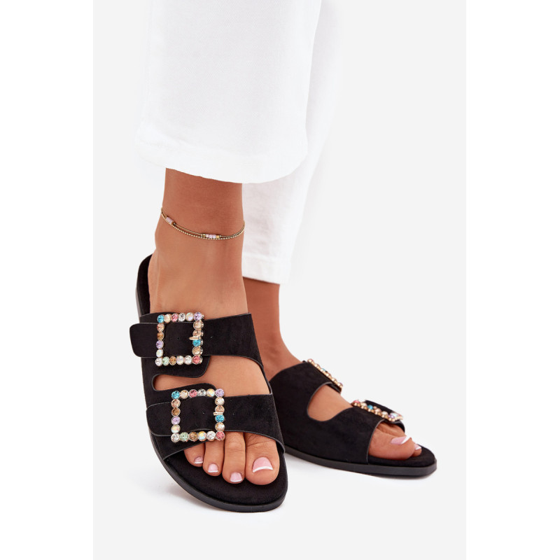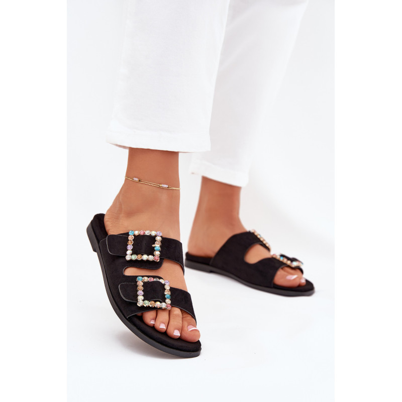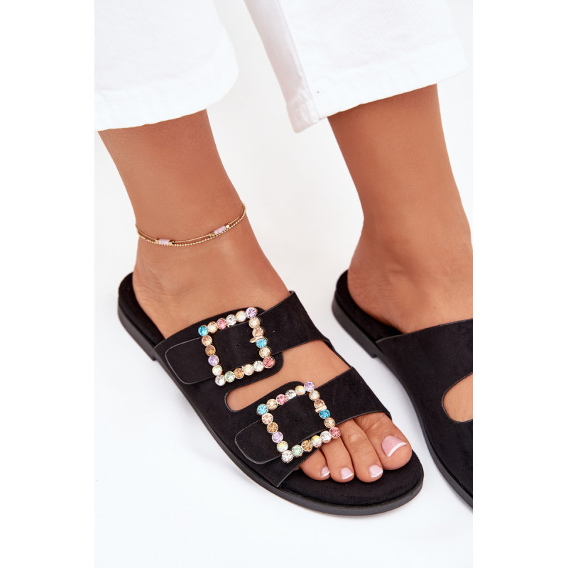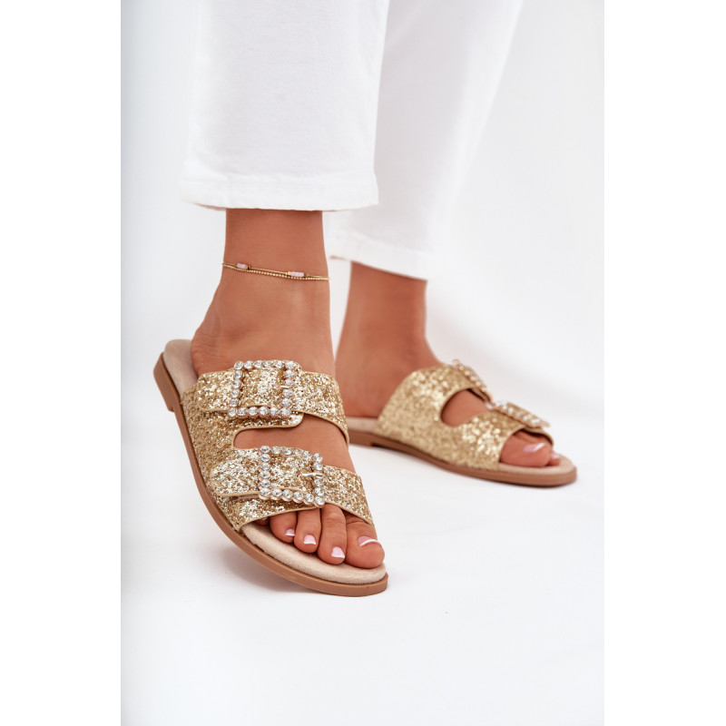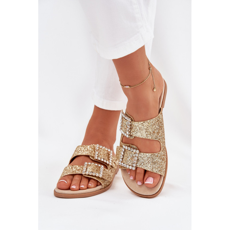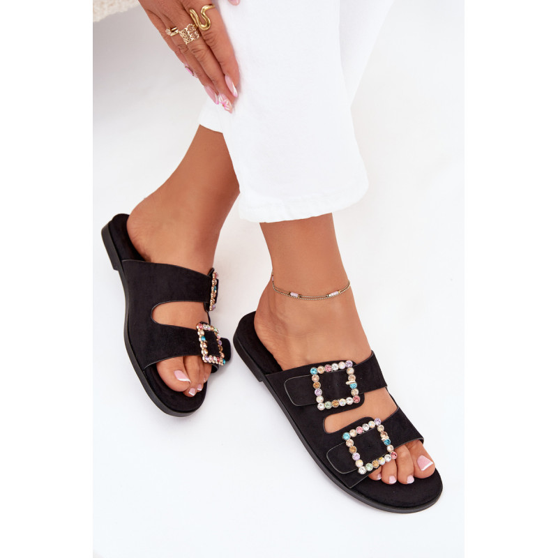 Moteriški šlepetės su plokščiu kulnu yra patogūs batai, idealiai tinkantys šiltomis dienomis. Šis modelis turi dvi dekoratyvines sagtis su reguliuojamomis juostelėmis, leidžiančiomis puikiai pritaikyti batą. Audinio padas užtikrina komfortą ir oro pralaidumą, todėl šlepetės yra ne tik stilingos, bet ir funkcionalios. Puikus pasirinkimas kasdieniams pasivaikščiojimams, jie sujungia komfortą su madingu įvaizdžiu. Pasirinkdami dydį, prašome vadovautis dydžių lentele. Renkantis dydį, vadovaukitės dydžių lentele.