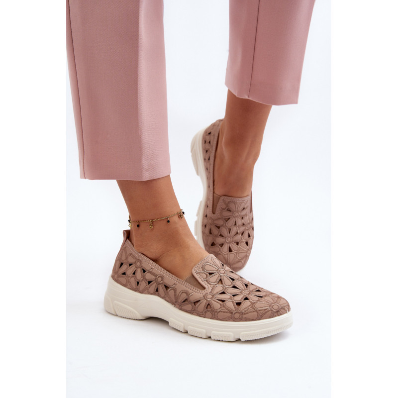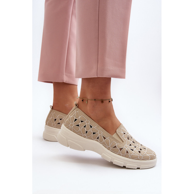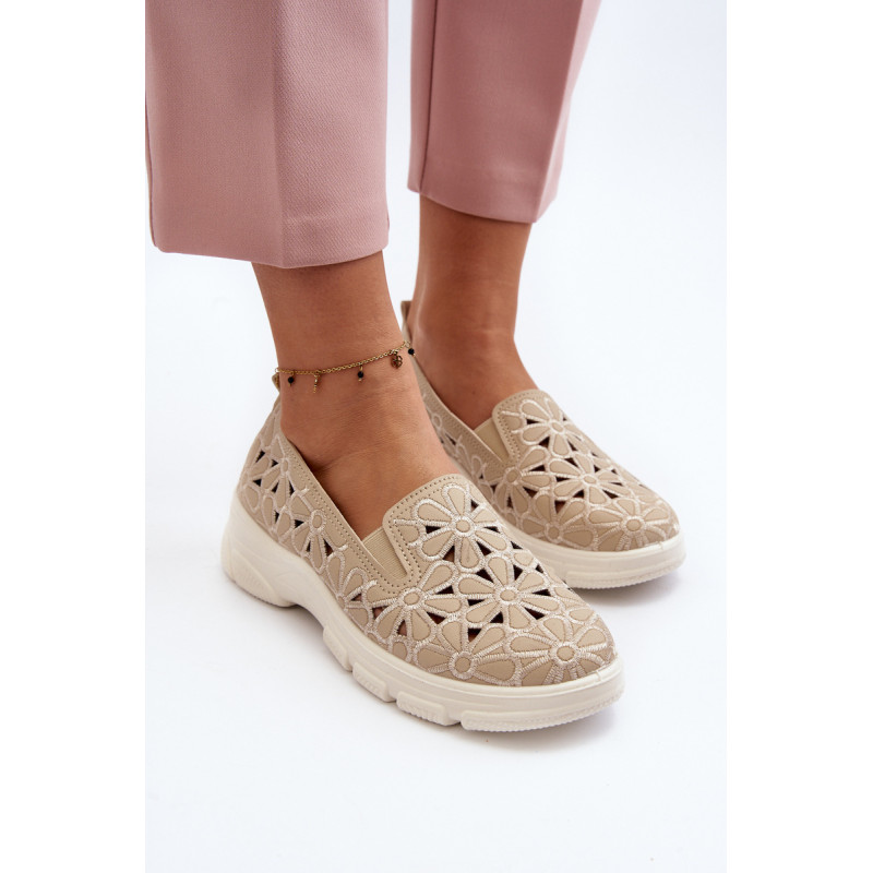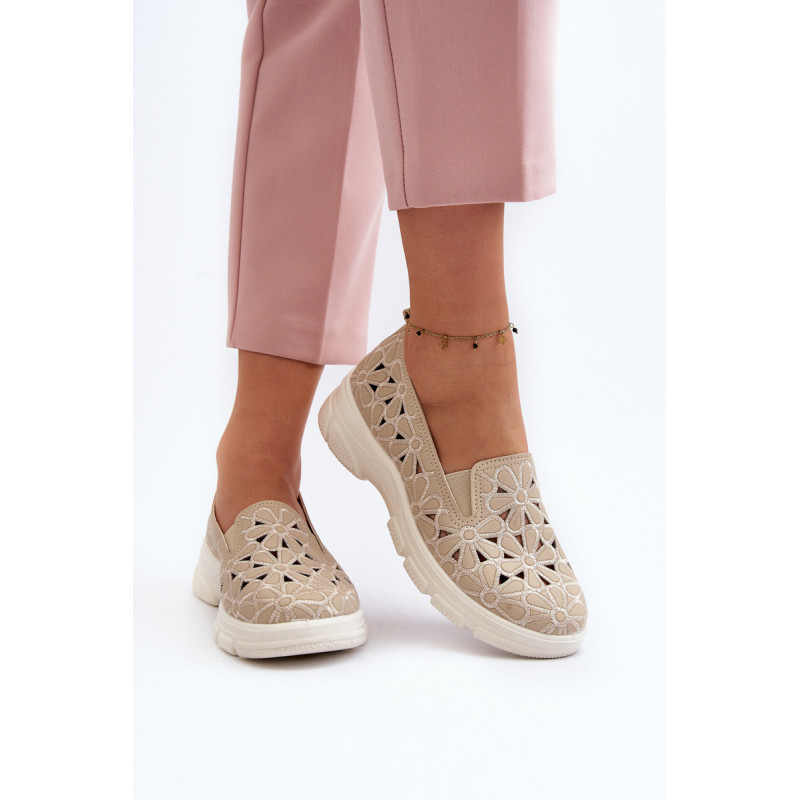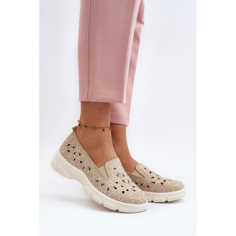Moteriški batai yra pagaminti iš ekologiškos odos. Nėriniuota viršutinė dalis su gėlėmis. Slip-on modelis. Nustatykite ant plokščio kulno. Suapvalinti kojų pirštai. Minkštas natūralios odos vidpadis suteiks komforto net ir visą dieną. Jie tikrai turėtų būti jūsų pavasario garderobe! Rinkdamiesi dydį, žiūrėkite dydžių lentelę.