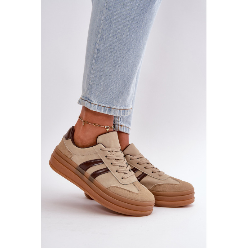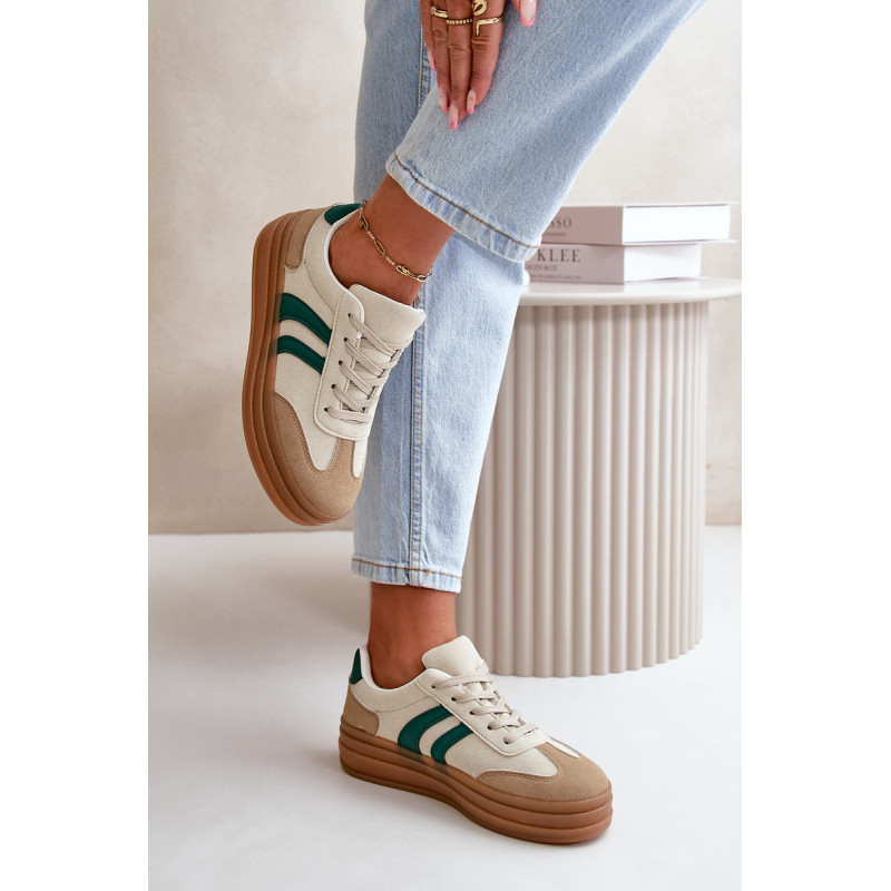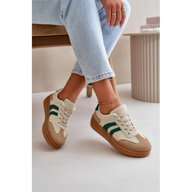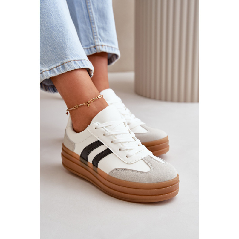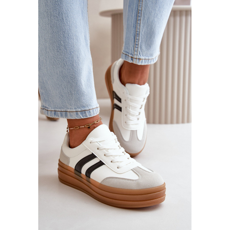 Madingi moteriški sportbačiai ant platformos, kuri ne tik padidina kelis centimetrus, bet ir suteikia stilingą išvaizdą. Minkštas putplasčio vidpadis suteikia komfortą vaikščiojant visą dieną. Puikiai tinka kasdieniam stiliui, jie puikiai tinka tiek prie džinsų, tiek prie suknelių, todėl kiekvienai aprangai suteikia stiliaus. Šiuos sportbačius būtina turėti kiekvienos moters, norinčios pabrėžti savo madingą stilių, garderobe. Rinkdamiesi dydį, žiūrėkite dydžių lentelę.