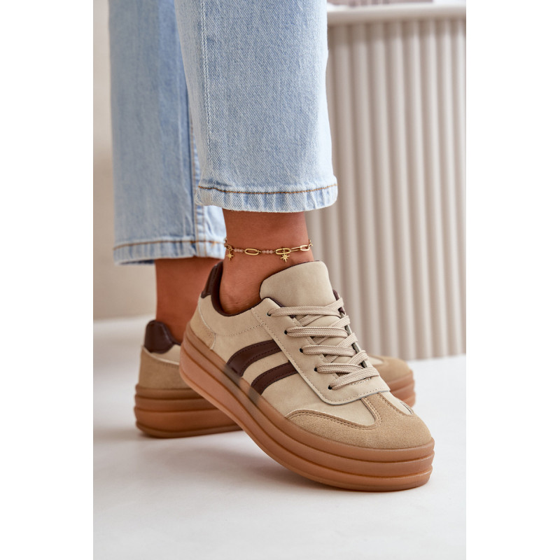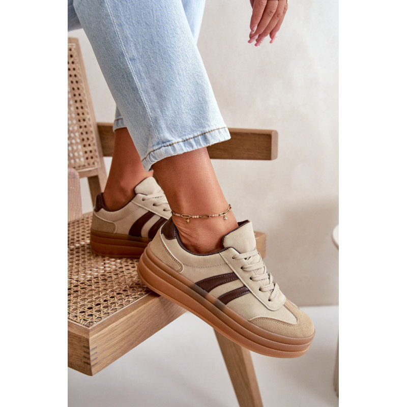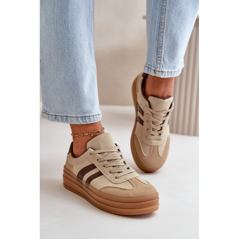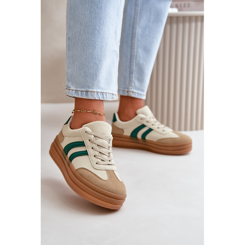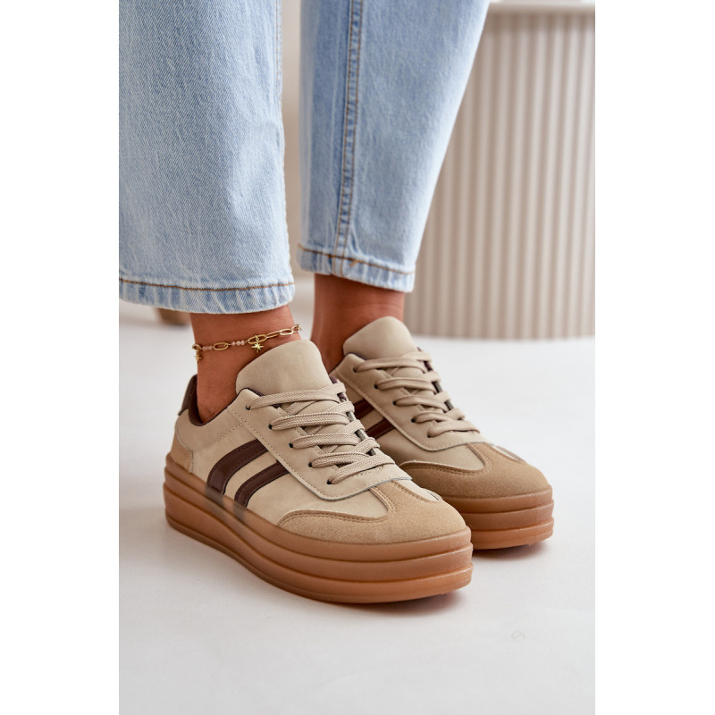 Madingi moteriški sportbačiai ant platformos, kuri ne tik padidina kelis centimetrus, bet ir suteikia stilingą išvaizdą. Minkštas putplasčio vidpadis suteikia komfortą vaikščiojant visą dieną. Puikiai tinka kasdieniam stiliui, jie puikiai tinka tiek prie džinsų, tiek prie suknelių, todėl kiekvienai aprangai suteikia stiliaus. Šiuos sportbačius būtina turėti kiekvienos moters, norinčios pabrėžti savo madingą stilių, garderobe. Rinkdamiesi dydį, žiūrėkite dydžių lentelę.