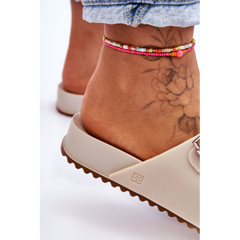Patogi avalynė, kuri suteiks kojoms visišką komfortą šiltomis vasaros dienomis. Funkciniai šlepetės plokščiu padu ir subtilia platforma. Šios stilingos šlepetės yra pagamintos iš lengvos, tačiau aukštos kokybės sintetinės medžiagos. Dirželiai yra reguliuojami, todėl galėsite tinkamai pritaikyti šlepetes pagal pėdos plotį. Šie batai yra veganiški ir hipoalergiški, be to, 100% perdirbami. Nė viename ZAXY prekės ženklo gaminyje nėra gyvūninės kilmės komponentų. Jie kvepia kaip burbuliukai. Rinkdamiesi dydį, žiūrėkite dydžių lentelę.