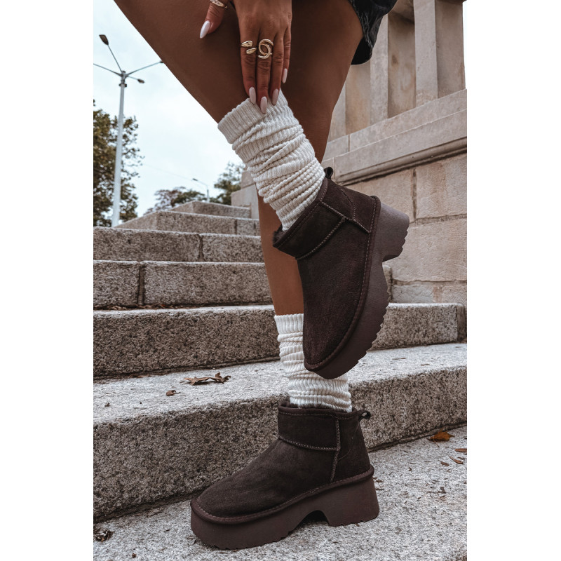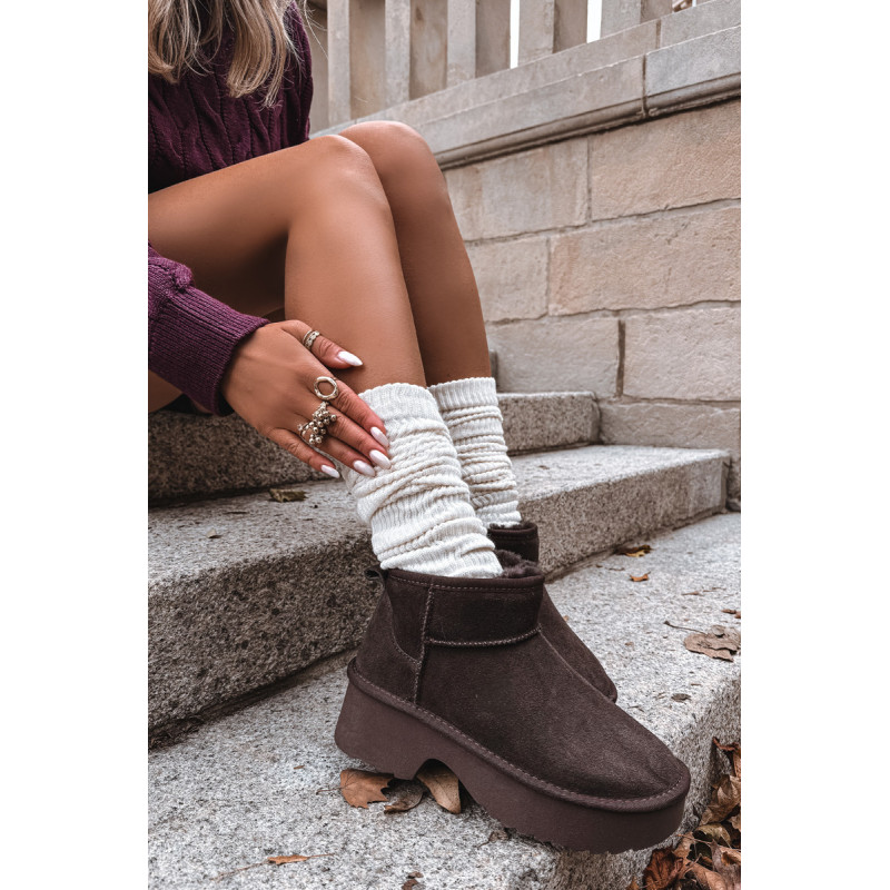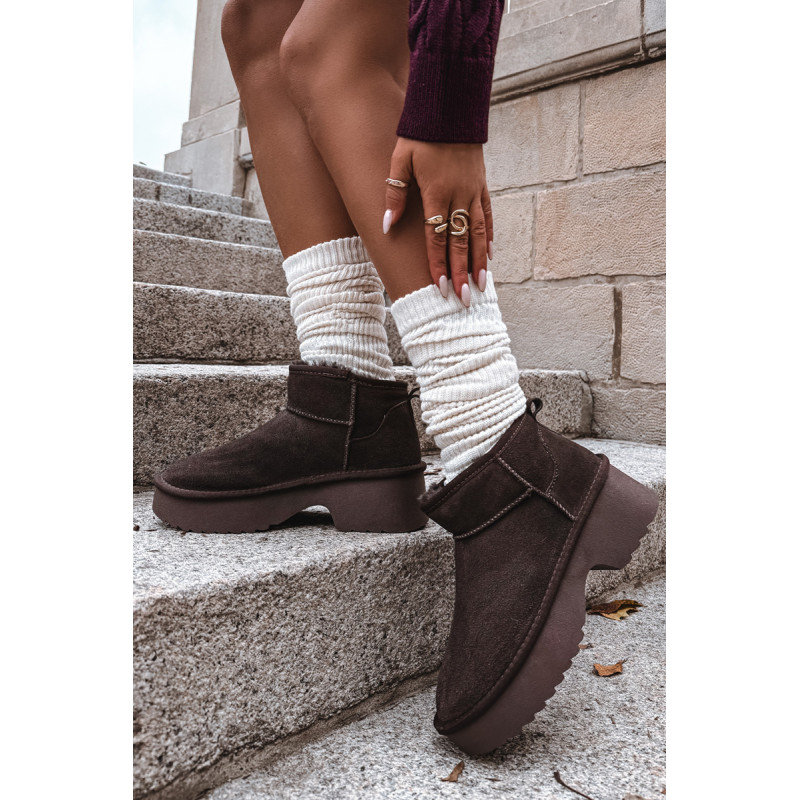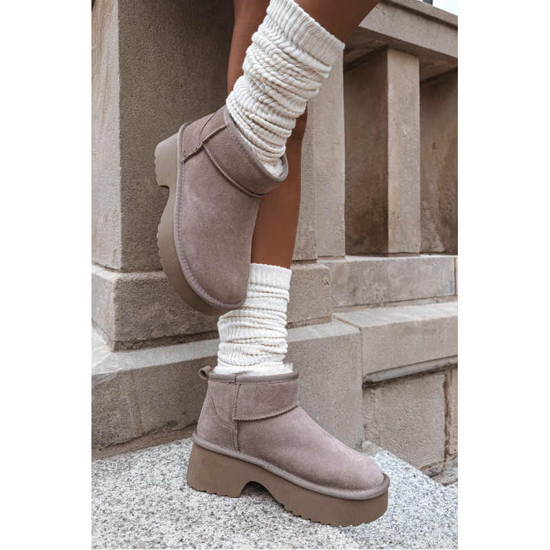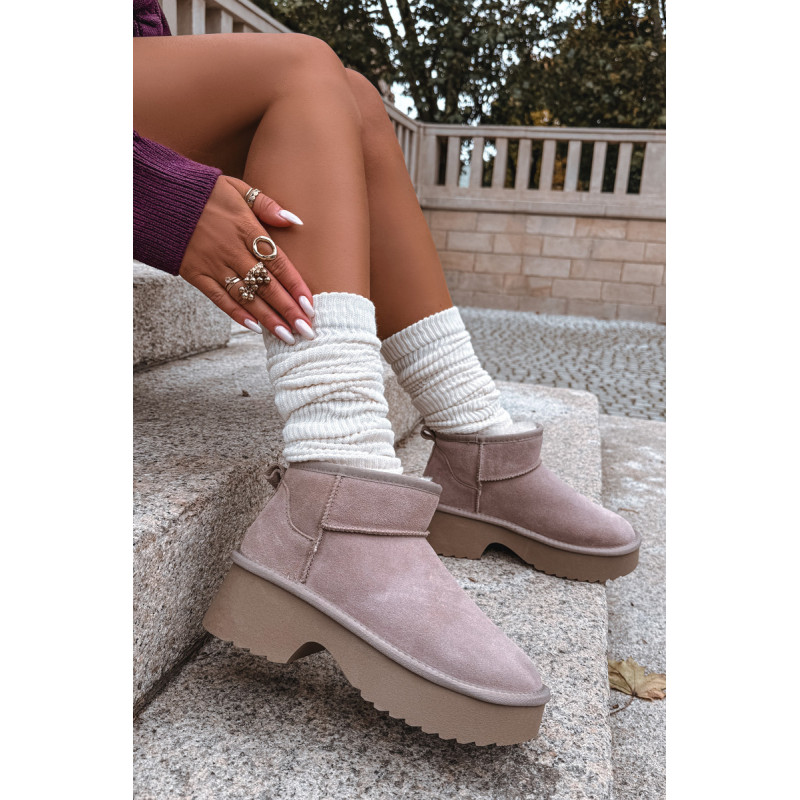 Moteriškos sniegpės, pagamintas iš natūralaus zomšos, yra stilingas pasiūlymas žiemai. Jie yra ant platformos, užtikrina stabilumą ir patogumą vaikščiojant ir veiksmingai izoliuoja nuo šalčio. Batai yra iškloti kailiu, kuris garantuoja šilumą ir komfortą šaltomis dienomis. Madingas siluetas leidžia jiems puikiai įsilieti į dabartines tendencijas. Ideali pasirinkimas moterims, vertinančioms stilių ir komfortą žiemą. Renkantis dydį, vadovaukitės dydžių lentele.