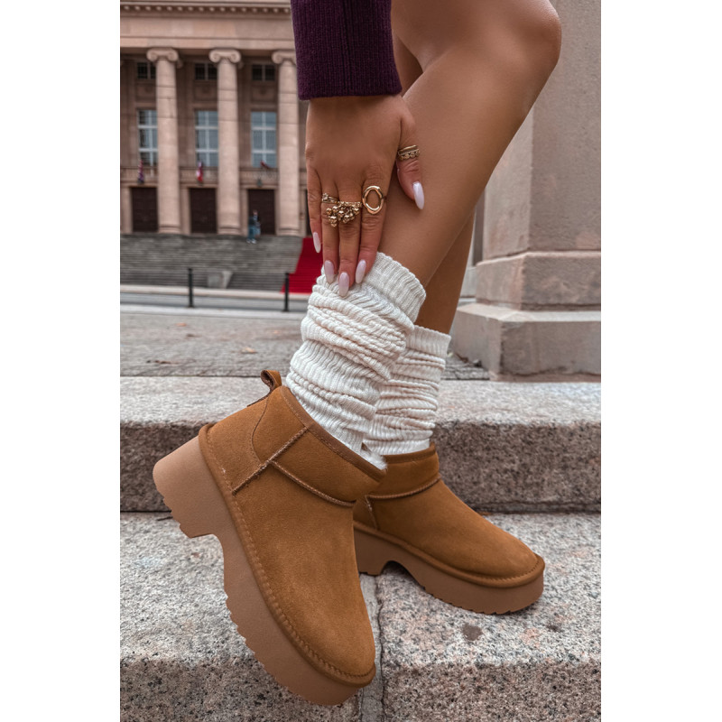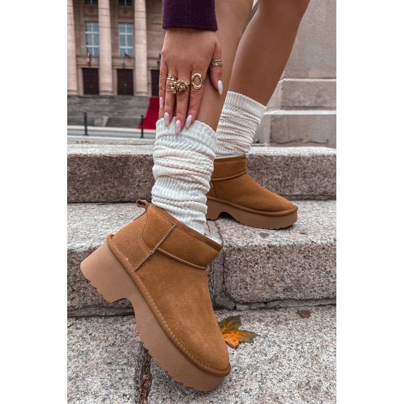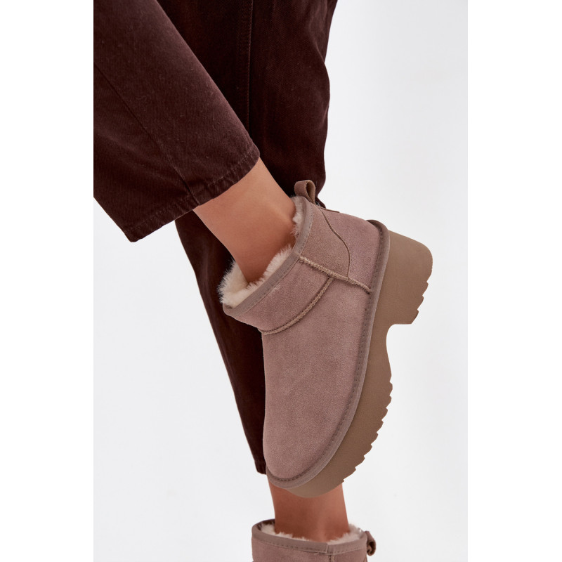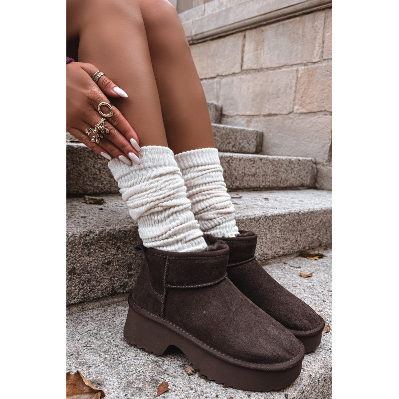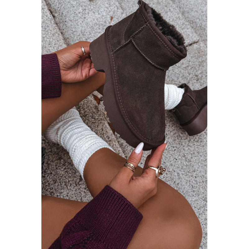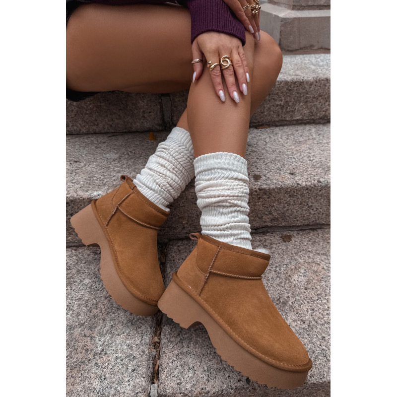 Moteriškos sniegpės, pagamintas iš natūralaus zomšos, yra stilingas pasiūlymas žiemai. Jie yra ant platformos, užtikrina stabilumą ir patogumą vaikščiojant ir veiksmingai izoliuoja nuo šalčio. Batai yra iškloti kailiu, kuris garantuoja šilumą ir komfortą šaltomis dienomis. Madingas siluetas leidžia jiems puikiai įsilieti į dabartines tendencijas. Ideali pasirinkimas moterims, vertinančioms stilių ir komfortą žiemą. Renkantis dydį, vadovaukitės dydžių lentele.