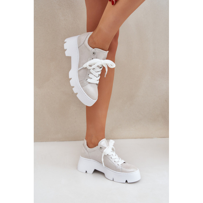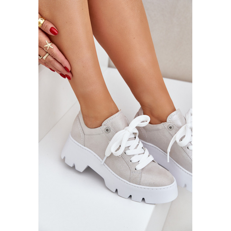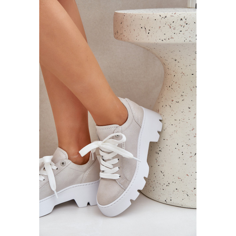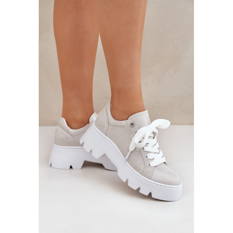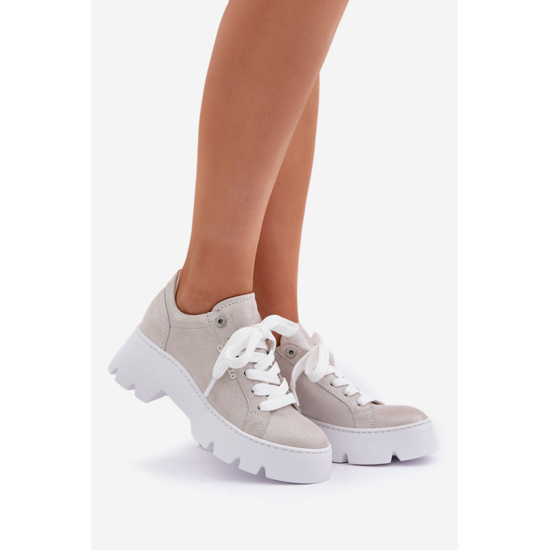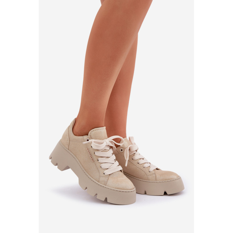 Moteriški sportbačiai iš Chebello prekės ženklo. Pagaminti iš aukštos kokybės natūralios odos, jie garantuoja ilgaamžiškumą ir komfortą. Įrengti ant platformos ir plokščiu kulnu, jie siūlo stabilumą ir komfortą visą dieną. Apvalūs pirštai suteikia jiems subtilų, moterišką charakterį, o stilingas siluetas puikiai dera tiek su kasdieniais, tiek su elegantiškais įvaizdžiais. Tai ideali pasirinktis moterims, norinčioms sujungti madą su komfortu. Renkantis dydį, vadovaukitės dydžių lentele.