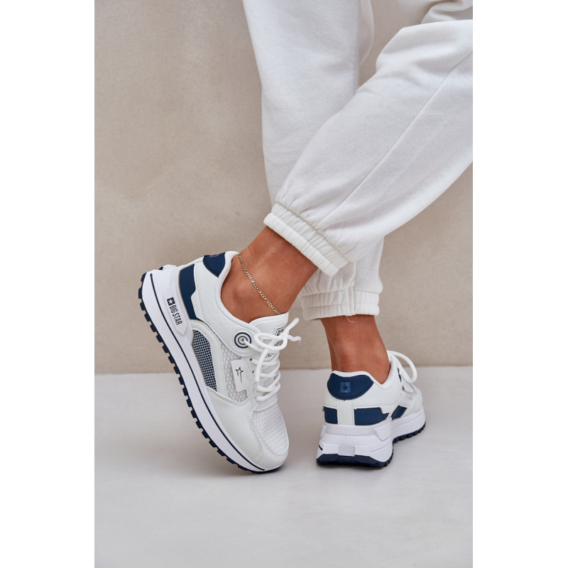 Moteriški sportiniai bateliai iš Big Star prekės ženklo yra puikus stiliaus ir funkcionalumo derinys. Pagaminti iš ekologiškos odos ir tekstilės medžiagos, jie užtikrina patvarumą ir komfortą. Įmontuoti ant platformos, jie suteikia siluetui lengvumo, tuo pačiu užtikrindami stabilumą. HI-POLLY SYSTEM padas, pagamintas iš perdirbtų medžiagų, siūlo didelį atsparumą dilimui ir deformacijoms, efektyviai sugeria drėgmę ir užtikrina puikų smūgių sugertį, todėl tai yra ideali pasirinkimo galimybė aktyvioms dienoms. Renkantis dydį, vadovaukitės dydžių lentele.
