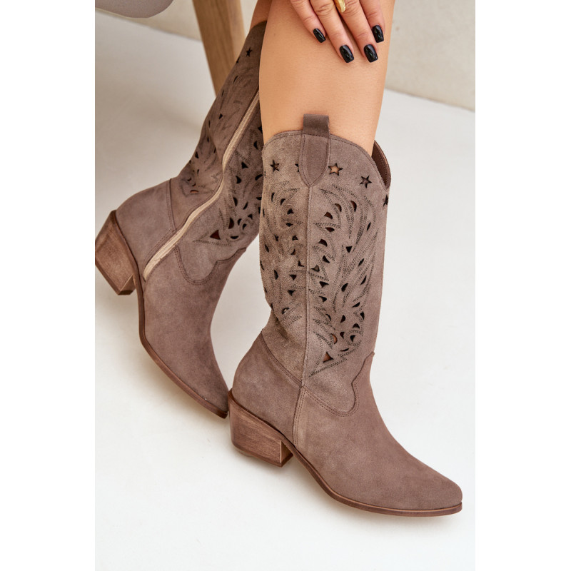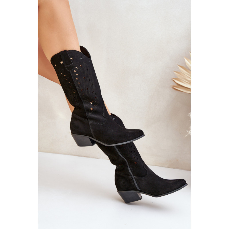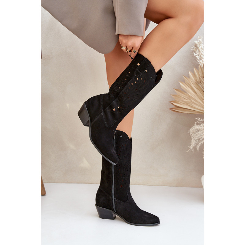 Batai iki kelių su ažūriniu kotu. Užsegamas užtrauktuku. Jie turi sustiprintą kulną. Pagaminta iš natūralios zomšos. Smailūs pirštai. Tai batai, kurie leis jums sukurti daug įdomių stilių kasdieniam dėvėjimui. Minkštas odinis vidpadis ir platus kulnas suteiks stabilumo naudojimo metu. Ažūriniai batai yra idealus pasirinkimas daugeliui stilių. Rinkdamiesi dydį, žiūrėkite dydžių lentelę.
