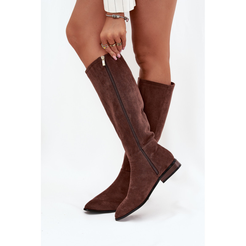 Klasikiniai moteriški batai, tvirtinami ant žemo, stabilaus stulpo, puikiai tiks pereinamuoju sezonu. Jie turi standumą ir izoliaciją švelnaus kailio pavidalu pėdos aukštyje. Viršutinė dalis pagaminta iš malonios liesti ekologiškos zomšos ir per visą ilgį užsegama užtrauktuku. Minkštas, izoliuotas vidpadis užtikrins komfortą naudojimo metu. Renkantis dydį, naudokite dydžių lentelę.