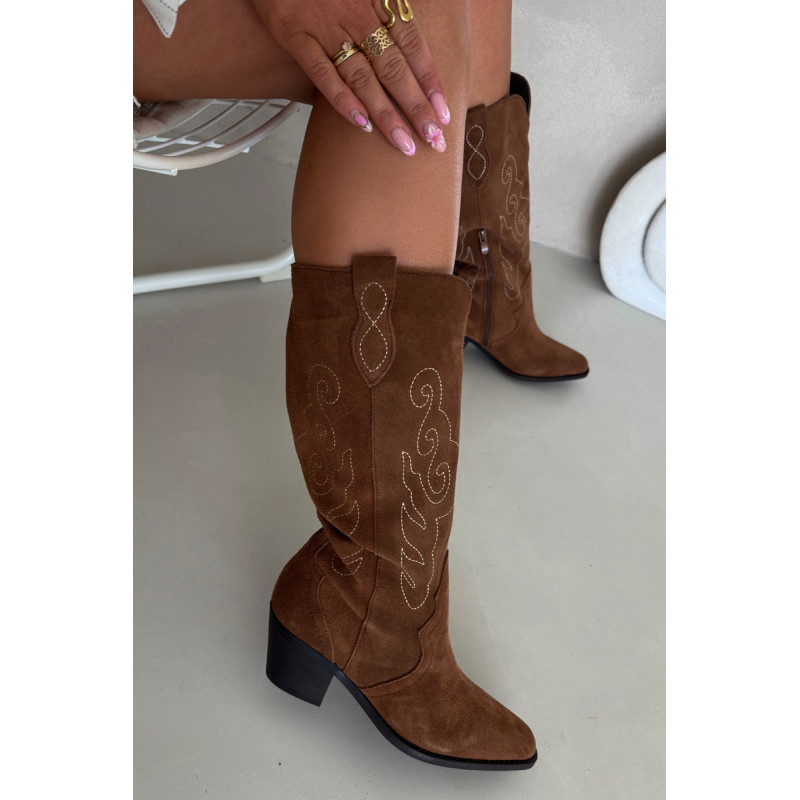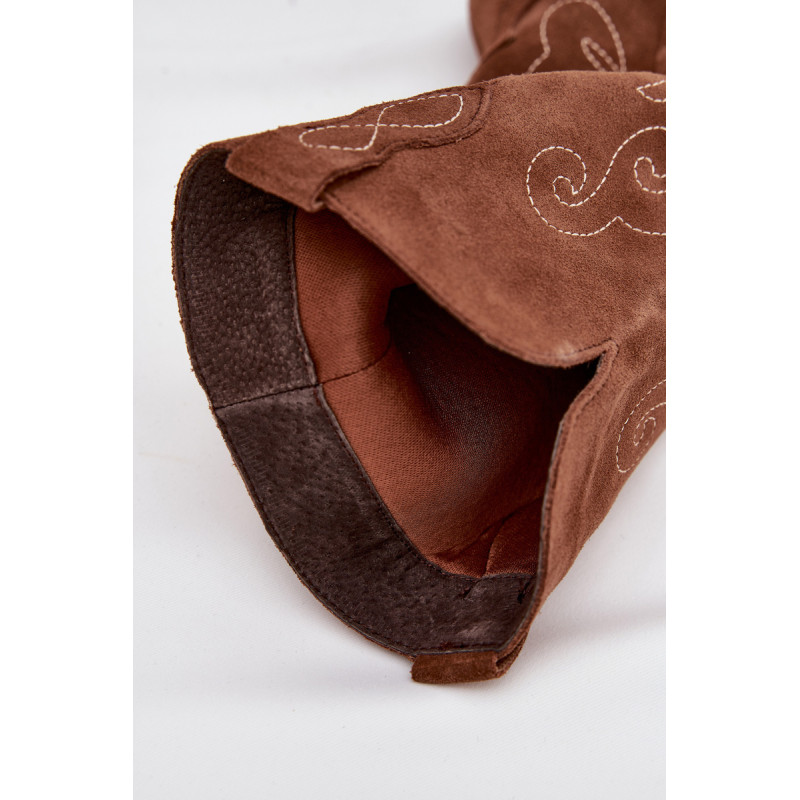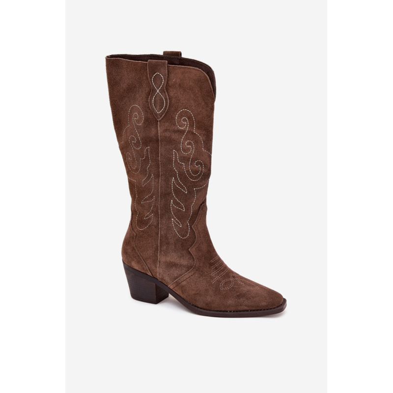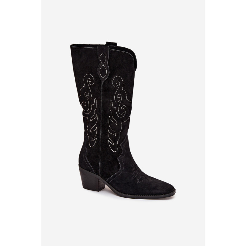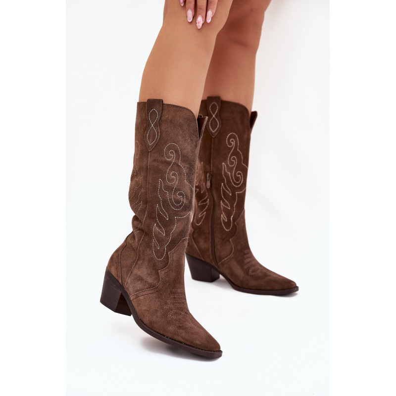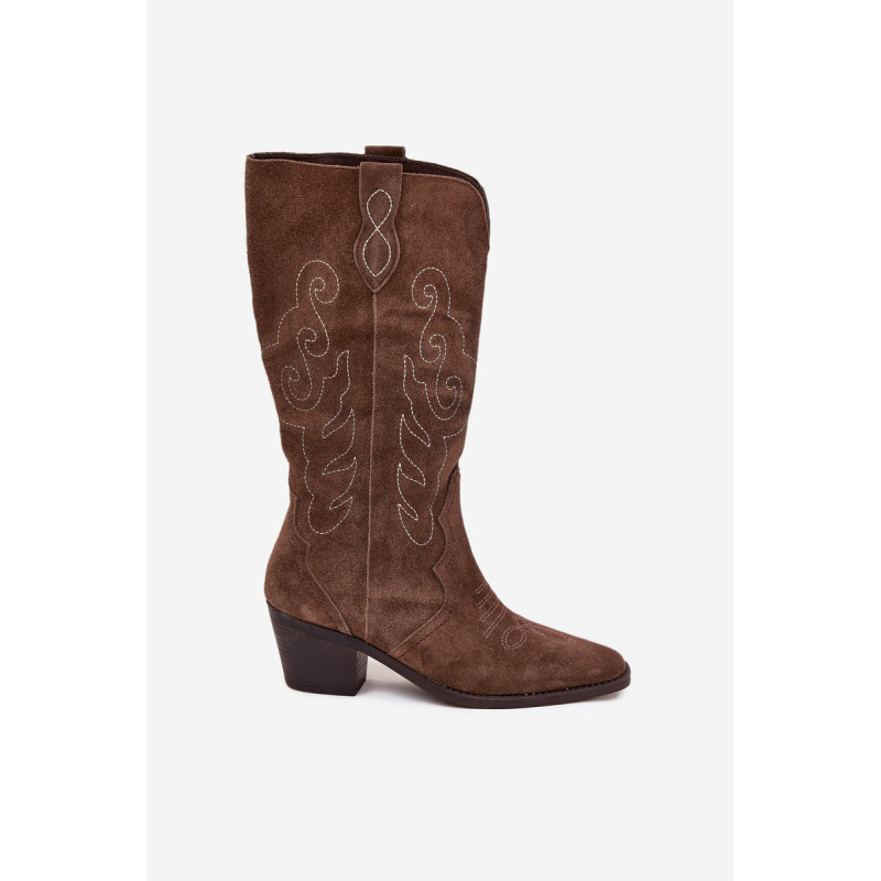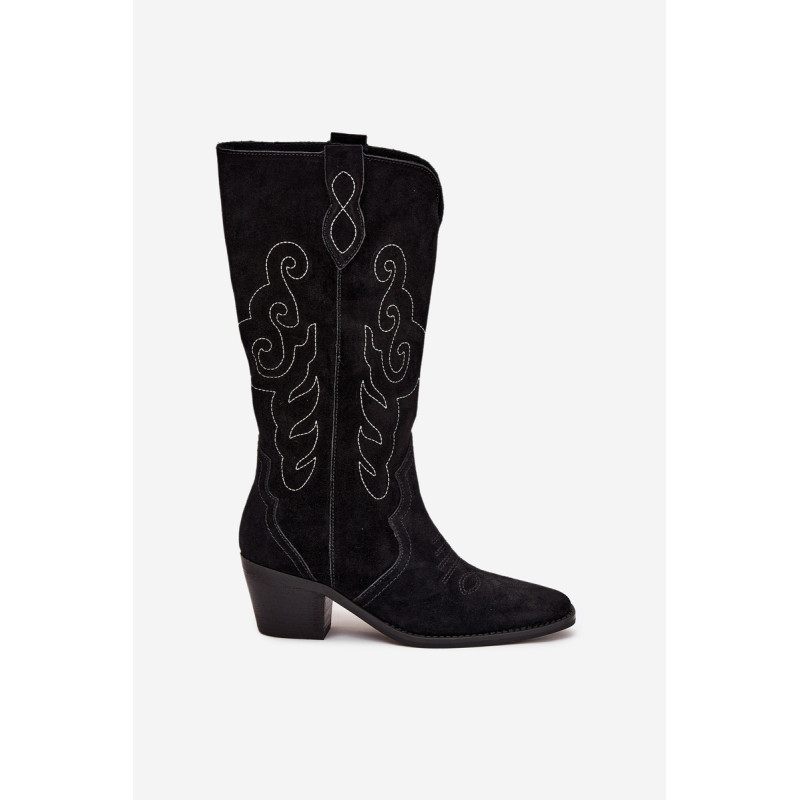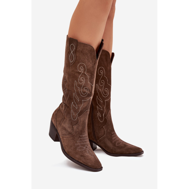 Moteriški kaubojiško stiliaus aulinukai – itin madinga avalynė pavasario-rudens sezonui. Pagaminta iš natūralios zomšos. Dėl stabilaus, žemo kulno jie yra patogūs ir puikiai tinka dėvėti kasdien. Užsegamas modelis su papildomu užtrauktuku leidžia lengvai apsiauti batus. Kotas siekia šiek tiek žemiau kelio. Odinis, minkštas vidpadis suteikia komfortą nešiojant. Šie batai puikiai papildys įvairius stilius. Jie tikrai turėtų būti jūsų garderobe! Rinkdamiesi dydį, žiūrėkite dydžių lentelę.