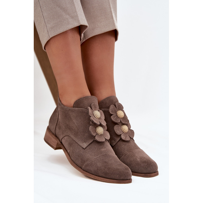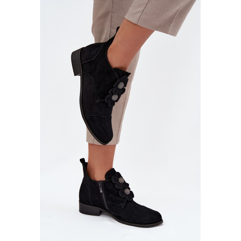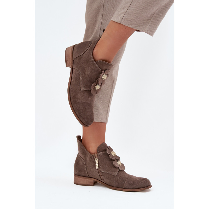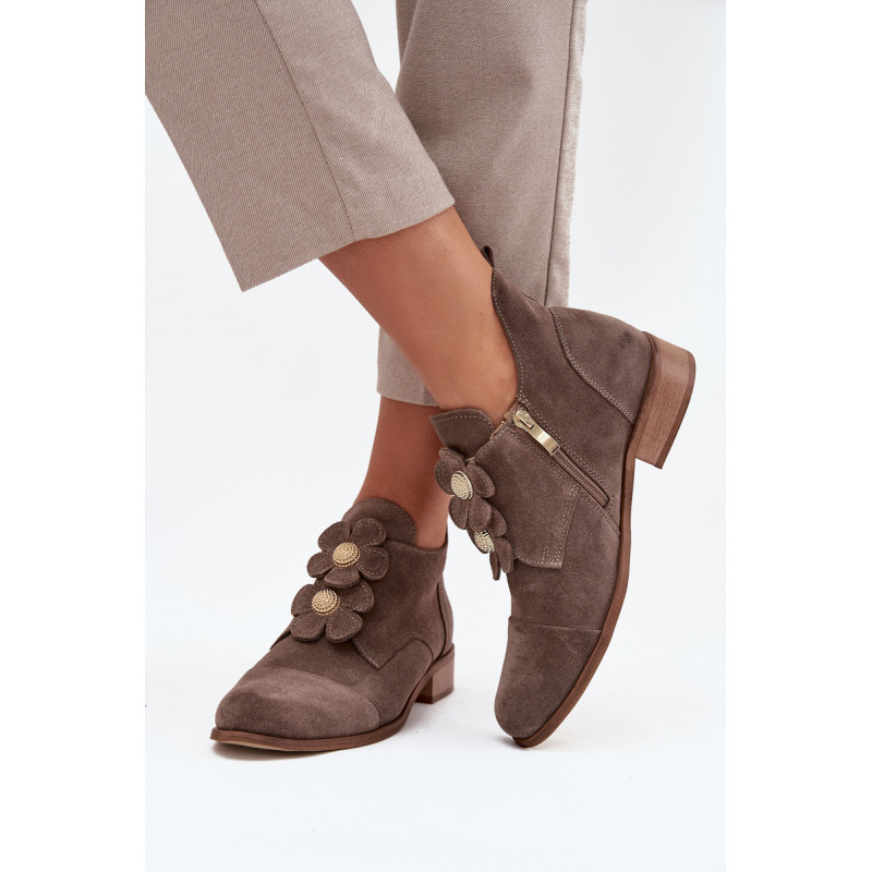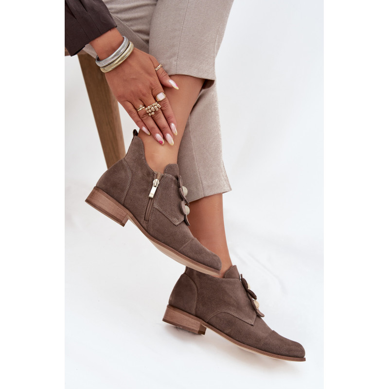 Eleganti moteriški batai iš natūralaus zomšos yra subtilus ir stilingas pasirinkimas įvairioms progoms. Pagaminti iš aukštos kokybės zomšos, jie pasižymi subtiliu, bet išraiškingu išvaizda, papildyta dviem dekoratyviniais žiedais, kurie suteikia jiems išskirtinį žavesį. Užsegami su užtrauktuku, tai užtikrina patogumą ir lengvumą užsidėti. Šie batai puikiai derės tiek su elegantiška, tiek su kasdienine apranga, sujungdami komfortą su moterišku, elegantišku įvaizdžiu. Renkantis dydį, prašome vadovautis dydžių lentele. Renkantis dydį, vadovaukitės dydžių lentele.