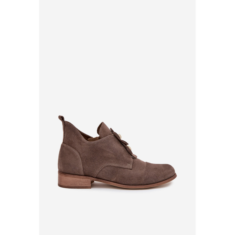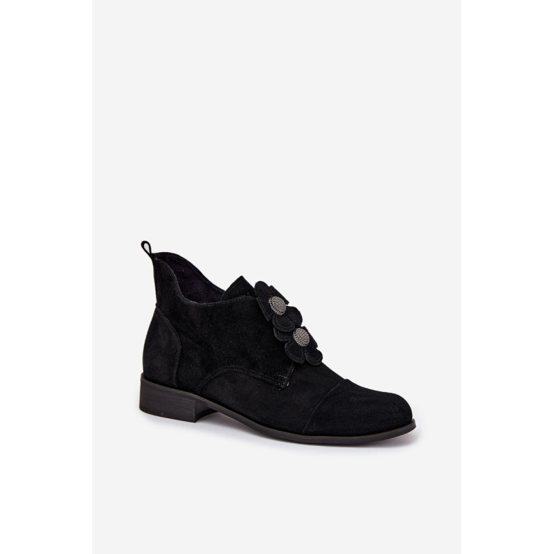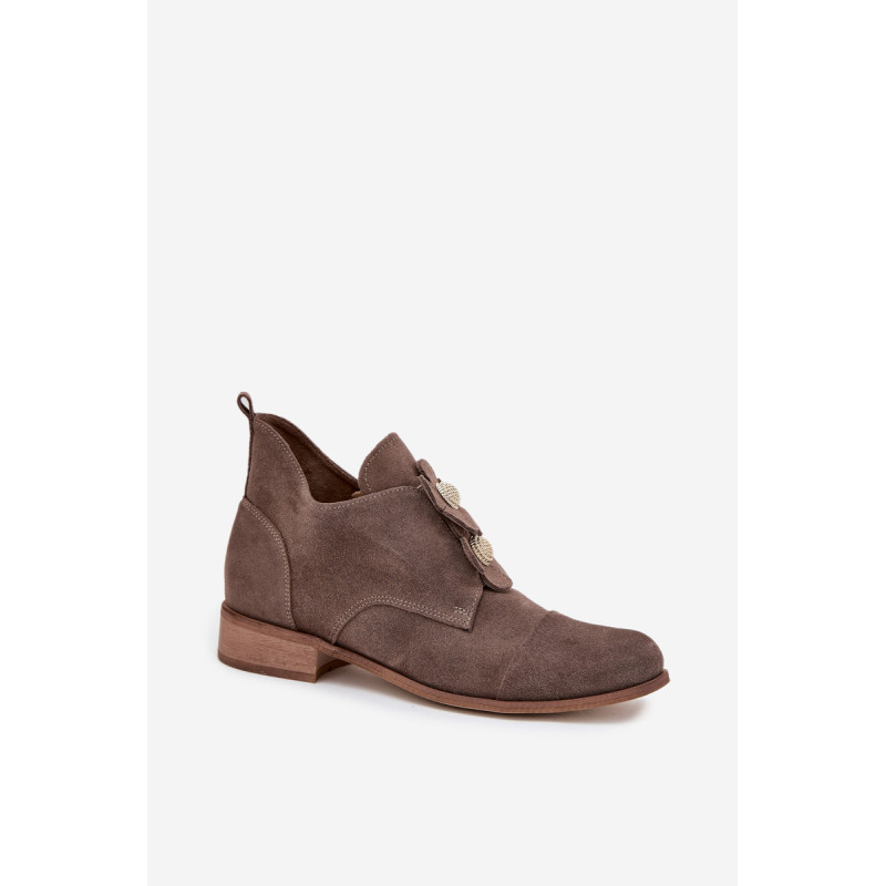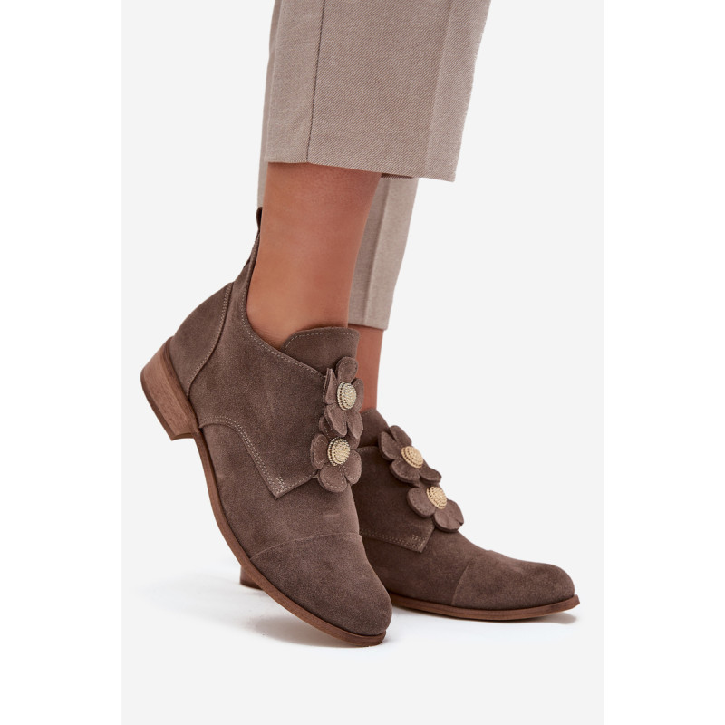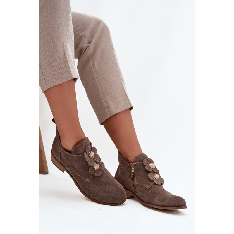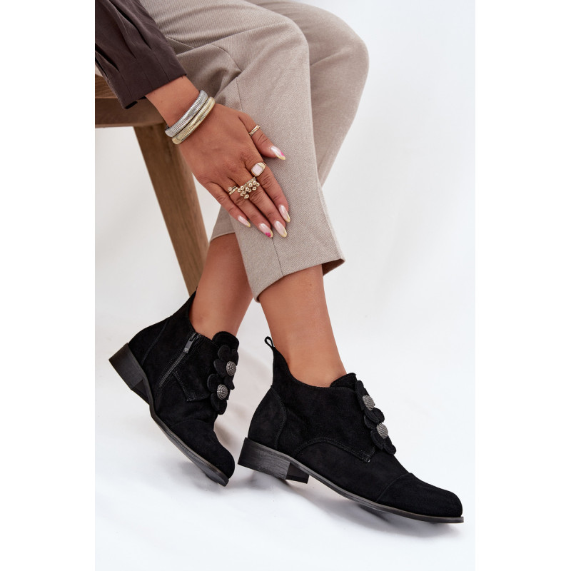 Eleganti moteriški batai iš natūralaus zomšos yra subtilus ir stilingas pasirinkimas įvairioms progoms. Pagaminti iš aukštos kokybės zomšos, jie pasižymi subtiliu, bet išraiškingu išvaizda, papildyta dviem dekoratyviniais žiedais, kurie suteikia jiems išskirtinį žavesį. Užsegami su užtrauktuku, tai užtikrina patogumą ir lengvumą užsidėti. Šie batai puikiai derės tiek su elegantiška, tiek su kasdienine apranga, sujungdami komfortą su moterišku, elegantišku įvaizdžiu. Renkantis dydį, prašome vadovautis dydžių lentele. Renkantis dydį, vadovaukitės dydžių lentele.