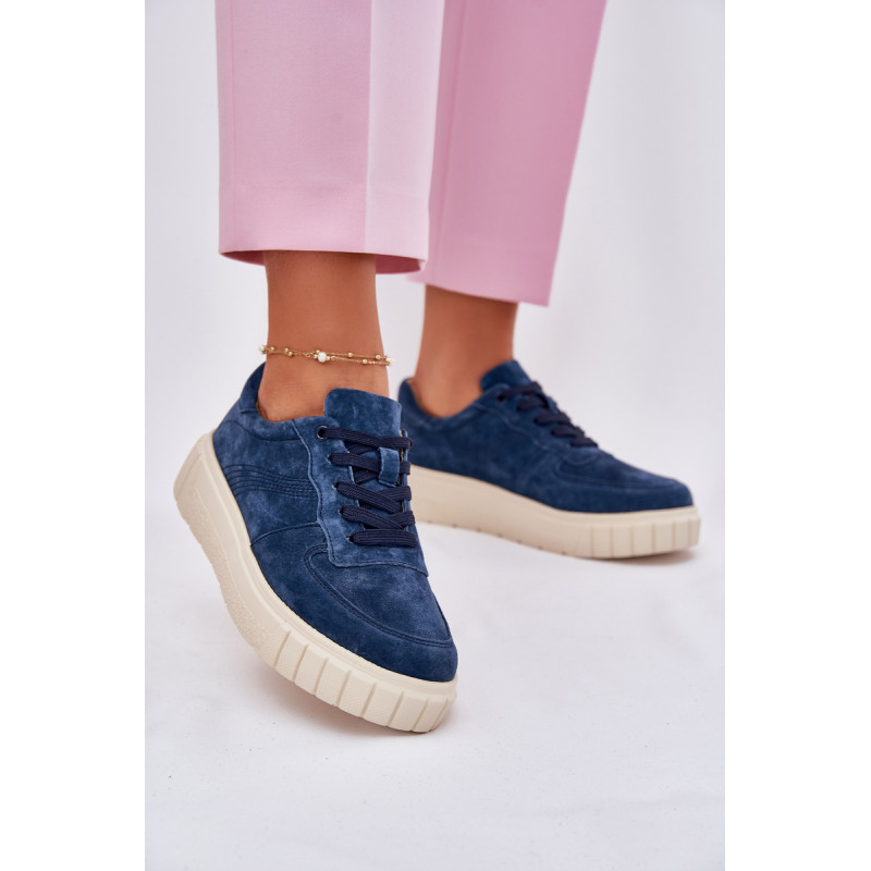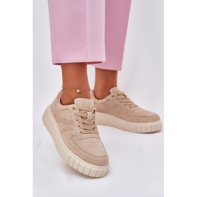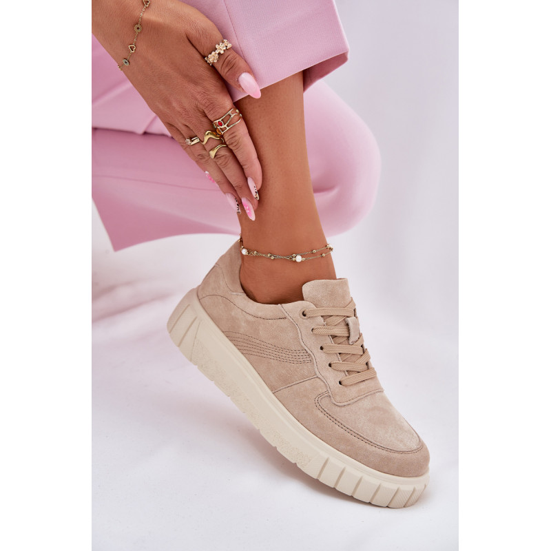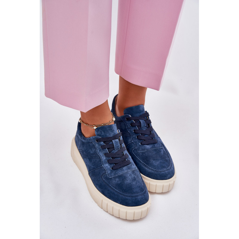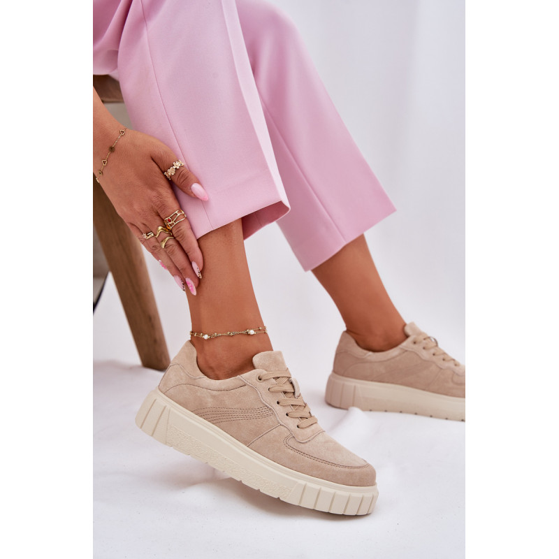 Moteriški sportbačiai iš natūralios zomšos yra stiliaus ir komforto derinys. Įrengti ant platformos, jie užtikrina papildomą aukštį ir stabilumą visą dieną. Oda, minkšta pado vidinė dalis rūpinasi pėdų komfortu, o modernus šių batų dizainas leidžia puikiai derėti su įvairiomis stilizacijomis. Idealiai tinka kasdieniams įvaizdžiams. Renkantis dydį, vadovaukitės dydžių lentele.