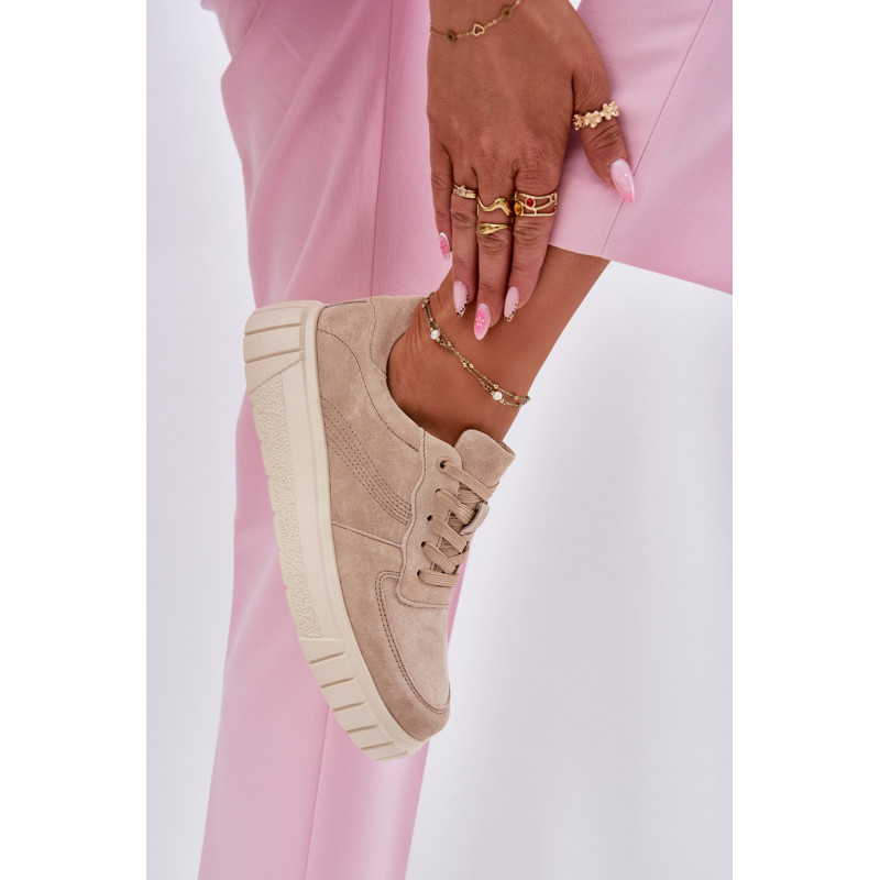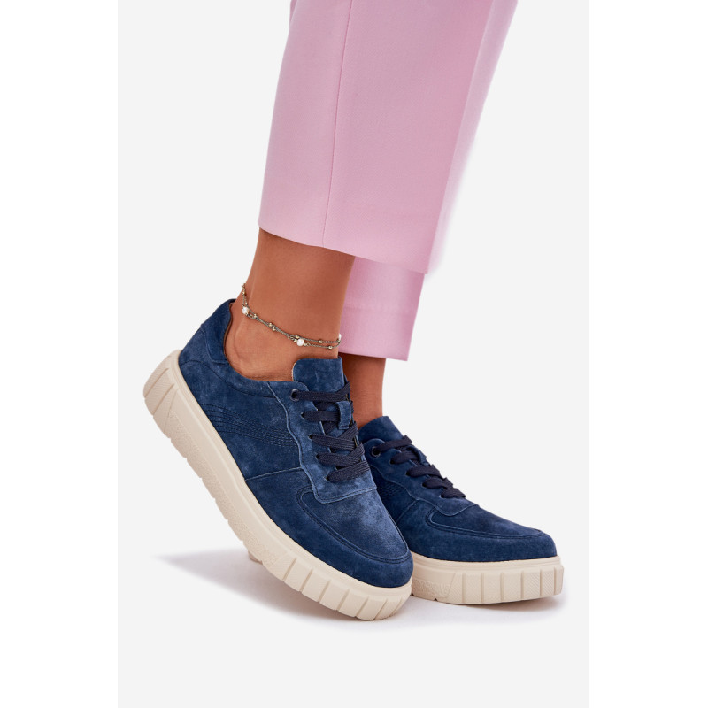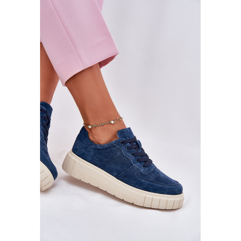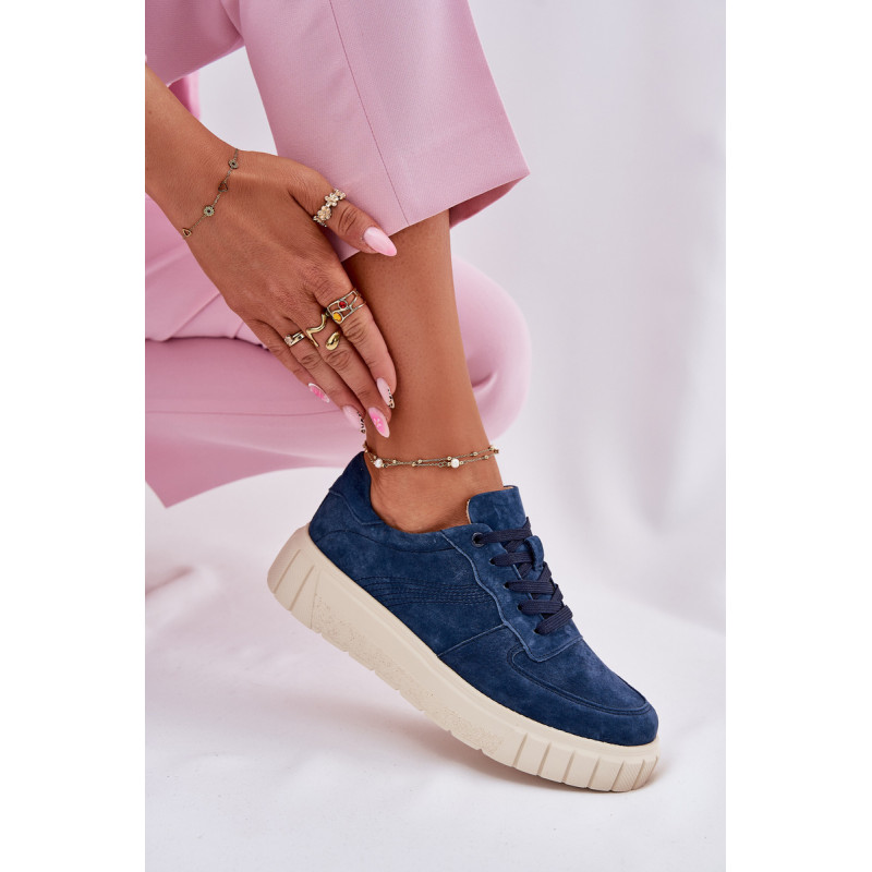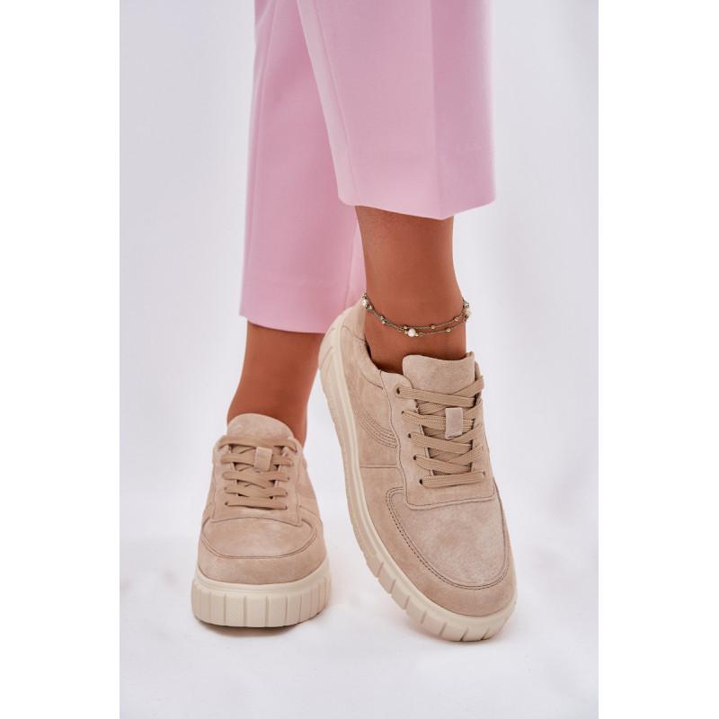 Moteriški sportbačiai iš natūralios zomšos yra stiliaus ir komforto derinys. Įrengti ant platformos, jie užtikrina papildomą aukštį ir stabilumą visą dieną. Oda, minkšta pado vidinė dalis rūpinasi pėdų komfortu, o modernus šių batų dizainas leidžia puikiai derėti su įvairiomis stilizacijomis. Idealiai tinka kasdieniams įvaizdžiams. Renkantis dydį, vadovaukitės dydžių lentele.