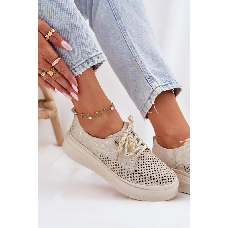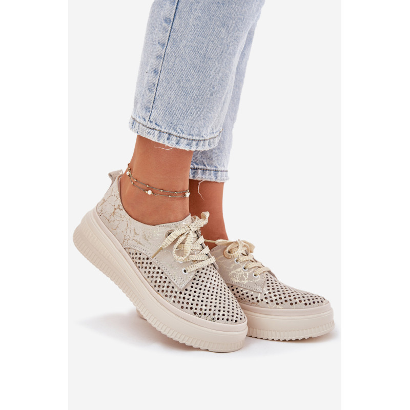 Natūralaus zomšo pagamintos moteriškos perforuoti bateliai yra elegancijos ir komforto derinys. Įmontuoti ant platformos, jie siūlo lengvumą ir stabilumą, užtikrindami komfortą visą dieną. Oda, minkšta vidpadis rūpinasi tinkama pėdų amortizacija. Modelis pasižymi perforuotu raštu, kuris suteikia lengvumo ir originalaus stiliaus. Šie elegantiški ir stilingi bateliai bus puikus pasirinkimas tiek kasdieniams, tiek formalesniems įvaizdžiams. Renkantis dydį, vadovaukitės dydžių lentele.
