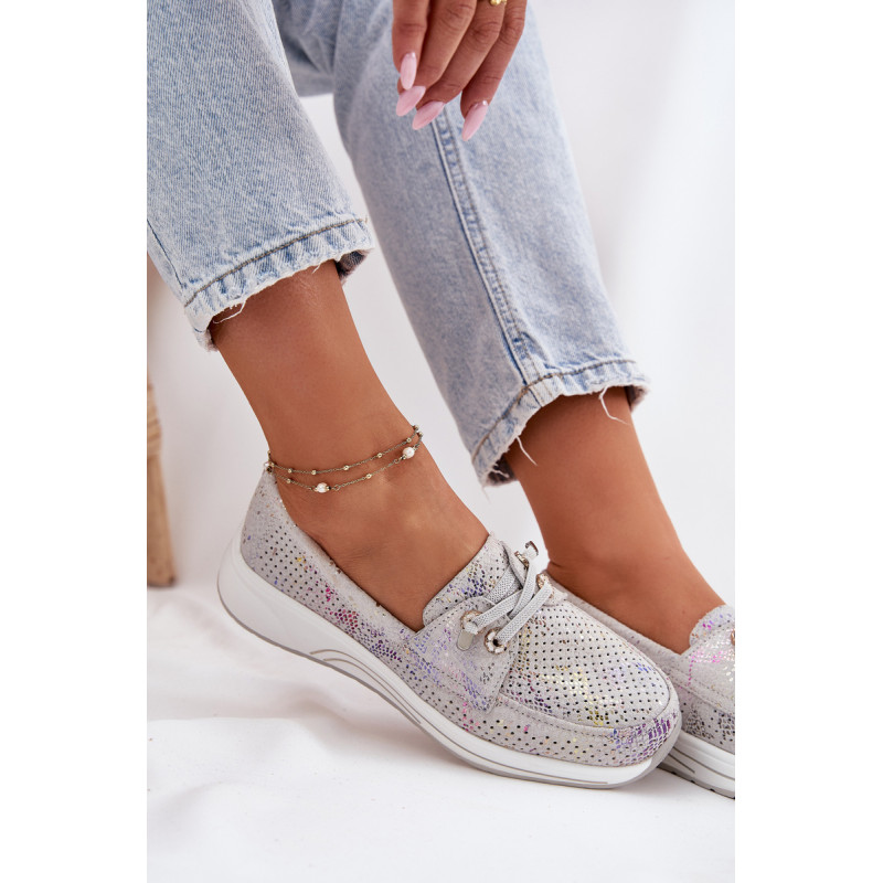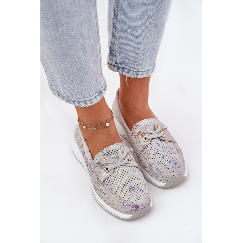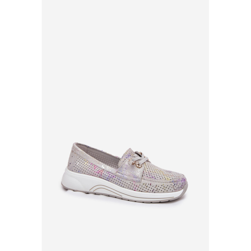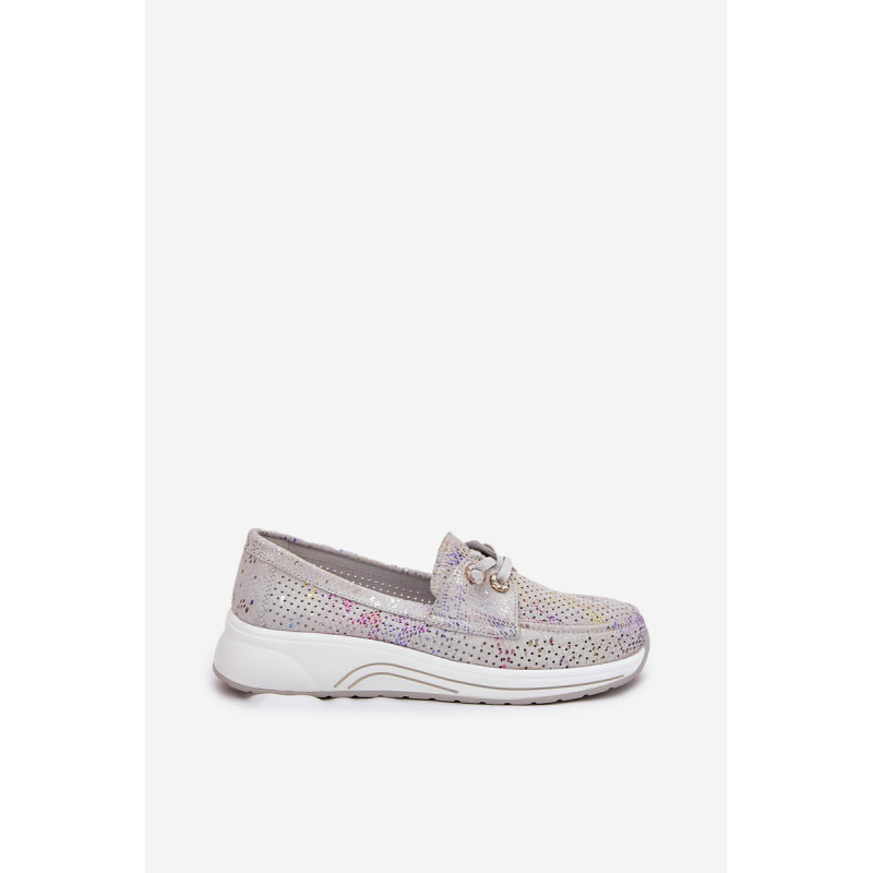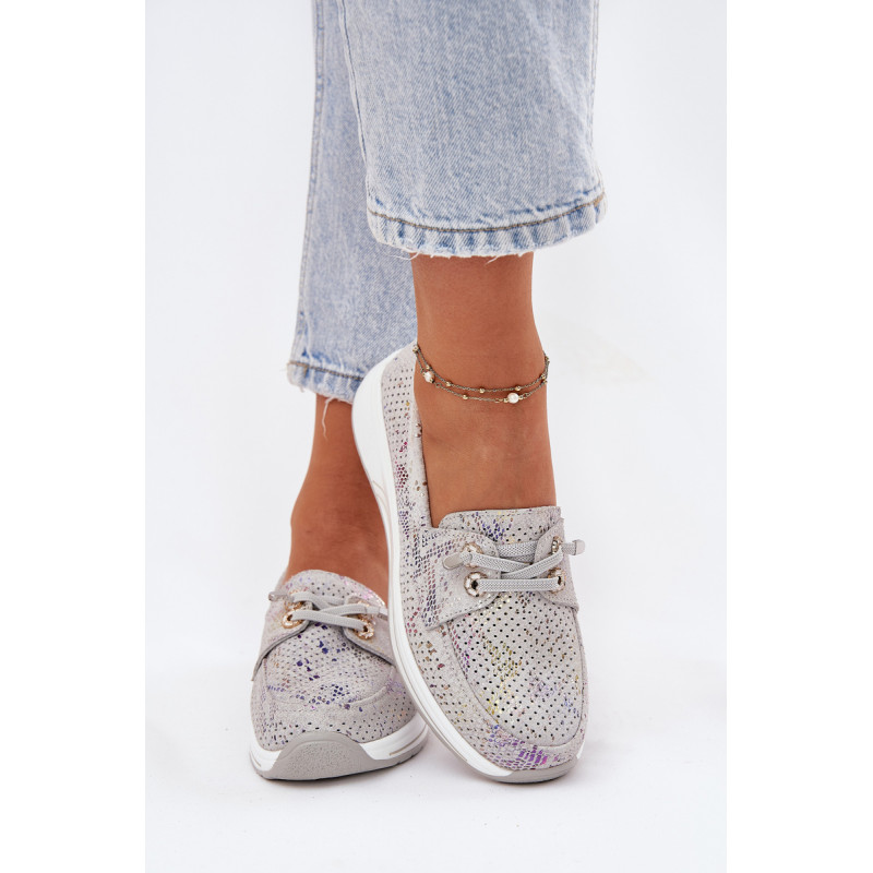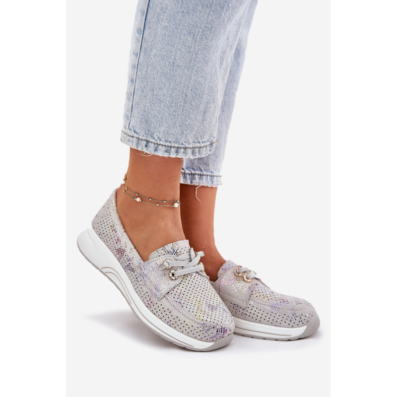Moteriški loaferiai, pagaminti iš natūralios zomšos, yra elegancijos ir komforto derinys. Įrengti ant platformos, jie užtikrina stabilumą ir komfortą visą dieną. Modelis turi elastingas juostas, imituojančias raištelius, su dekoratyvinėmis segtukais, kurie suteikia originalų charakterį. Apvalūs pirštai užtikrina komfortą, o minkštas padas papildomai rūpinasi pėdų komfortu. Lengvi ir patogūs, šie loaferiai bus puikus pasirinkimas kasdieniams stiliams, derinant funkcionalumą su madingu įvaizdžiu. Renkantis dydį, vadovaukitės dydžių lentele.