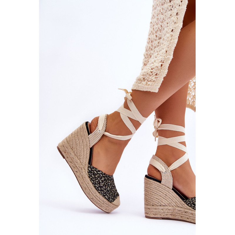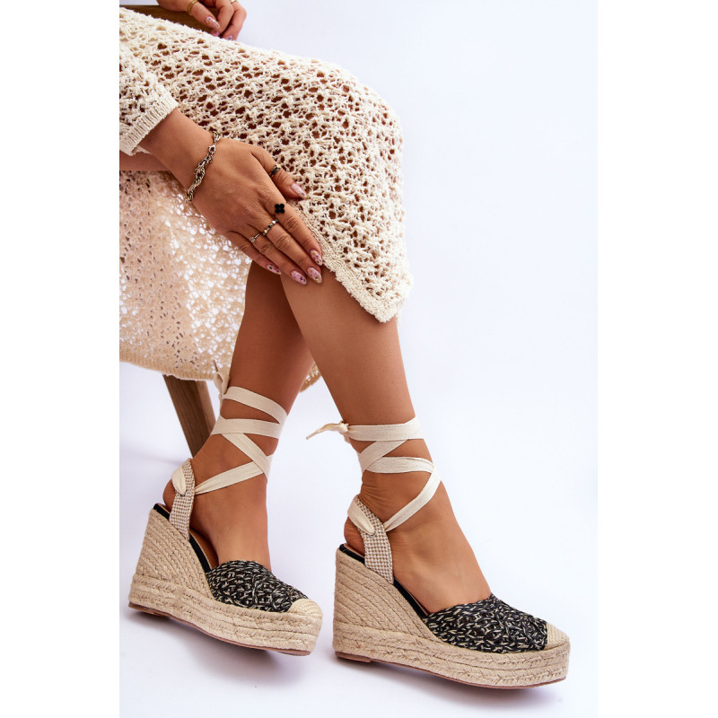 Madingi ir patogūs sandalai su kulnais, pleišto formos, dekoruoti džiuto pyne. Sandalai turi neslidų padą iš guminės medžiagos. Viršutinė dalis pagaminta iš audinio ir plastiko derinio. Sandalai surišami aplink kulkšnį. Vidpadis pagamintas iš eko odos leidžia patogiai dėvėti avalynę. Rinkdamiesi dydį, žiūrėkite dydžių lentelę.