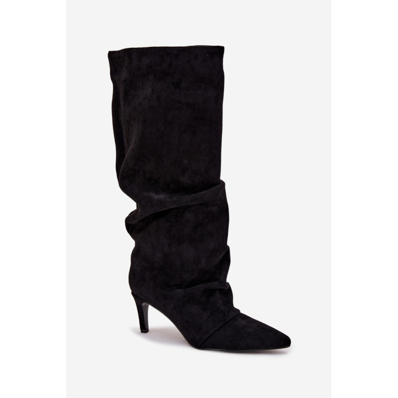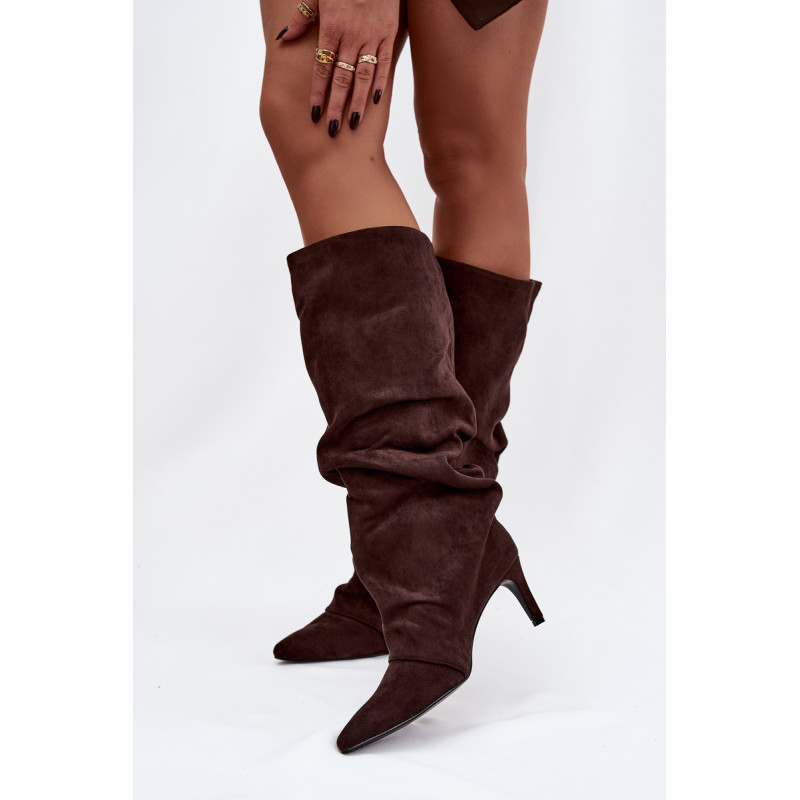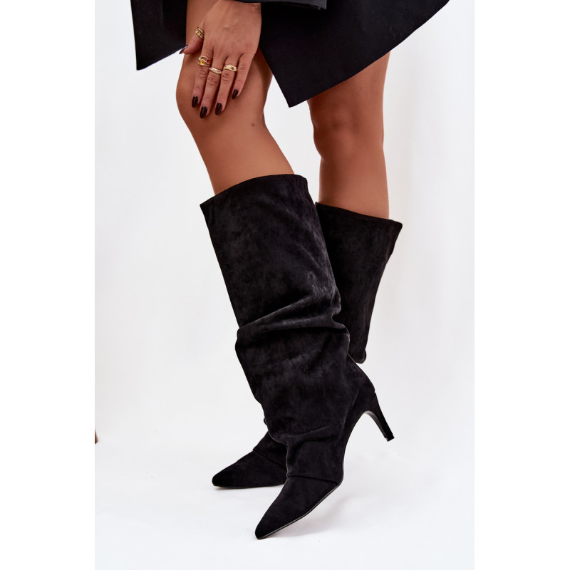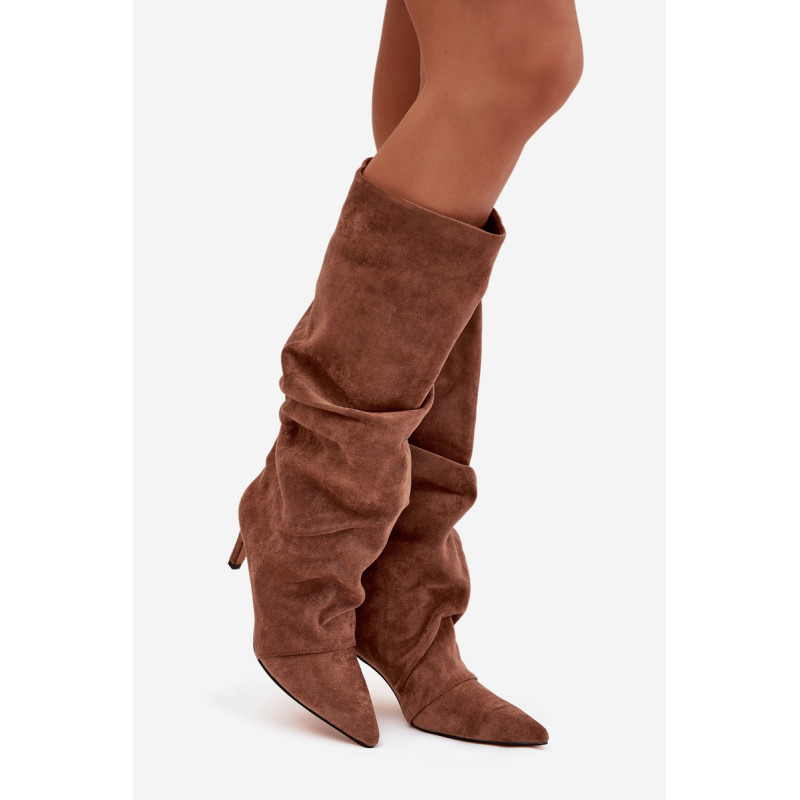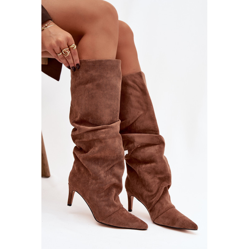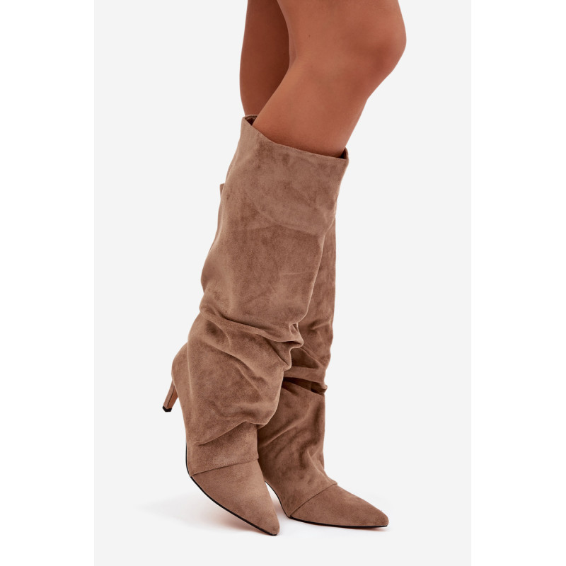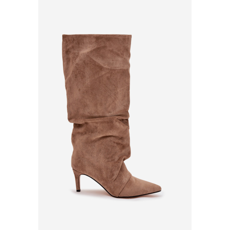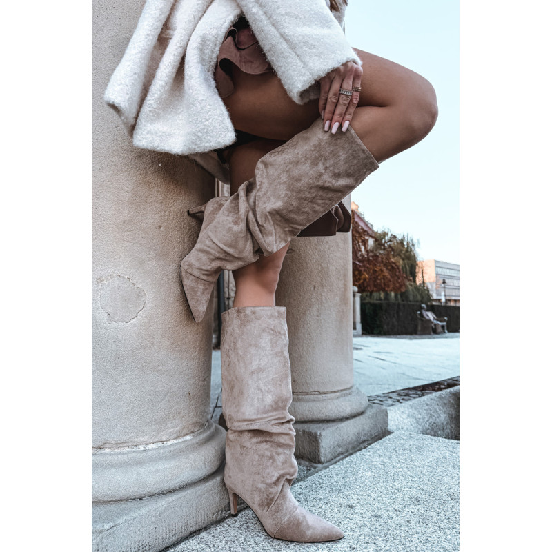 Moteriški auliniai batai, pagaminti iš minkštos dirbtinės odos nubuko, yra elegantiška ir moteriška pasiūlymas vėsesnėms dienoms. Modelis su lieknu kulnu puikiai pabrėžia kojas, o siauras nosis suteikia rafinuotumo ir optiškai lieknina siluetą. Plokščia, laisva aulo dalis suteikia visumai madingą charakterį. Batai yra įsisegami ir sušildyti batų antklode, todėl užtikrina patogumą ir šilumos komfortą. Tai labai stilingas modelis, kuris puikiai papildo tiek elegantiškas sukneles, tiek kasdienius džinsus, sukurdami madingą ir moterišką įvaizdį. Pasirinkdami dydį, prašome vadovautis dydžių lentele.