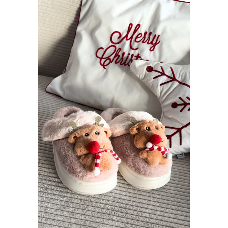 Moteriškos šlepetes šventiniame stiliuje su mielu elnio motyvu yra puikus pasirinkimas žiemą. Pagamintos iš minkšto, pūkuoto medžiagos, jos puikiai šildo kojas ir užtikrina malonią komfortą. Modelis įrengtas ant storesnio, lengvo putplasčio pado, kuris didina patogumą ir izoliaciją nuo šalto paviršiaus. Šilti, jaukūs ir pilni šventinio žavesio — puikiai tinka namų poilsiui ir kaip dovanos idėja. Rinkdamiesi dydį, vadovaukitės dydžių lentele. Renkantis dydį, vadovaukitės dydžių lentele.