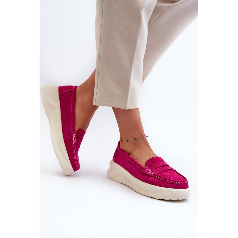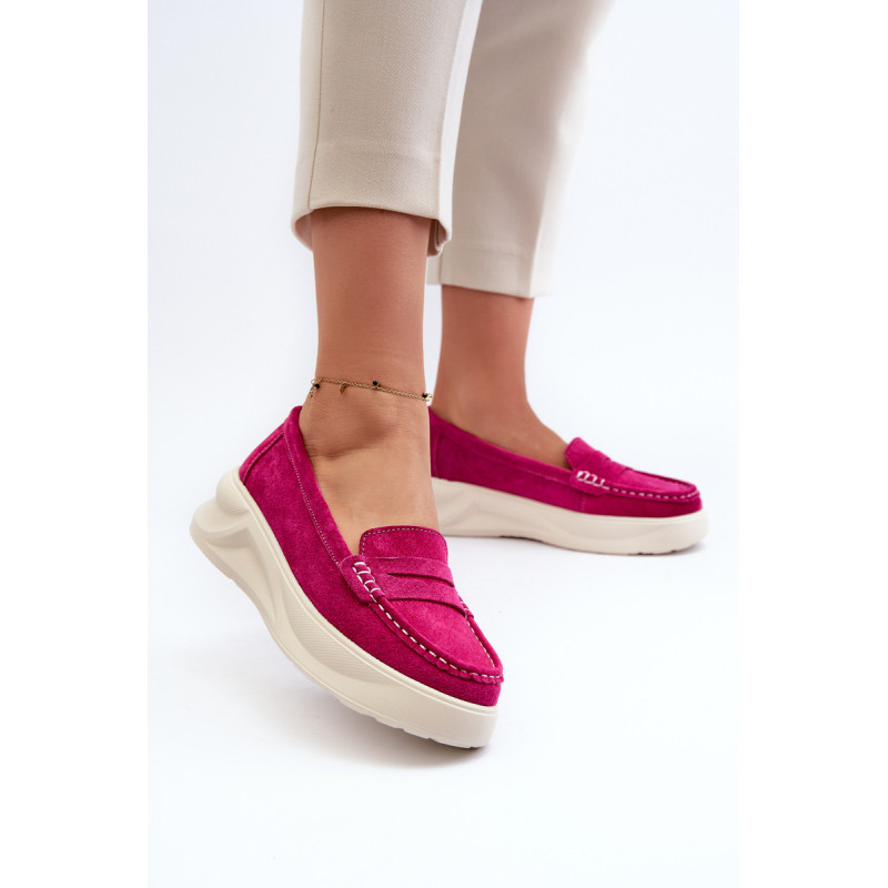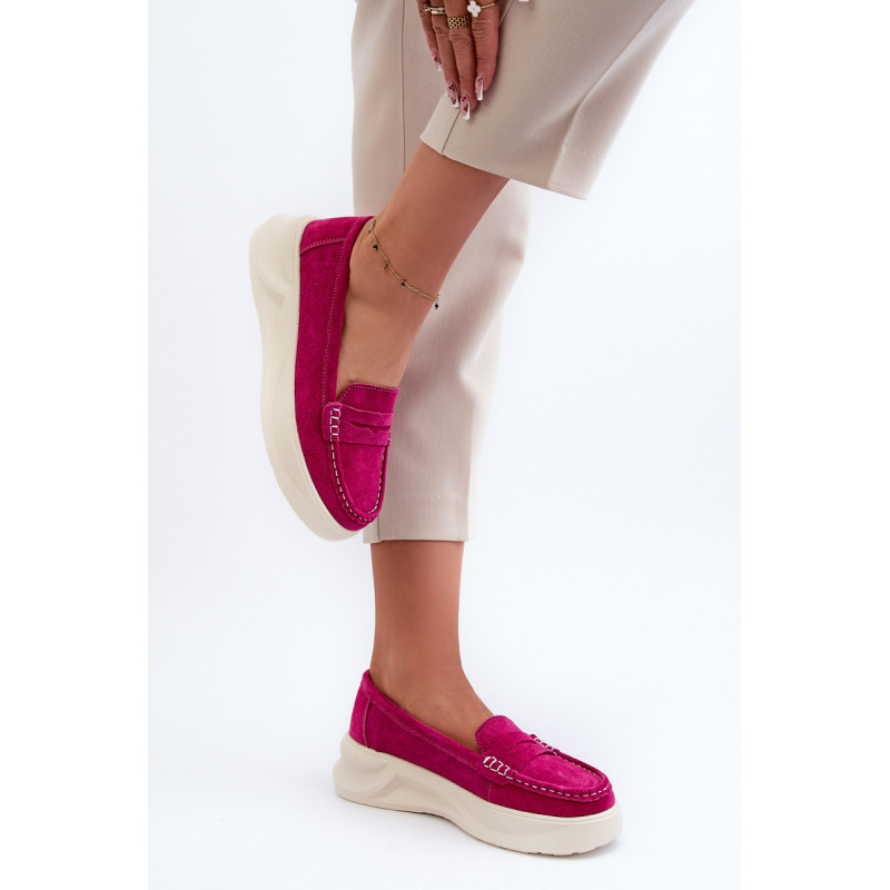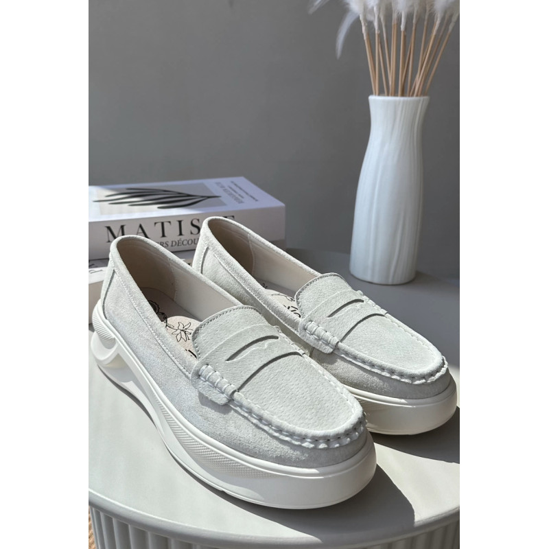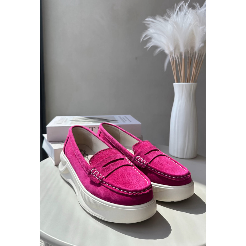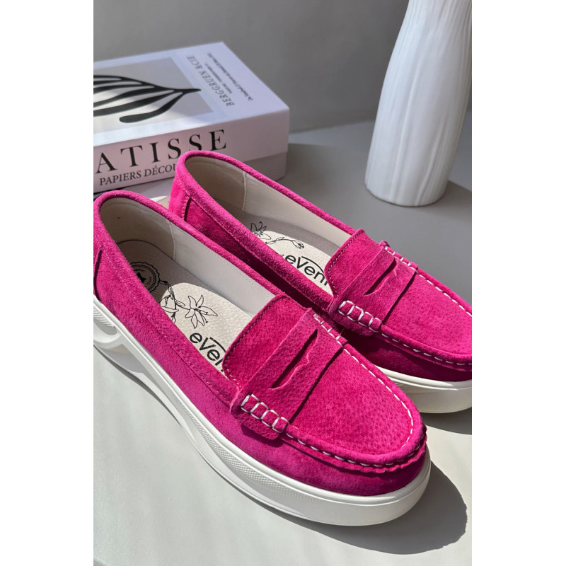 Moteriški mokasinai, pagaminti iš natūralios zomšos. Nustatykite ant platformos ir lengvo pleišto kulno. Suapvalinti kojų pirštai. Šie mokasinai, puikiai tinkantys daugeliui stilių, yra elegancijos ir patogumo derinys. Jūs tikrai turėtumėte juos turėti savo garderobe! Rinkdamiesi dydį, žiūrėkite dydžių lentelę.