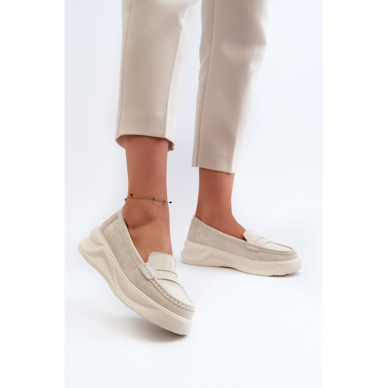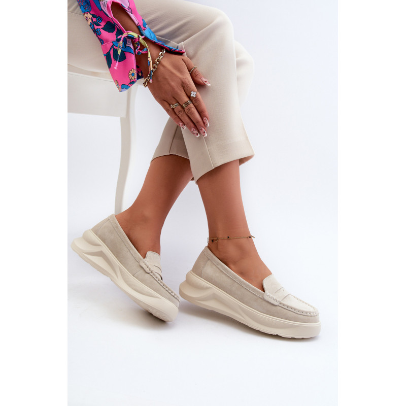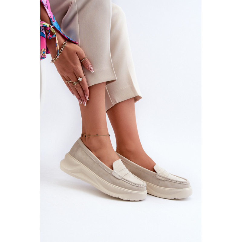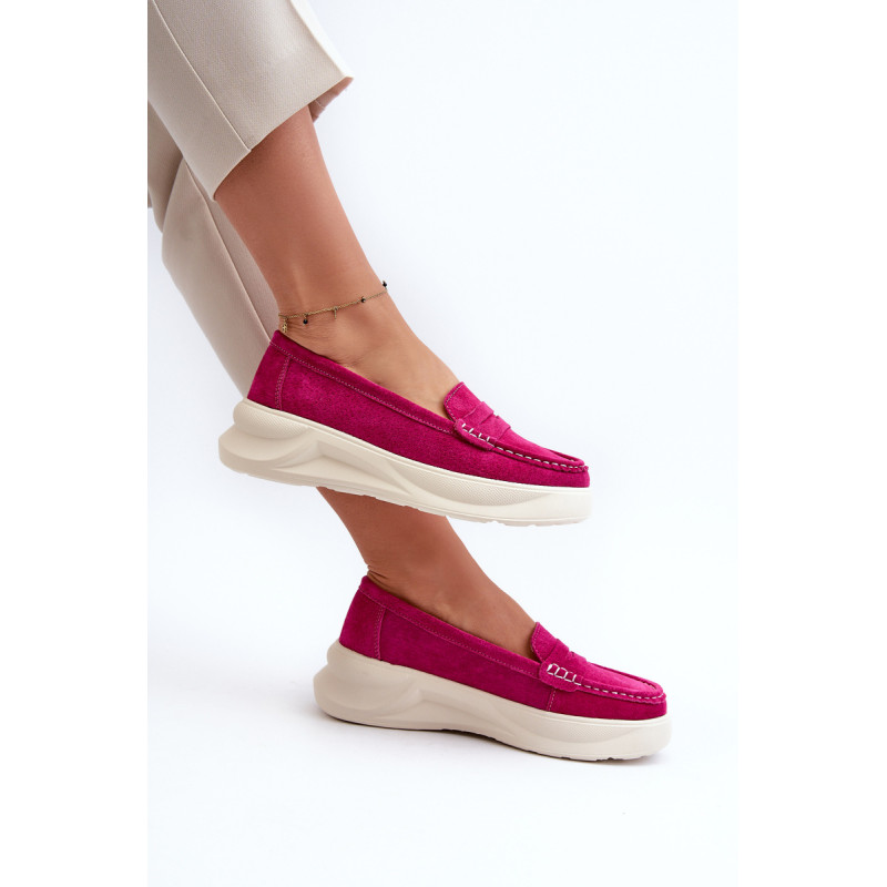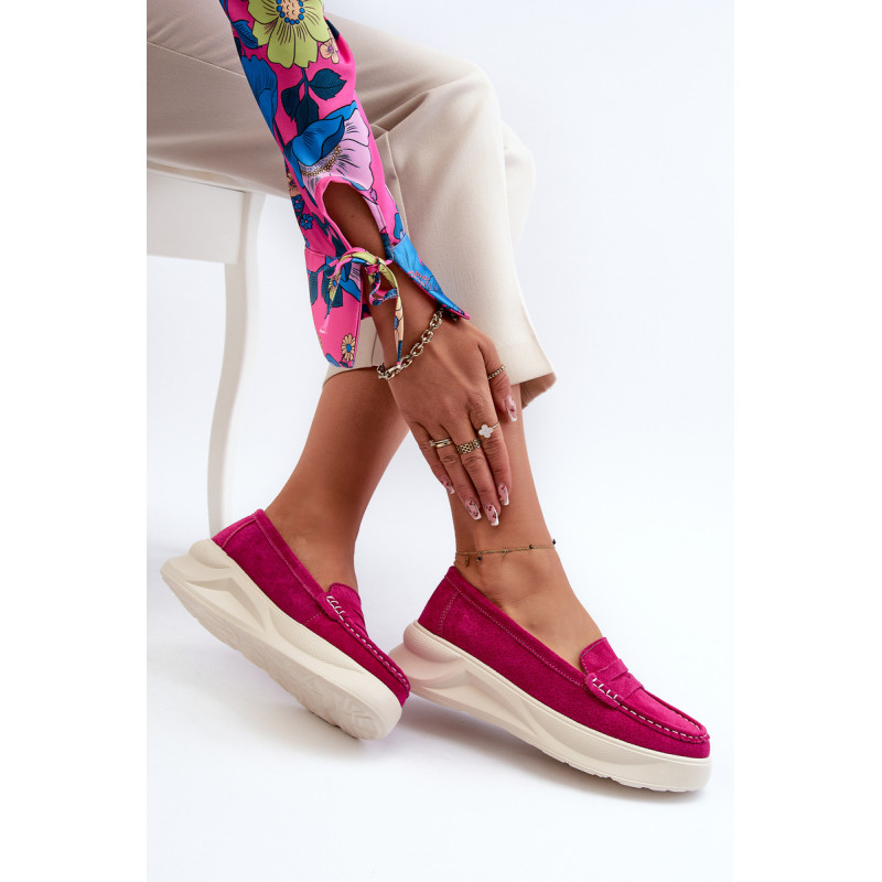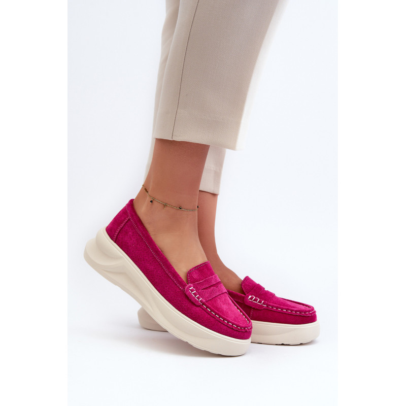 Moteriški mokasinai, pagaminti iš natūralios zomšos. Nustatykite ant platformos ir lengvo pleišto kulno. Suapvalinti kojų pirštai. Šie mokasinai, puikiai tinkantys daugeliui stilių, yra elegancijos ir patogumo derinys. Jūs tikrai turėtumėte juos turėti savo garderobe! Rinkdamiesi dydį, žiūrėkite dydžių lentelę.