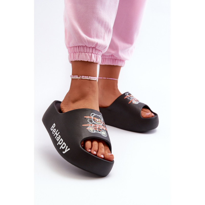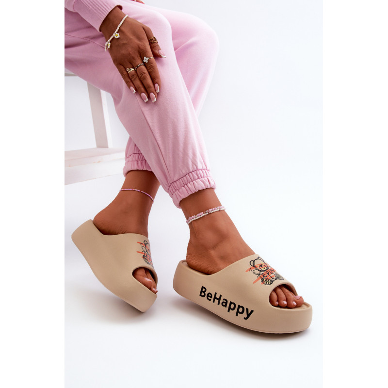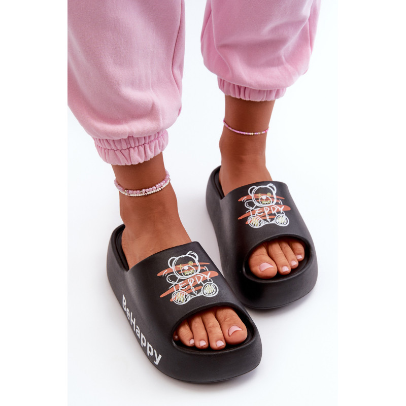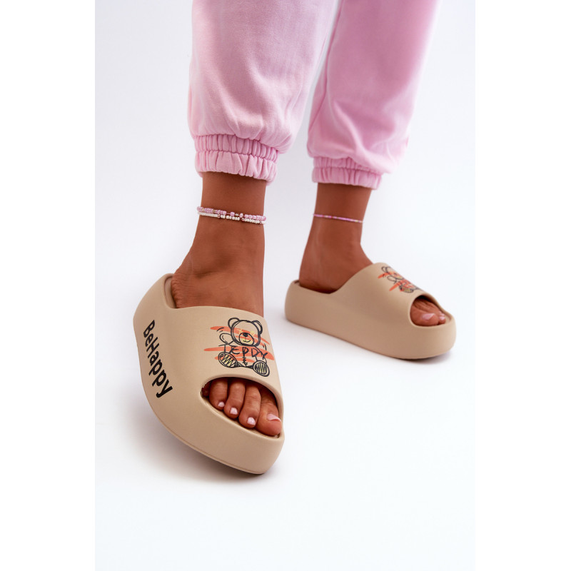Žavios moteriškos šlepetės, puikiai tinkančios atostogų kelionėms. Pagaminta iš putplasčio medžiagos. Nustatykite ant storo pado. Dekoruota meškos raštu. Lengvas ir patogus modelis, kuris tikrai patiks! Rinkdamiesi dydį žiūrėkite dydžių lentelę.