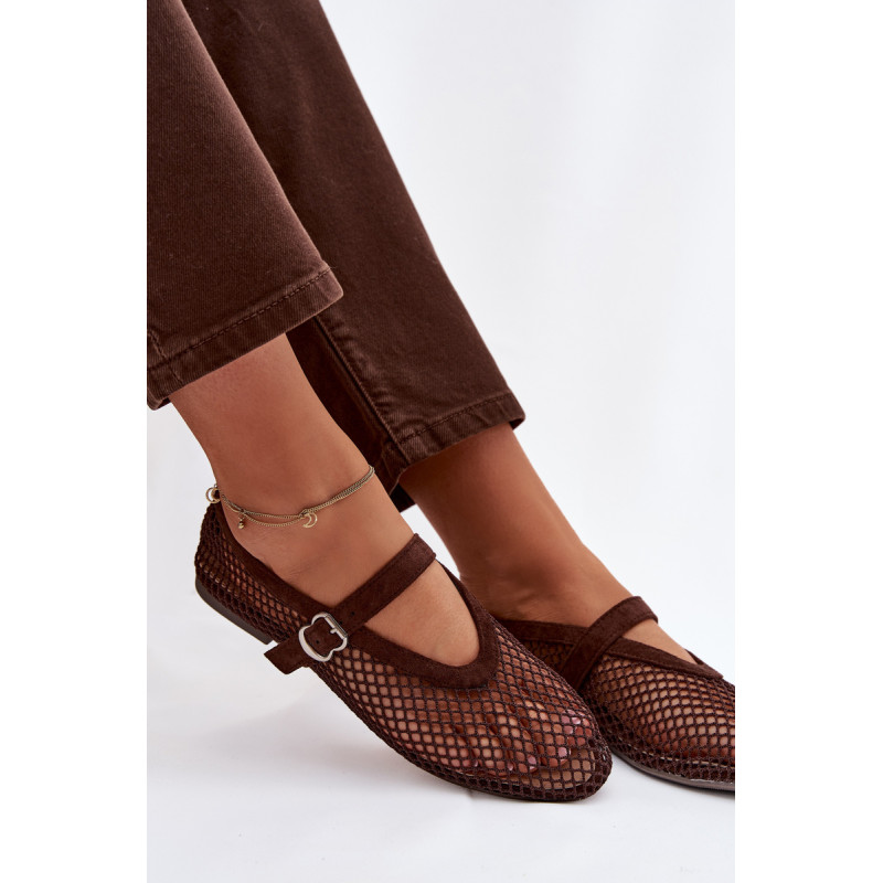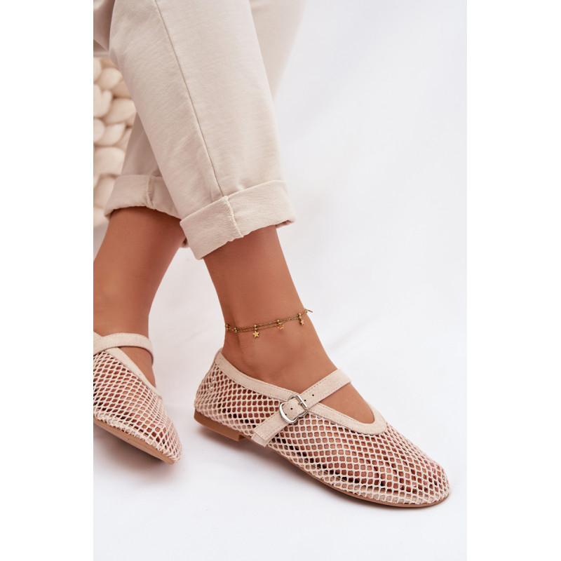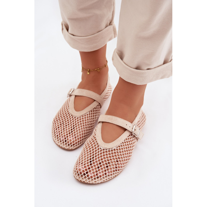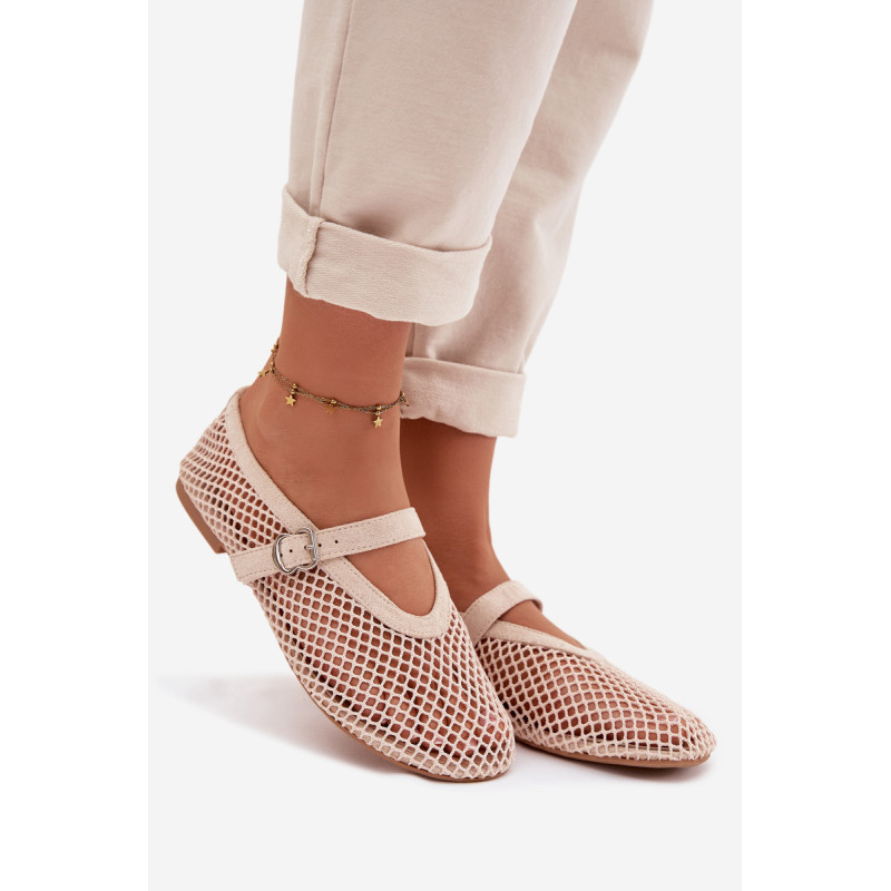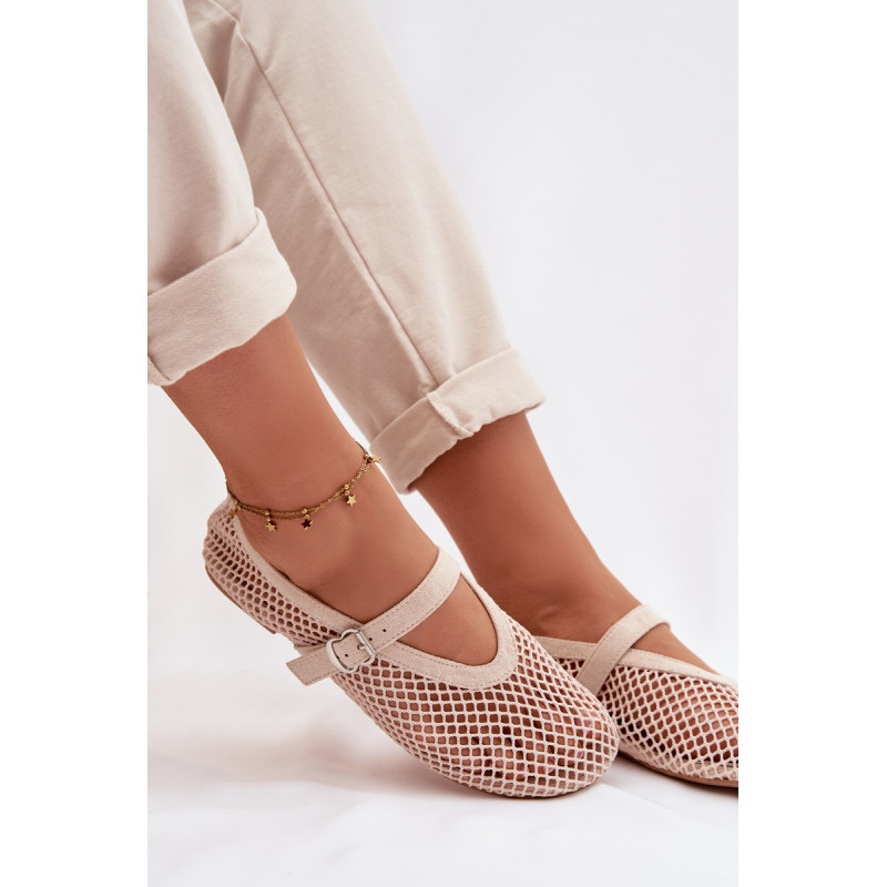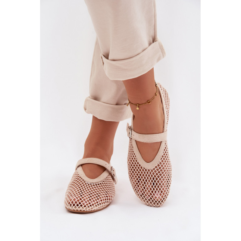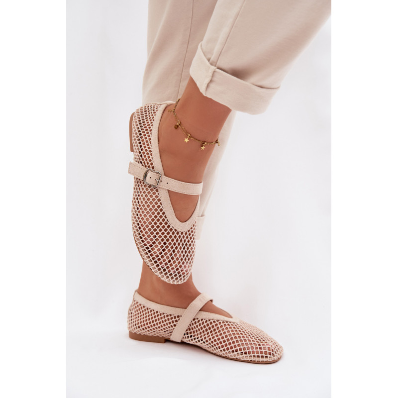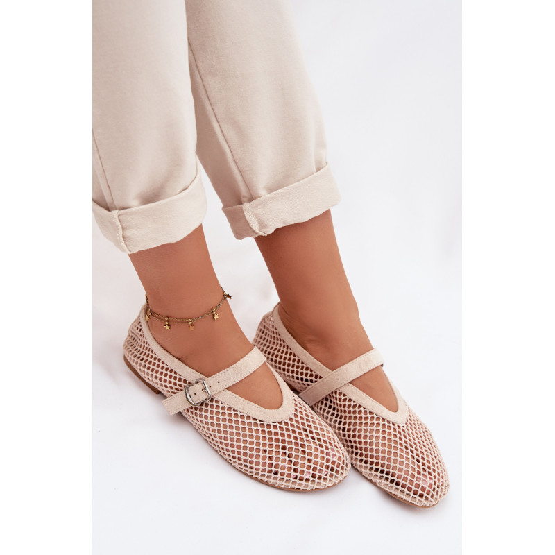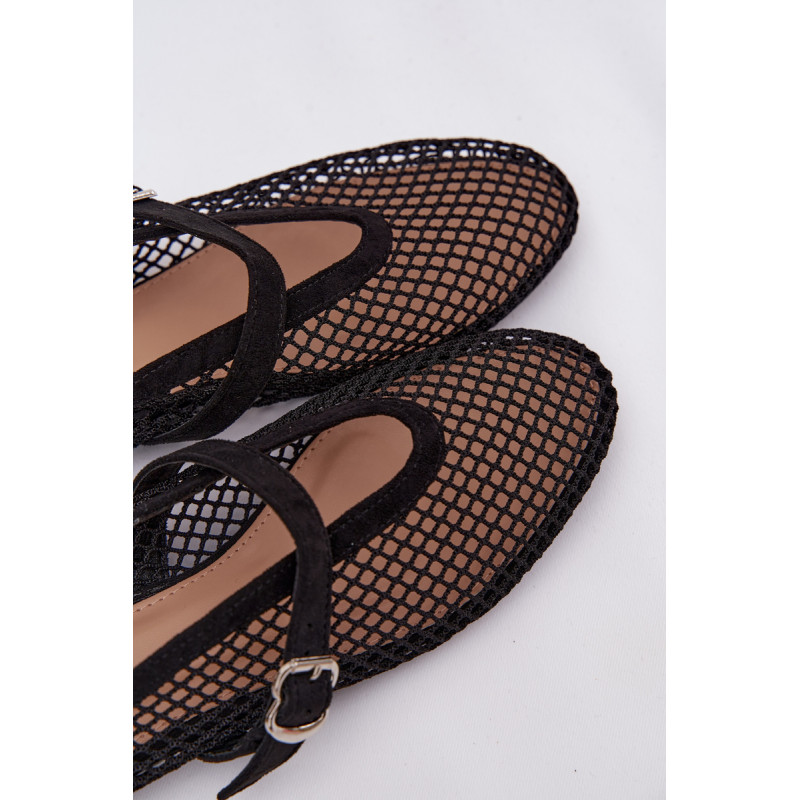 Moteriškos balerinas pagamintos iš tekstilinio audinio. Kvėpuojanti medžiaga užtikrina komfortą dėvint, ypač šiltesnėmis dienomis, o šiuolaikiškas išvaizda suteikia avalynei madingą charakterį. Vidinės pado juostos su sagtimi ne tik papuošia, bet ir leidžia geriau pritaikyti balerinas prie pėdos. Šis modelis puikiai tinka daugeliui stilių. Renkantis dydį, vadovaukitės dydžių lentele.