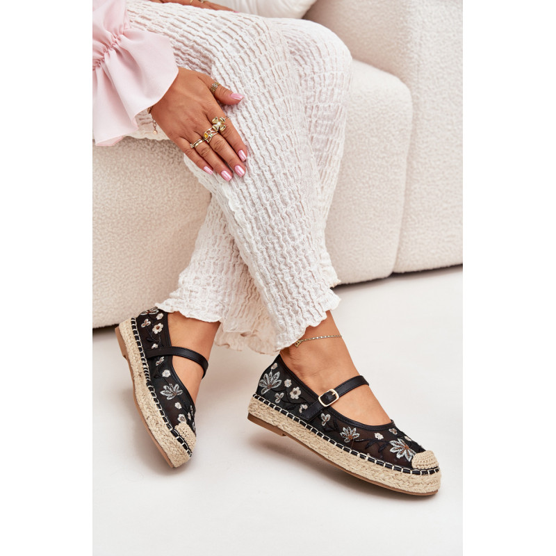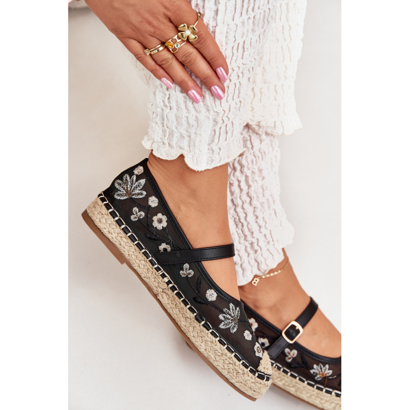 Moteriškos tinklinės espadrilės, papuoštos gražiu gėlių siuvinėjimu, yra puikus pasirinkimas šiltoms dienoms. Įrengtos ant pintos platformos. Vidurinėje pėdos dalyje yra diržas su sagtimi, kuris užtikrina puikų prigludimą ir stabilumą. Puikiai tinka vasaros stiliams. Renkantis dydį, vadovaukitės dydžių lentele.