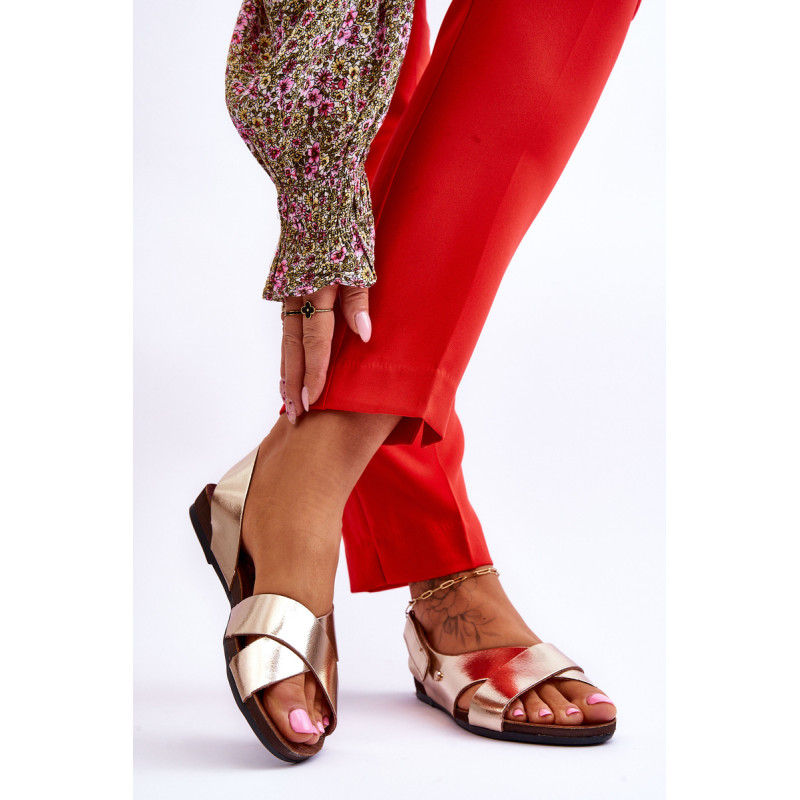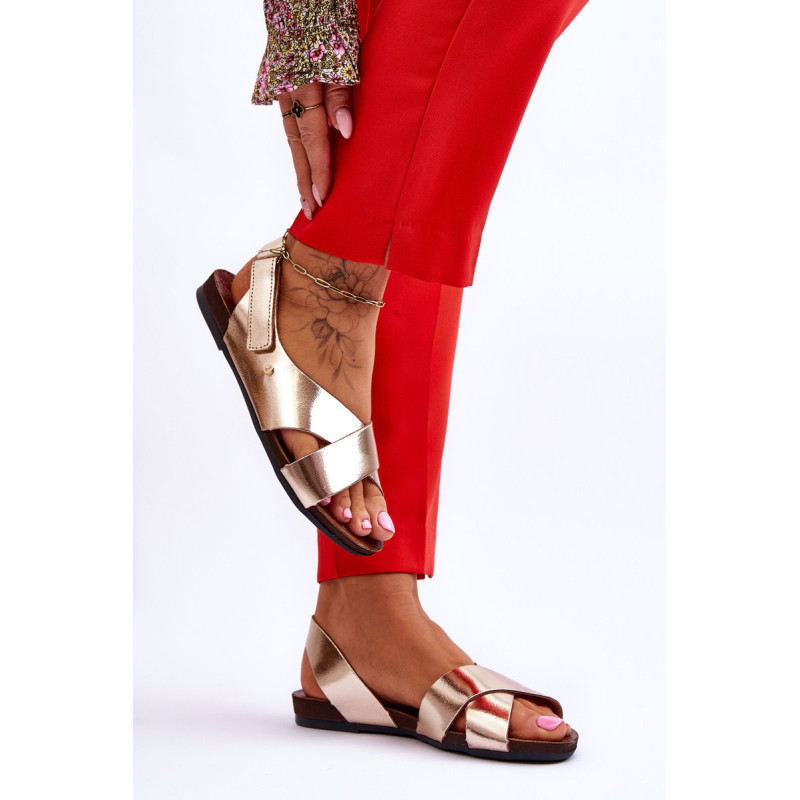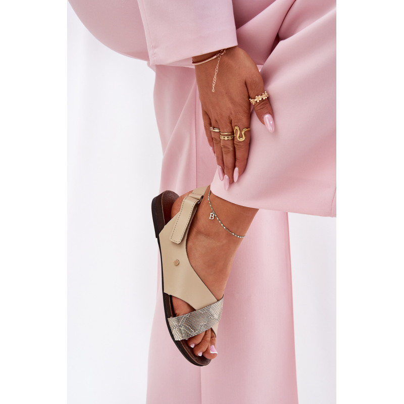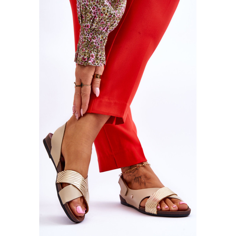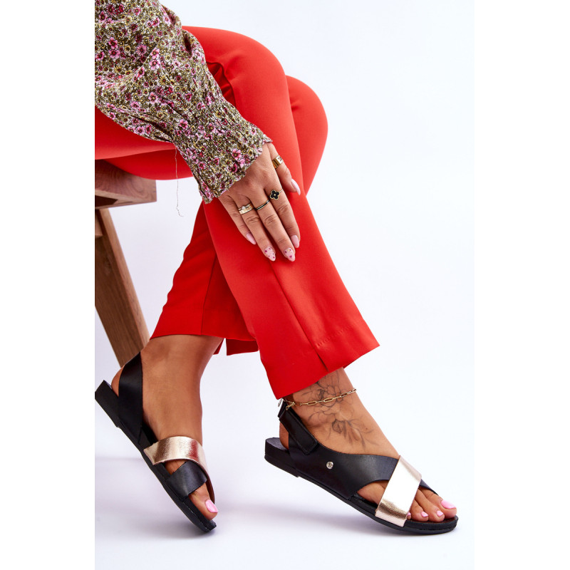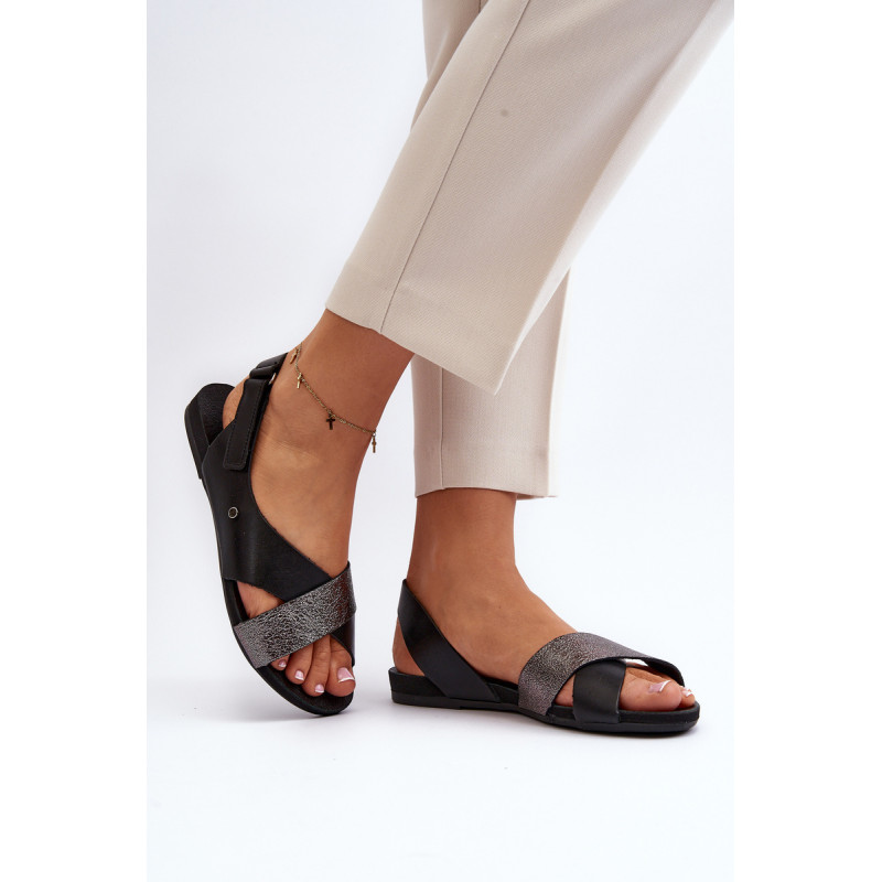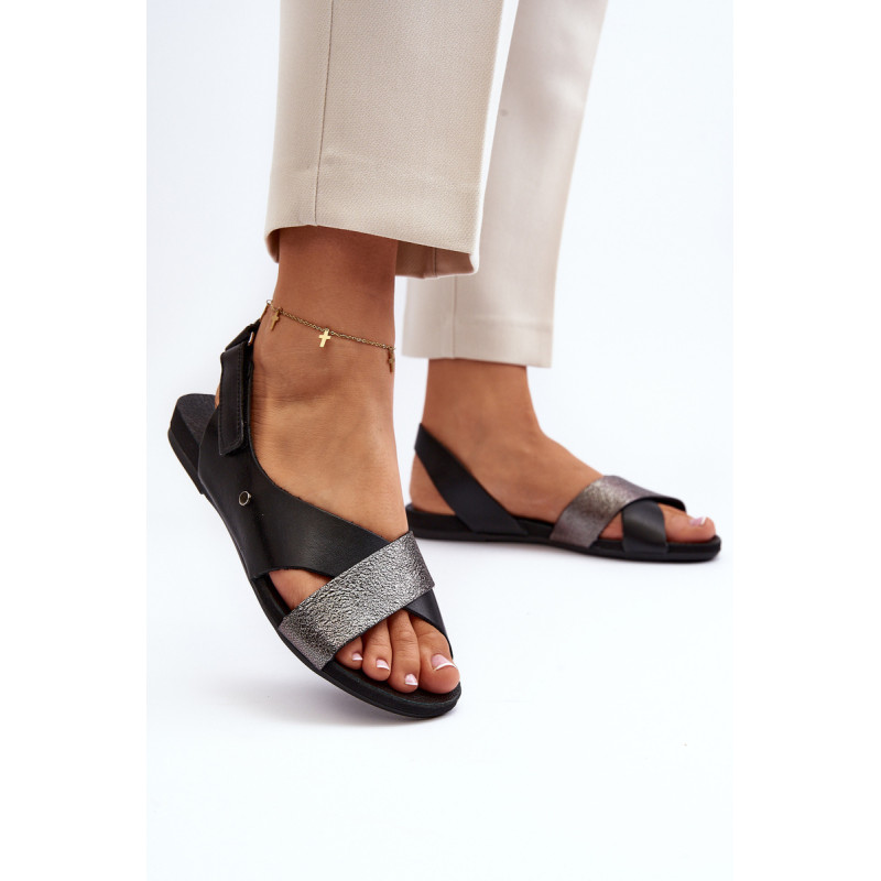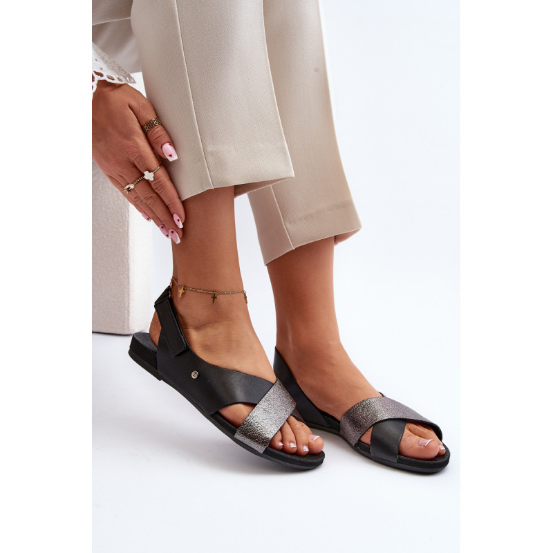 Klasikiniai ir patogūs sandalai pagaminti iš natūralios odos. Jie turi Velcro užsegimą. Šis modelis pastatytas ant plokščio kulno su neslidžiu padu. Be to, viršutinės dalies šone yra emblema su logotipu. Sandalai turi atvirą kulną ir pirštus. Puikus modelis šiltoms dienoms! Rinkdamiesi dydį, vadovaukitės dydžių lentele.