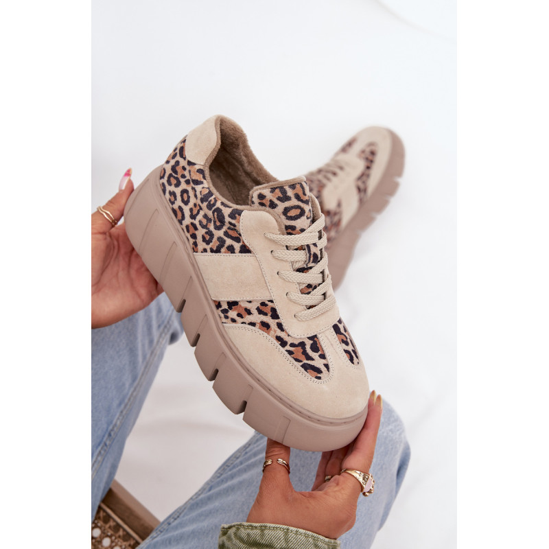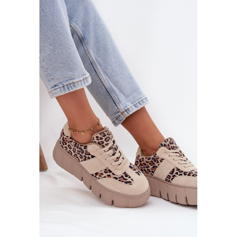 Moteriški sportbačiai iš Vinceza prekės ženklo. Pagaminti iš natūralaus zomšo, pastatyti ant masyvios platformos, kuri suteikia stilingą charakterį ir vizualiai ilgina siluetą. Raišteliai leidžia puikiai prisitaikyti prie pėdos, o vidus su batų antklode užtikrina komfortą ir šilumą šaltesnėmis dienomis. Madingas leopardo raštas suteikia drąsaus, šiuolaikiško akcento, kuris patraukia dėmesį. Idealiai tinka kasdienėms ir išraiškingesnėms stiliams. Renkantis dydį, prašome vadovautis dydžių lentele. Renkantis dydį, vadovaukitės dydžių lentele.