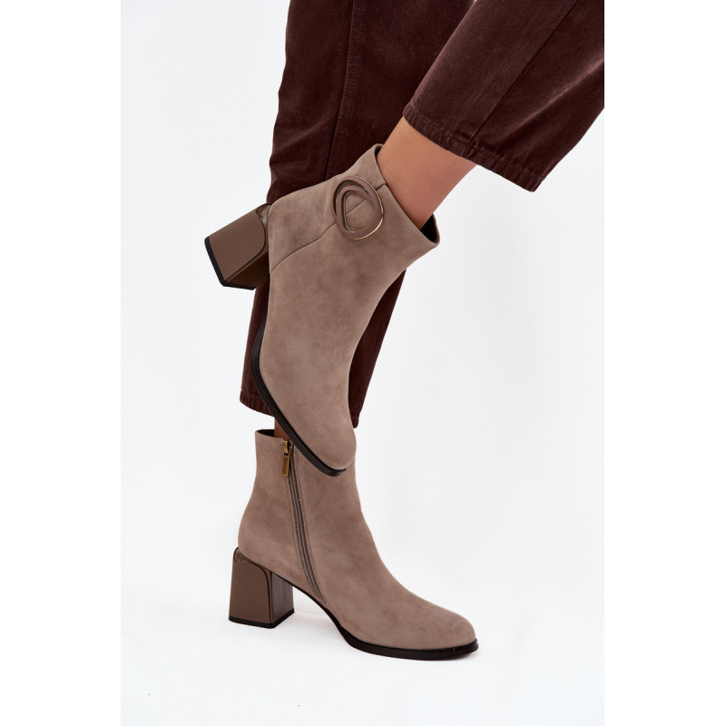 Moterų auliniai batai ženklo Artiker yra elegantiškas pasirinkimas rudens-žiemos sezonui. Pagaminti iš natūralaus zomšos, jie atrodo stilingai ir yra malonūs liesti, o stabilus stulpelio formos kulnas užtikrina patogumą ir pasitikėjimą žingsnyje. Apvalios nosys. Užsegimas užtrauktuku palengvina užsidėjimą ir nusisegimą. Viduje yra pašiltintas. Papildomas privalumas yra dekoratyvinis detale, įtaisyta ant šlaunies šono, kuris pabrėžia šio modelio išskirtinį charakterį. Pasirinkdami dydį, prašome vadovautis dydžių lentele. Renkantis dydį, vadovaukitės dydžių lentele.