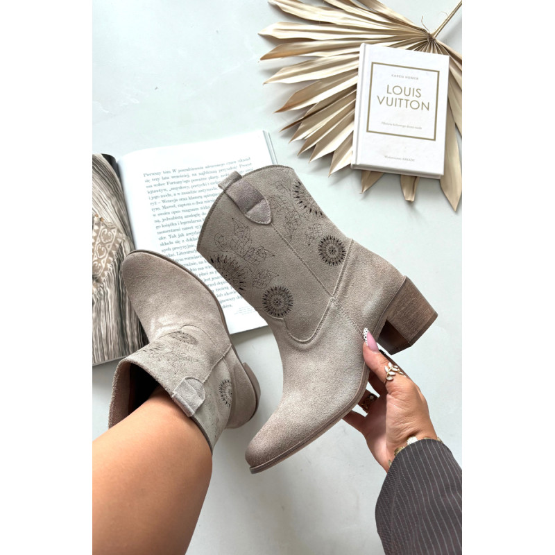 Moteriški auliniai batai iš natūralaus zomšos odos yra elegantiška ir stilinga pasirinkimas pereinamajam sezonui bei šiltesnėms rudens dienoms. Subtilus išpjaustas raštas suteikia visumui lengvumo ir išskirtinio charakterio. Modelis yra ant stabilios kubo kulno, kuris užtikrina patogumą vaikščiojant ir švelniai pabrėžia siluetą. Migdolo formos nosys. Užsegimas su užtrauktuku palengvina apsivilkimą ir nusiėmimą, todėl batai patogūs kasdieniam naudojimui. Tai auliniai batai, kurie puikiai papildys tiek kasdienius, tiek ir labiau išskirtinius įvaizdžius, suteikdami jiems subtilią eleganciją ir madingą charakterį. Pasirinkdami dydį, prašome vadovautis dydžių lentele. Renkantis dydį, vadovaukitės dydžių lentele.