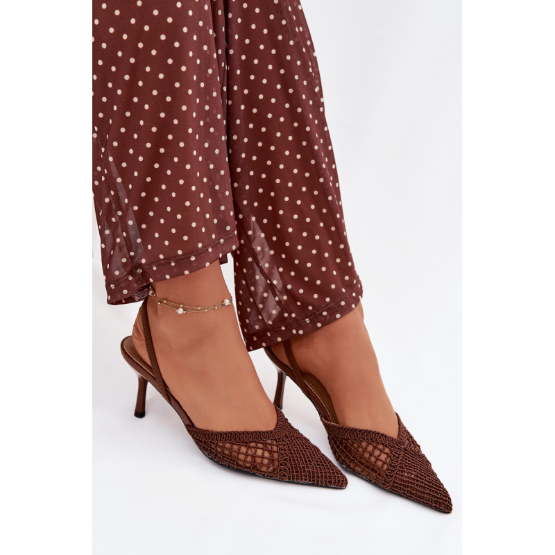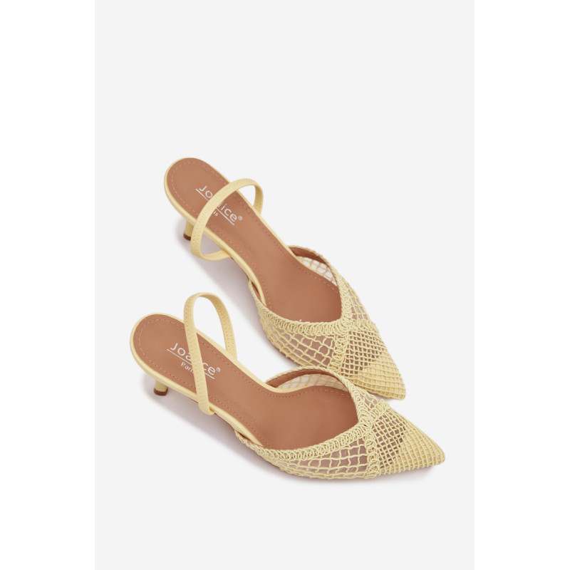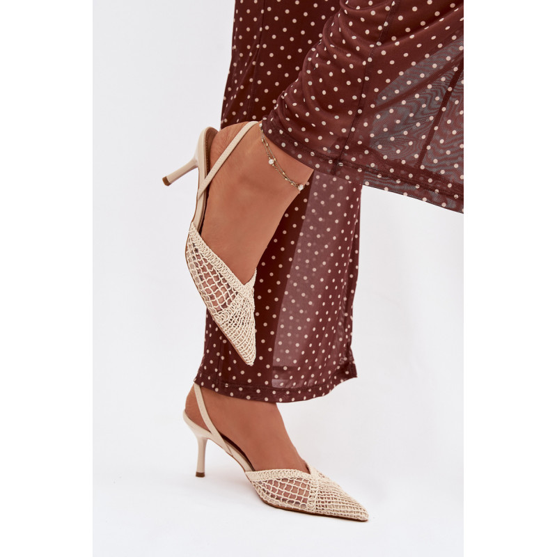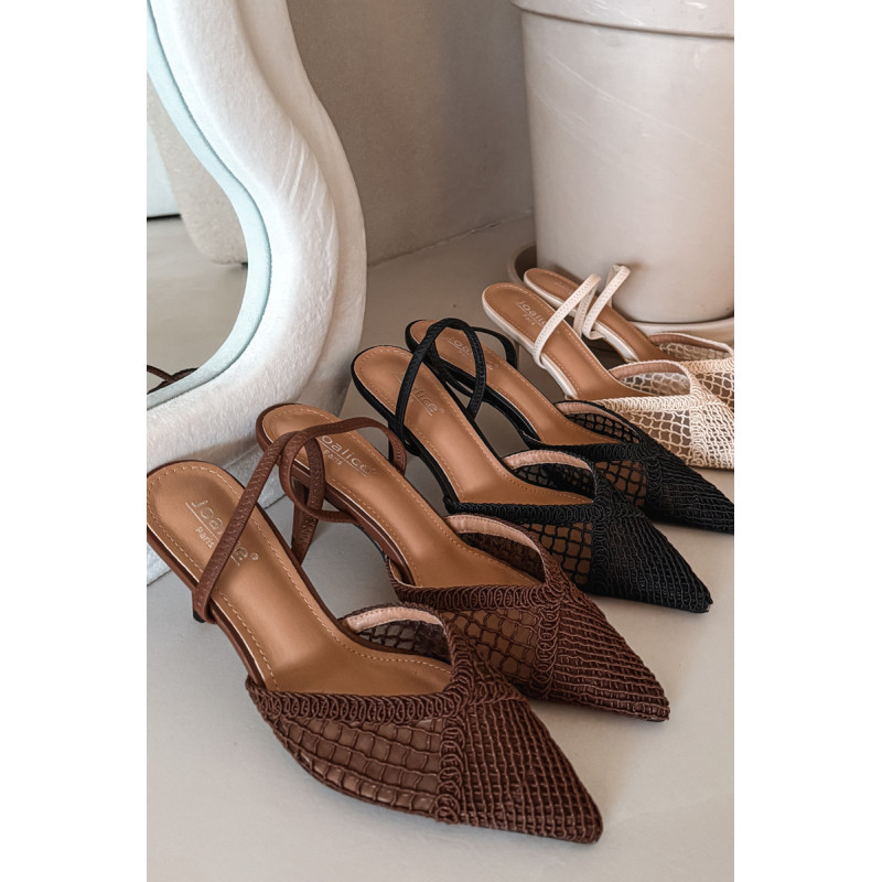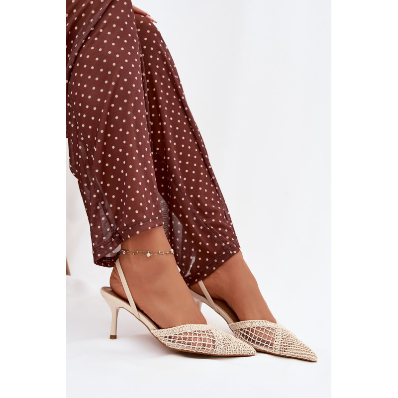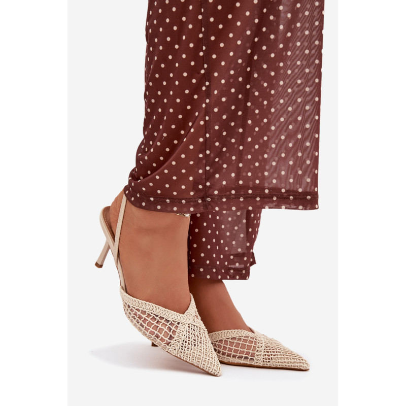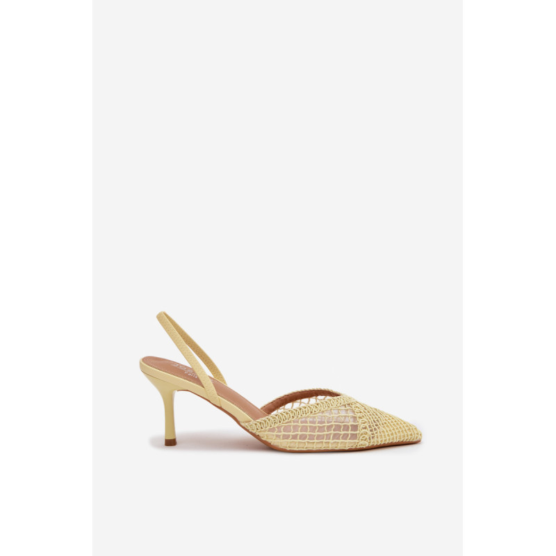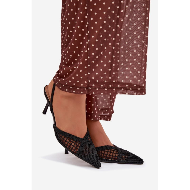 Moteriškos sandalai, pagaminti iš efektingo pinto audinio, yra puikus pasirinkimas įvairioms progoms. Plonas kulnas gražiai ilginą siluetą ir suteikia stiliui moteriškumo lengvumo. Aštrūs nosys pabrėžia klasikinį, elegantišką siluetą ir suteikia visumai laikui nepavaldų išvaizdą. Modelis puikiai tinka kaip stilingas akcentas prie suknelių ir kelnių. Renkantis dydį, vadovaukitės dydžių lentele.