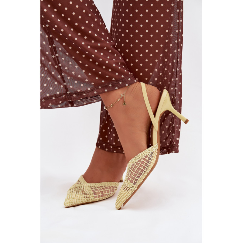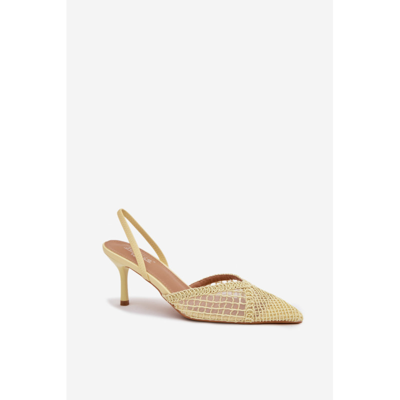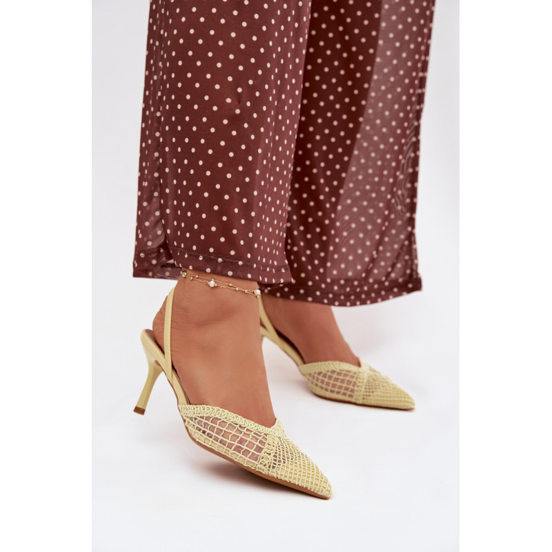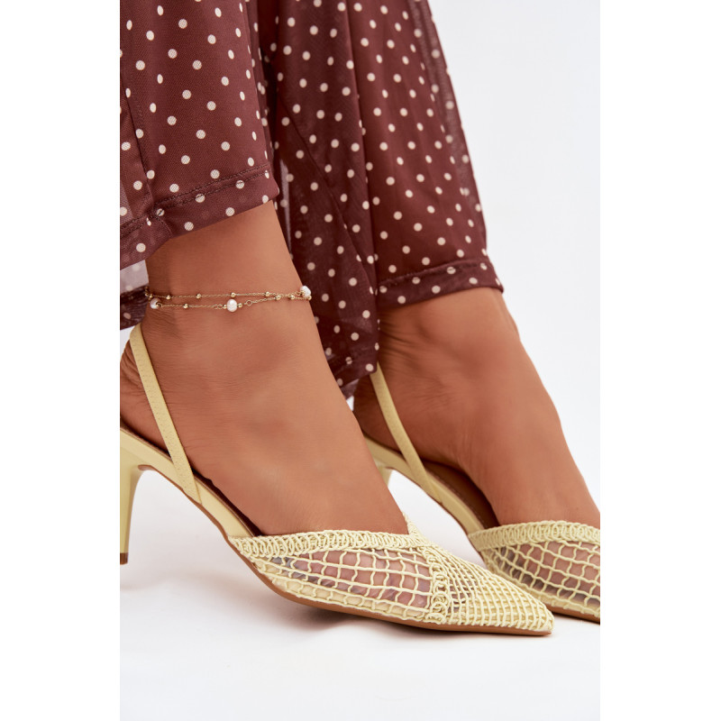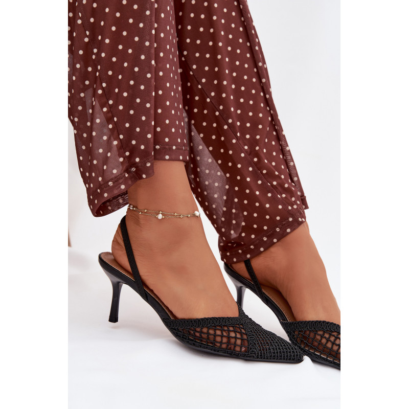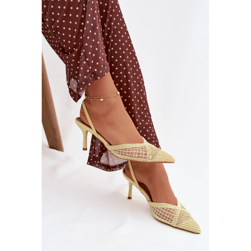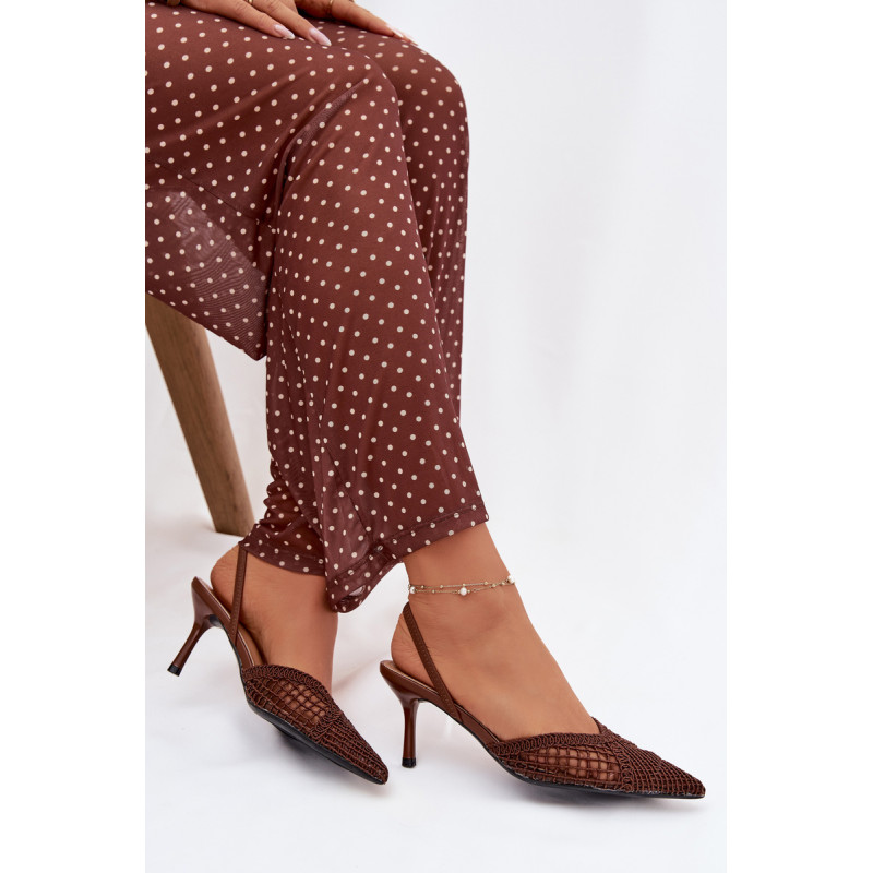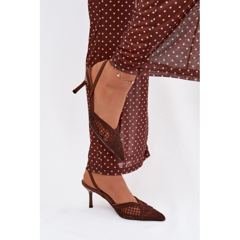 Moteriškos sandalai, pagaminti iš efektingo pinto audinio, yra puikus pasirinkimas įvairioms progoms. Plonas kulnas gražiai ilginą siluetą ir suteikia stiliui moteriškumo lengvumo. Aštrūs nosys pabrėžia klasikinį, elegantišką siluetą ir suteikia visumai laikui nepavaldų išvaizdą. Modelis puikiai tinka kaip stilingas akcentas prie suknelių ir kelnių. Renkantis dydį, vadovaukitės dydžių lentele.