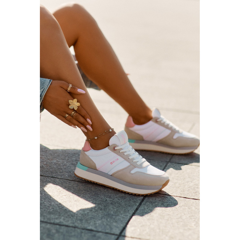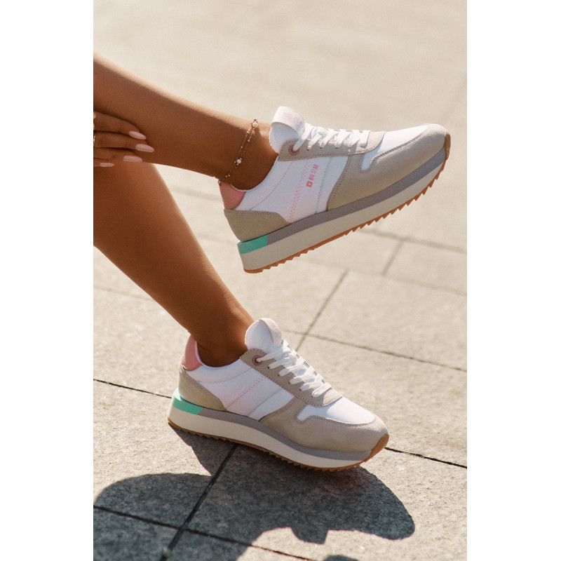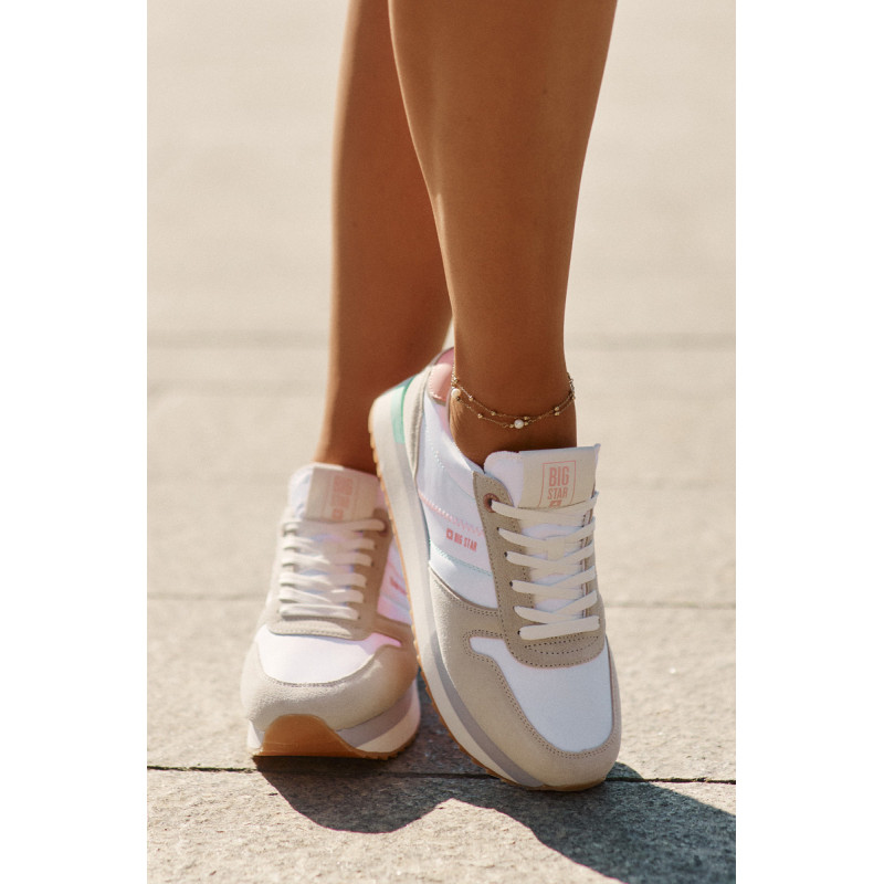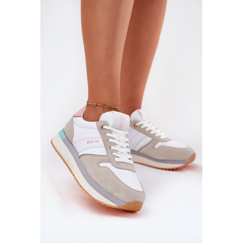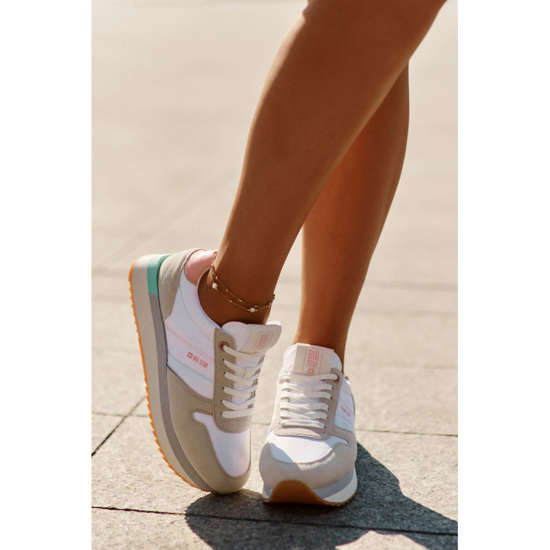Moteriški Big Star sportbačiai yra puikus stiliaus ir funkcionalumo derinys. Įrengti ant platformos, jie užtikrina stabilumą ir komfortą visą dieną. Pagaminti iš natūralaus zomšos ir tekstilės medžiagos, jie siūlo ilgaamžiškumą ir elegantišką išvaizdą. Modelis turi HI-POLY SYSTEM vidpadį, kuris pasižymi atsparumu dilimui ir deformacijoms. Be to, vidpadis efektyviai sugeria drėgmę ir užtikrina puikų smūgio sugėrimą, todėl sportbačiai yra ypač patogūs ir ilgaamžiai. Idealiai tinka kasdieniam dėvėjimui, šie batai bus puikus papildymas kasdieniams stiliams. Renkantis dydį, vadovaukitės dydžių lentele.