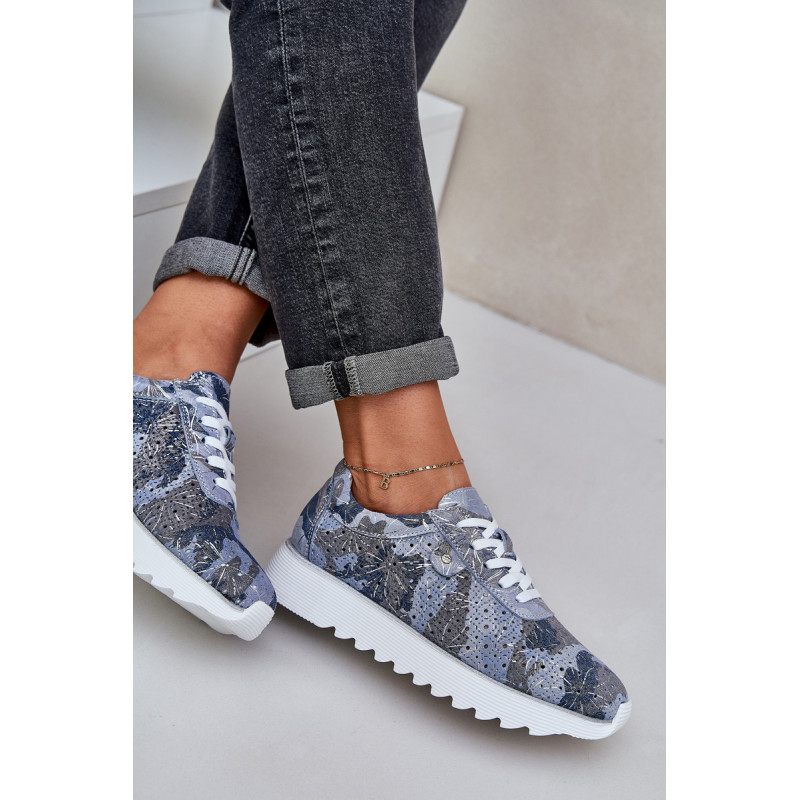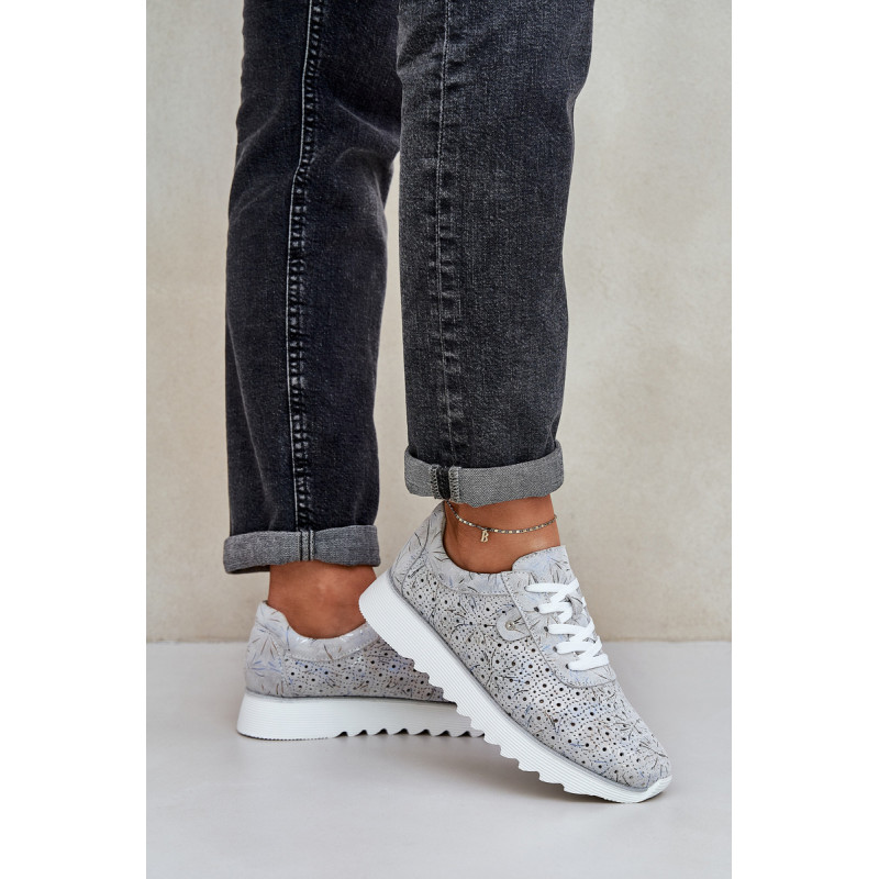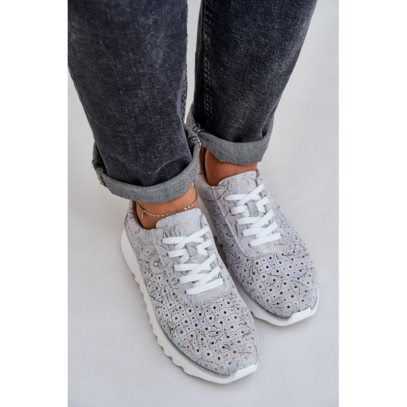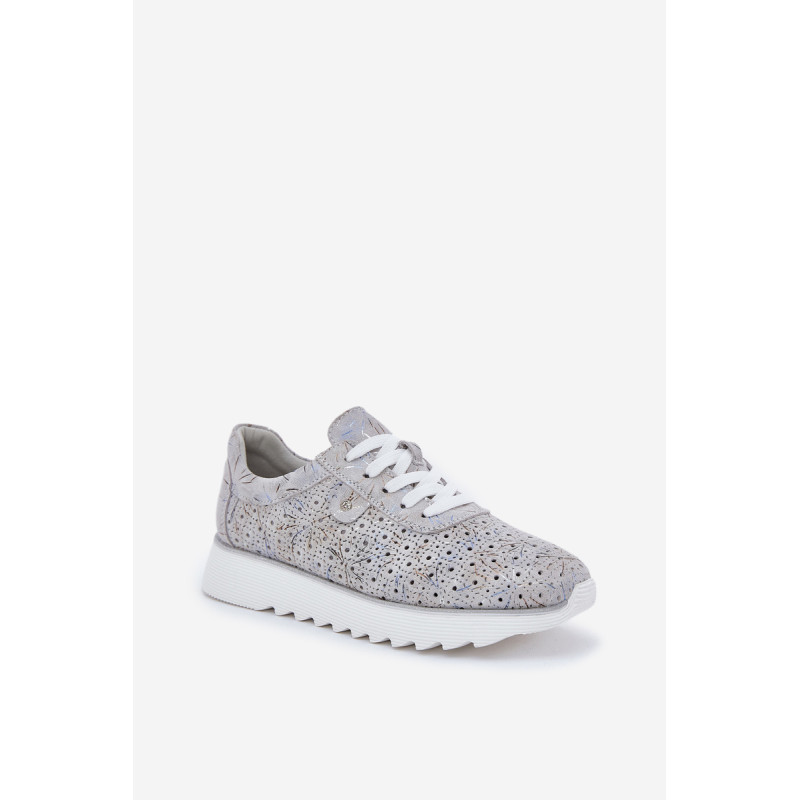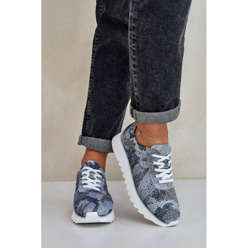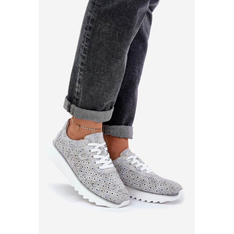 Sportiniai batai su raštuotu, perforuotu viršumi yra stilingas kasdienio dėvėjimo variantas. Įrengti ant blizgios platformos, jie prideda spindesio kiekvienam įvaizdžiui. Pagaminti iš natūralios zomšos, garantuoja patvarumą, o minkštas odinis padas užtikrina komfortą visą dieną. Tobulas komforto ir madingo įvaizdžio derinys. Renkantis dydį, vadovaukitės dydžių lentele.