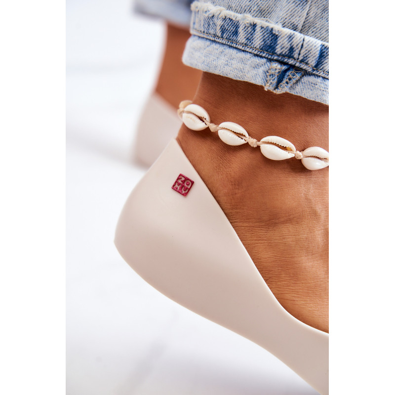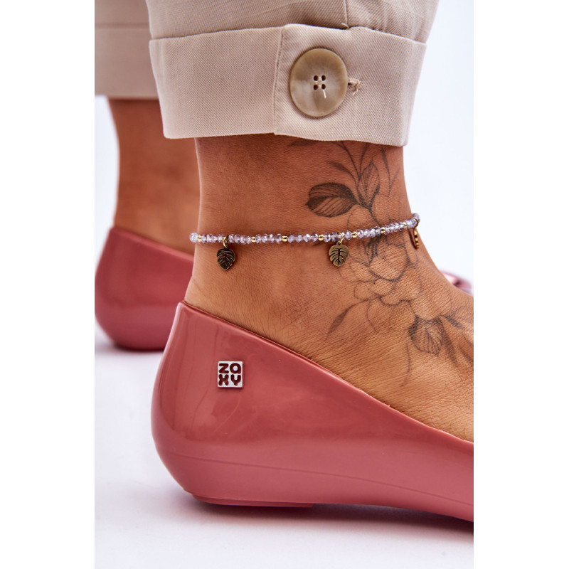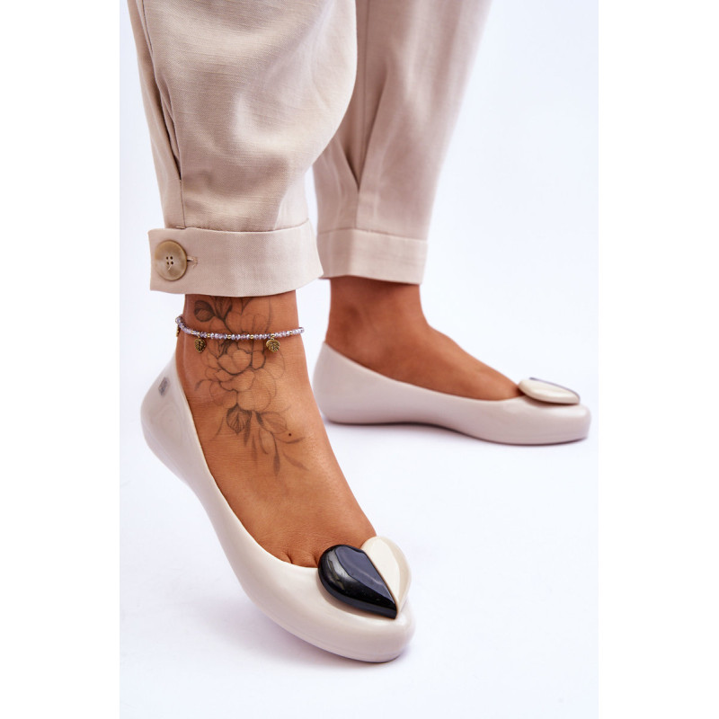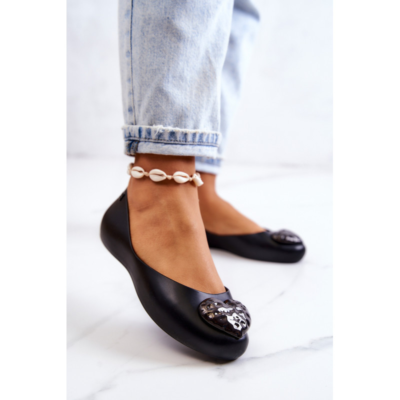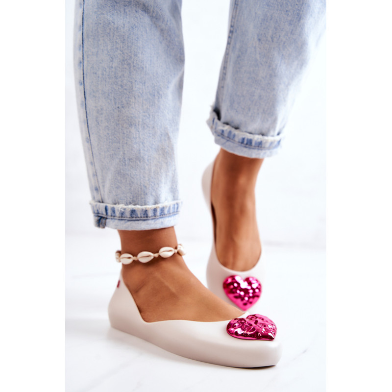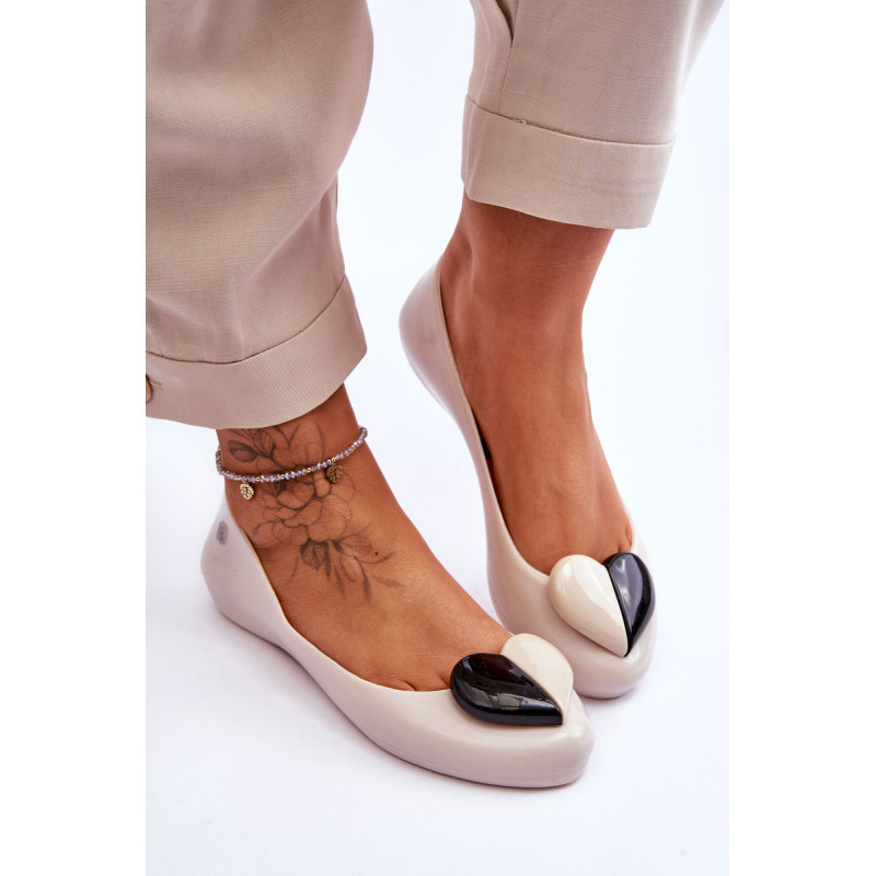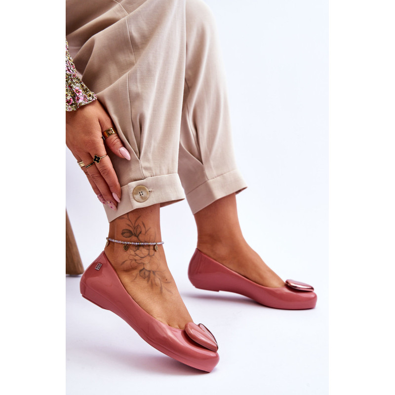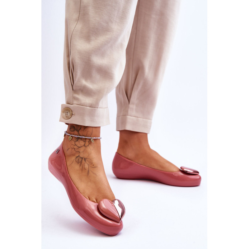 Puiki ZAXY kvapiųjų balerinų kolekcija. Jie pagaminti naudojant HUG TEC technologiją, kurios dėka yra lankstesni ir minkštesni. Jie yra 100% perdirbami ir juose nėra ftalatų, t. y. cheminių junginių, atsakingų už medžiagų, tokių kaip guma ir plastikas, lankstumą. Papuošti gražia širdele, kuri suteikia jiems nuostabaus žavesio. Patogus vidpadis užtikrins Jūsų pėdų komfortą. Šie batai yra veganiški ir hipoalergiški. Rinkdamiesi dydį, žiūrėkite dydžių lentelę.